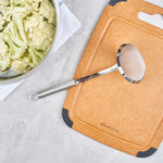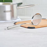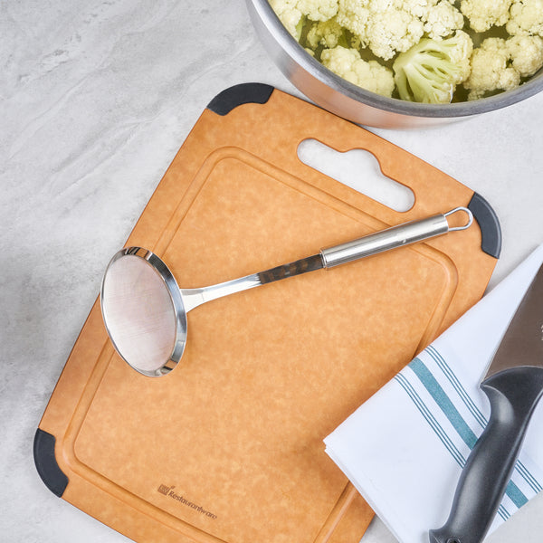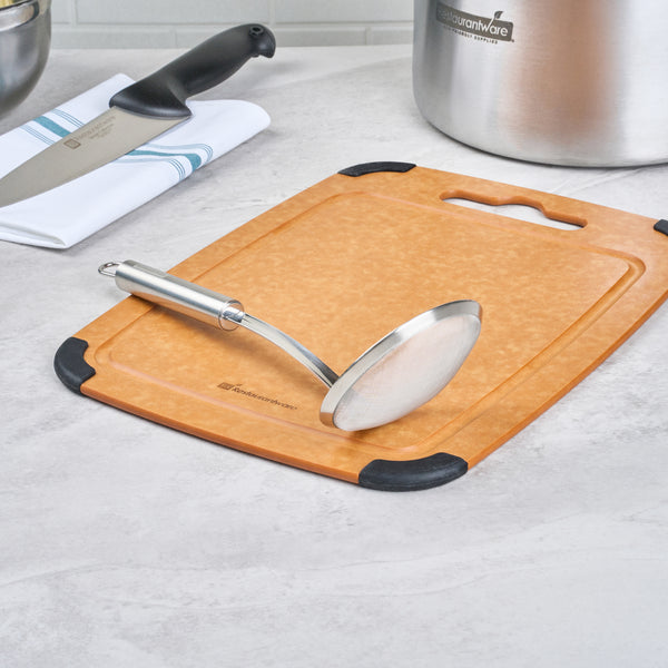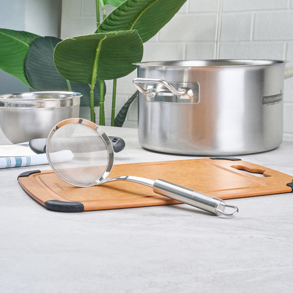 Ensure seamless kitchen efficiency with the German Standard Fine Mesh Skimmer. This stainless steel kitchen skimmer measures 11.7 inches by 3.9 inches by 2.9 inches and is expertly crafted to withstand the rigors of busy kitchens, providing long-lasting durability and resistance to corrosion. Its fine mesh design effectively filters out small particles, making it an ideal liquid strainer for crafting smooth sauces and soups, enhancing the quality of your culinary creations. Featuring an ergonomic handle, this skimmer reduces hand fatigue, allowing for extended use without discomfort, and its flat curvature ensures efficient food removal from the bottom of pots. Its dishwasher-safe design simplifies cleanup, ensuring hygiene standards are easily maintained. Elevate your kitchen’s functionality with this indispensable tool. Each order includes 1 German Standard Fine Mesh Skimmer.