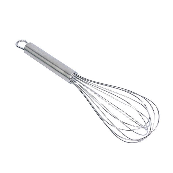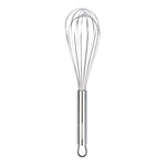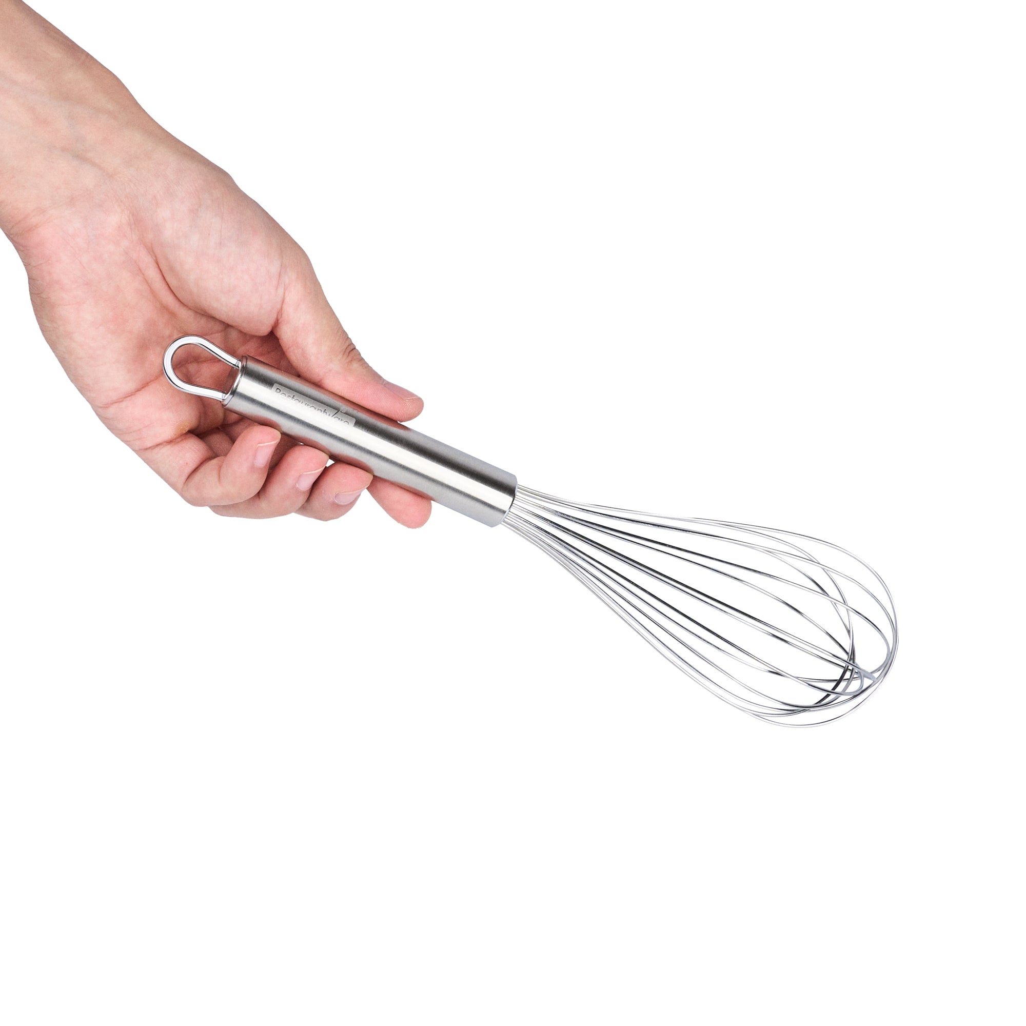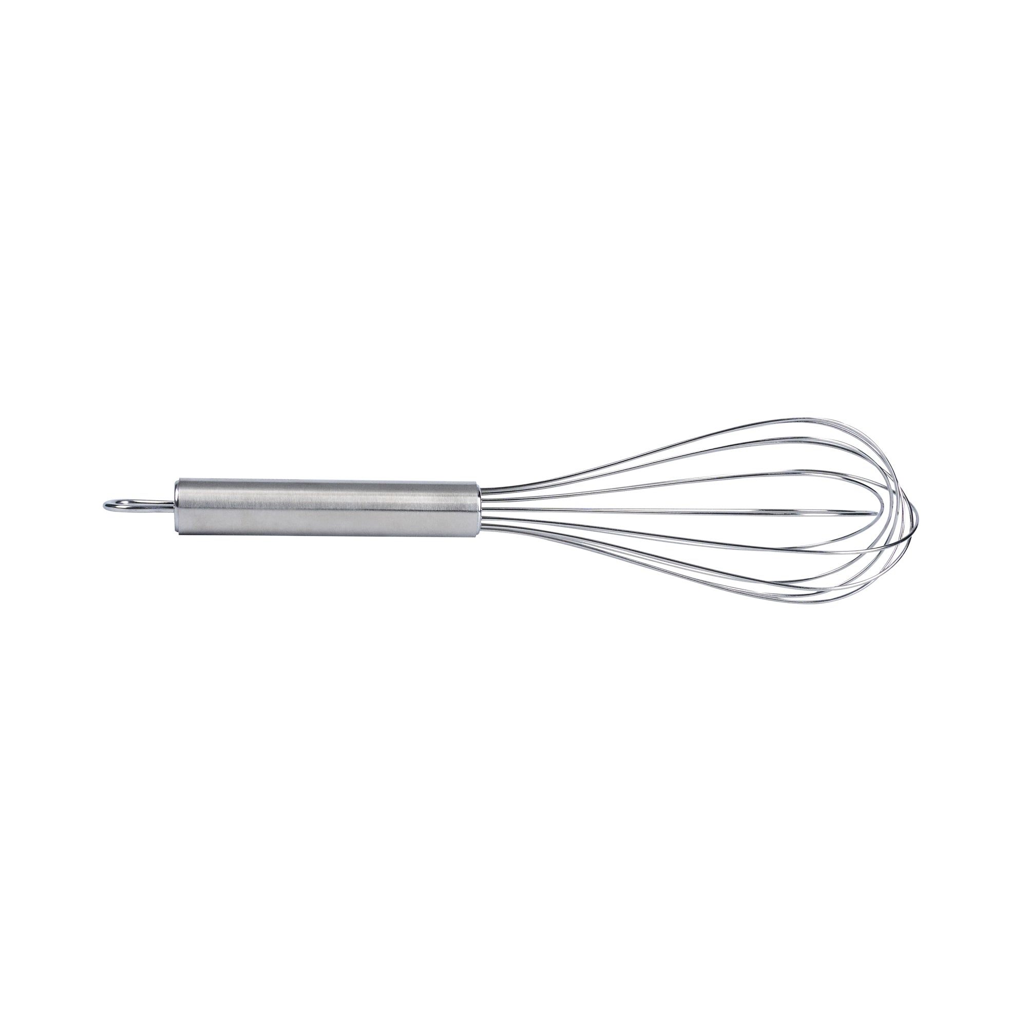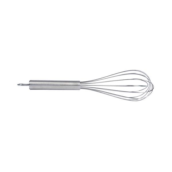 Ensure efficient blending with the German Standard 10.6" Stainless Steel Whisk. This stainless steel whisk features thick wires that effortlessly blend ingredients to a smooth consistency, optimizing culinary results in any professional kitchen. Its thin profile allows this kitchen whisk to reach every corner of bowls, ensuring thorough mixing and leaving no unmixed pockets behind, perfect for busy chefs seeking precision. With its ergonomic handle, the baking whisk offers a comfortable grip that reduces fatigue during prolonged use, providing superior control over mixing tasks. Thanks to its dishwasher-safe design, this whisk ensures efficient cleaning for quick reuse, saving valuable time during service. Invest in ease and efficiency in your kitchen. Each order includes 1 German Standard 10.6" Stainless Steel Whisk.