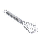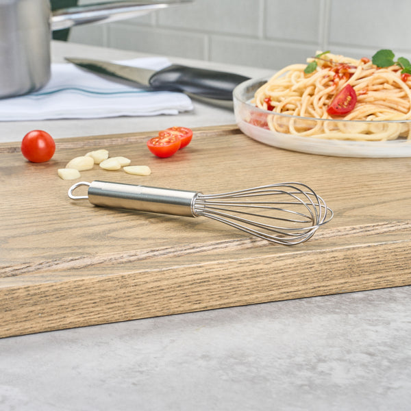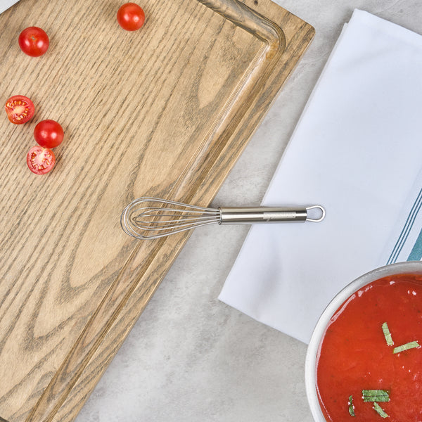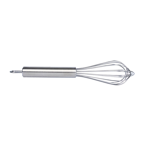 Mix ingredients with precision using a whisk built for durability. The German Standard Stainless Steel Whisk boasts a 7.25-inch length, making it perfect for mixing in small bowls and enhancing precision in culinary tasks. Crafted from high-quality stainless steel, this cooking whisk offers exceptional resistance to corrosion, ensuring long-lasting performance in busy kitchen settings. The French whisk design optimizes aeration and blending, making it an ideal whisk for whipping cream or emulsifying sauces with ease. Featuring an ergonomically designed handle, it reduces hand fatigue during extended use, while the built-in eyelet hook enables organized kitchen storage. Its dishwasher-safe construction simplifies cleanup, fostering hygiene in food preparation areas. Enhance your culinary efficiency with this versatile whisk that combines functionality and comfort. Each order includes 24 German Standard Stainless Steel Whisks.