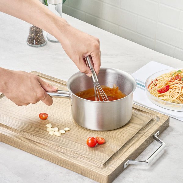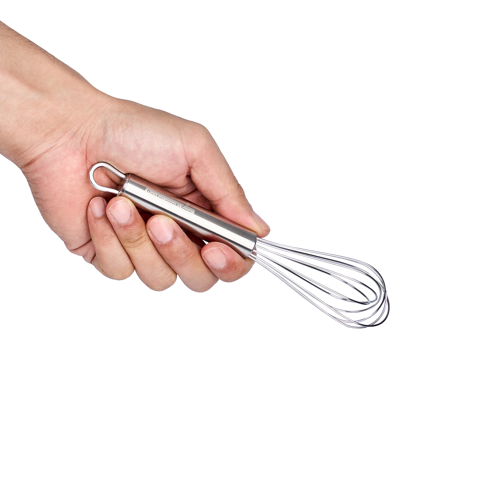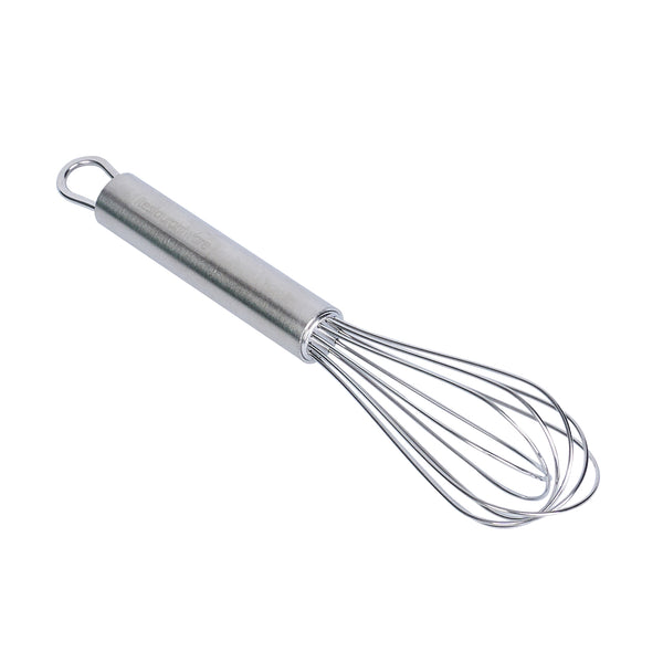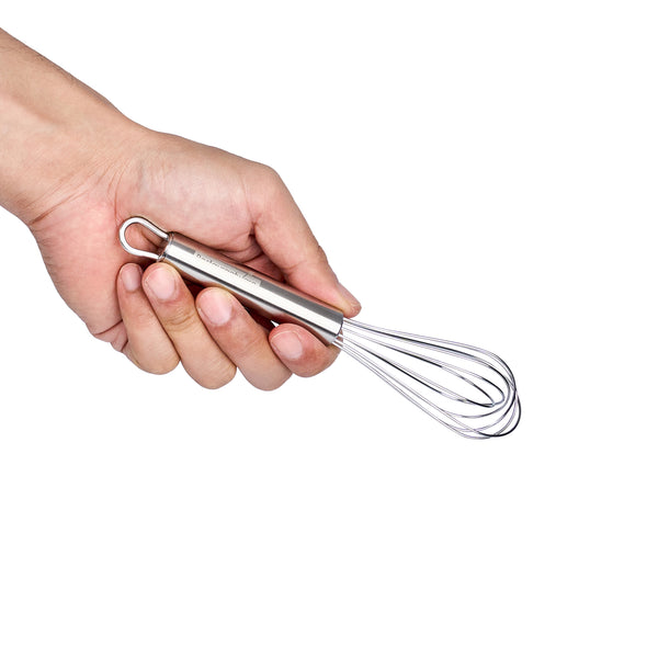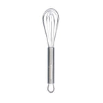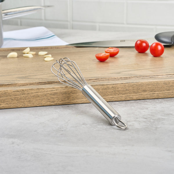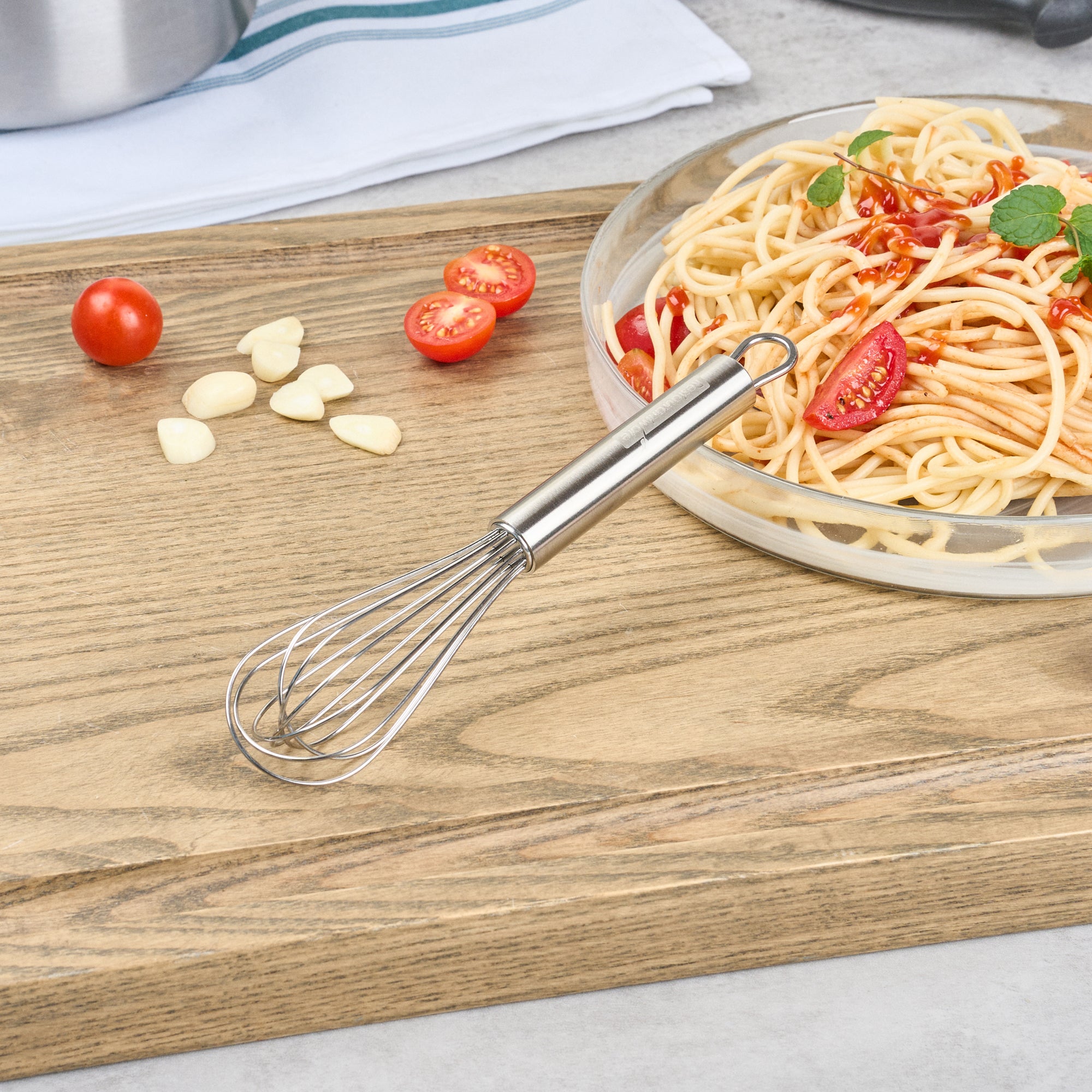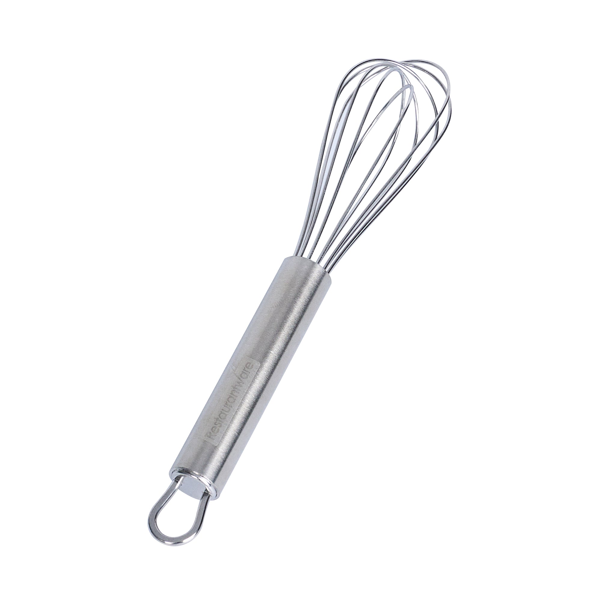 Mix ingredients with precision using a whisk built for durability. The German Standard Stainless Steel Whisk boasts a 7.25-inch length, making it perfect for mixing in small bowls and enhancing precision in culinary tasks. Crafted from high-quality stainless steel, this cooking whisk offers exceptional resistance to corrosion, ensuring long-lasting performance in busy kitchen settings. The French whisk design optimizes aeration and blending, making it an ideal whisk for whipping cream or emulsifying sauces with ease. Featuring an ergonomically designed handle, it reduces hand fatigue during extended use, while the built-in eyelet hook enables organized kitchen storage. Its dishwasher-safe construction simplifies cleanup, fostering hygiene in food preparation areas. Enhance your culinary efficiency with this versatile whisk that combines functionality and comfort. Each order includes 6 German Standard Stainless Steel Whisks.