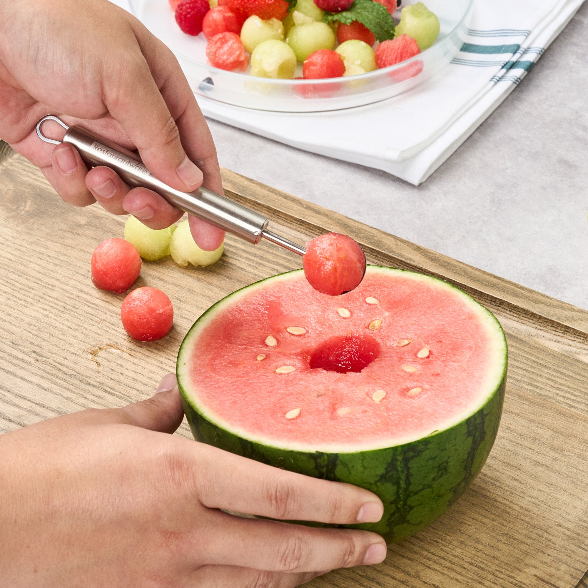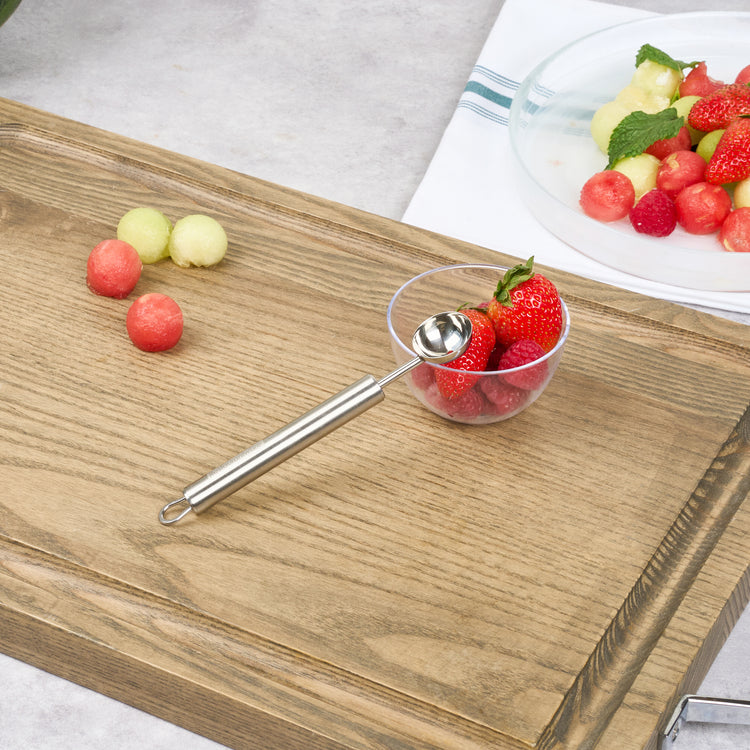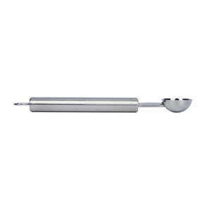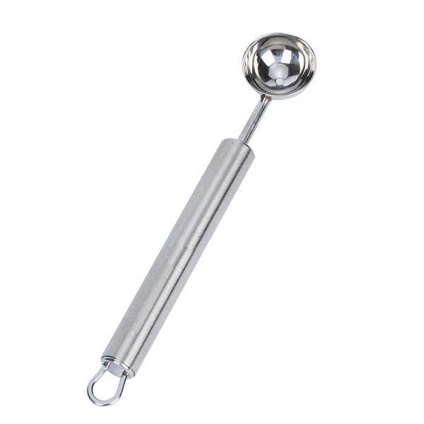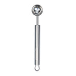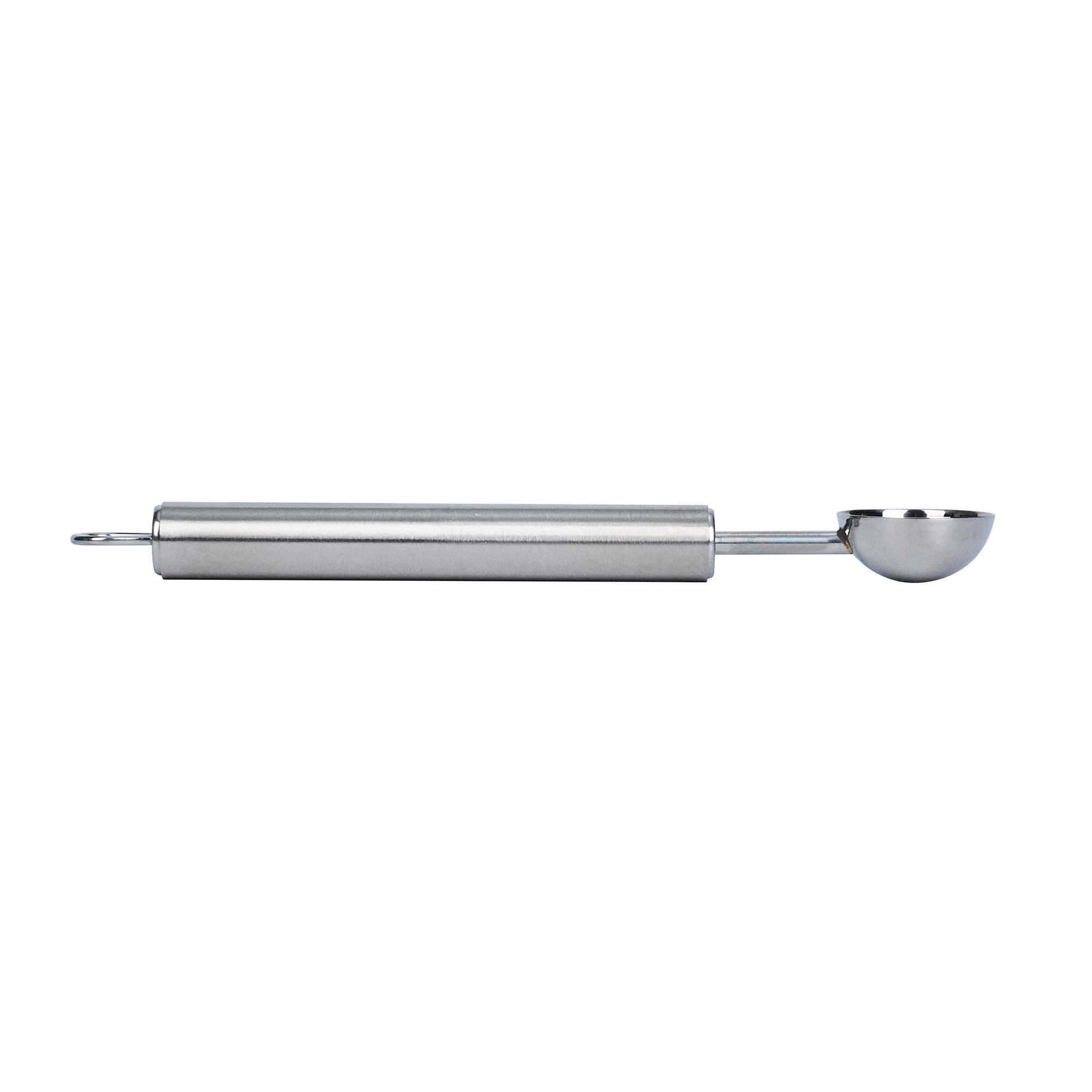 Make food prep effortless with this ergonomic melon scoop. The German Standard Ergonomic Melon Scoop features a specially designed handle that reduces hand fatigue, allowing chefs to use it comfortably for extended periods. Crafted from durable stainless steel, this scoop withstands frequent, demanding kitchen tasks, making it an essential tool for any foodservice professional needing a reliable stainless steel melon baller. Its cold food-friendly design allows you to effortlessly scoop fruits like watermelon and cantaloupe, as well as create perfect portions of butter or remove seeds from cucumbers, enhancing the efficiency of your culinary operations. Measuring 5.9 inches in length, this versatile fruit scooper is dishwasher safe for easy cleaning, ensuring long-lasting performance in busy restaurant environments. Enhance your kitchen's productivity with this indispensable tool. Each order includes 1 German Standard Ergonomic Melon Scoop.