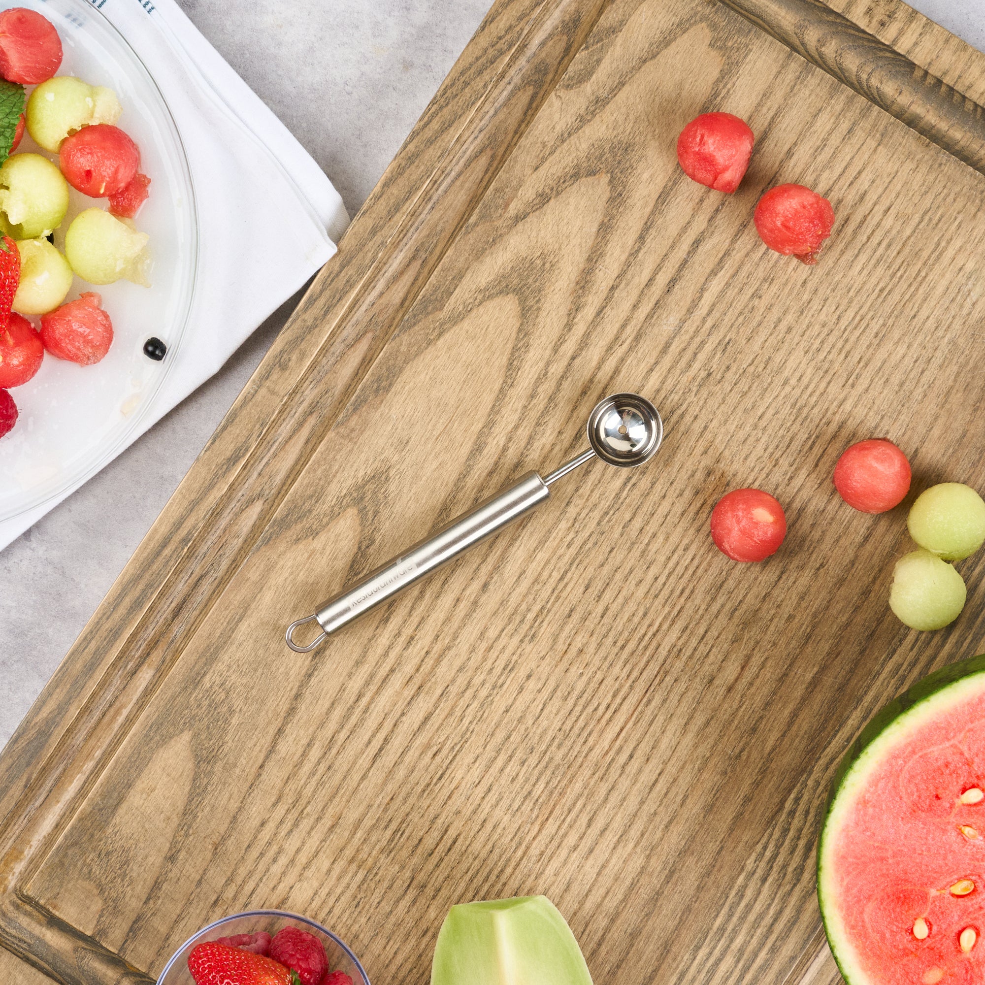 Transform your kitchen efficiency with perfectly shaped melon balls every time. The German Standard Ergonomic Melon Scoop – Dual-Sided Scoops delivers culinary precision with its sharp edges, effortlessly creating uniform melon balls for eye-catching fruit salads. Crafted from high-quality stainless steel, this melon scoop boasts unmatched durability, making it a reliable companion in any bustling kitchen setting. Its ergonomic handle reduces hand fatigue, enabling chefs to maintain control during repetitive tasks, a particularly beneficial feature when used as a fruit salad tool. With dual-sided scoops, this stainless steel melon baller offers versatility for a variety of presentation requirements, and its dishwasher-safe design ensures a quick, easy cleanup process, maintaining hygiene standards efficiently. Conveniently compact at 6 inches in length, it easily fits into kitchen drawers, saving valuable space. Elevate your food presentation skills today with this indispensable kitchen accessory. Each order includes 6 German Standard Ergonomic Melon Scoop – Dual-Sided Scoops.