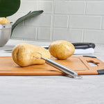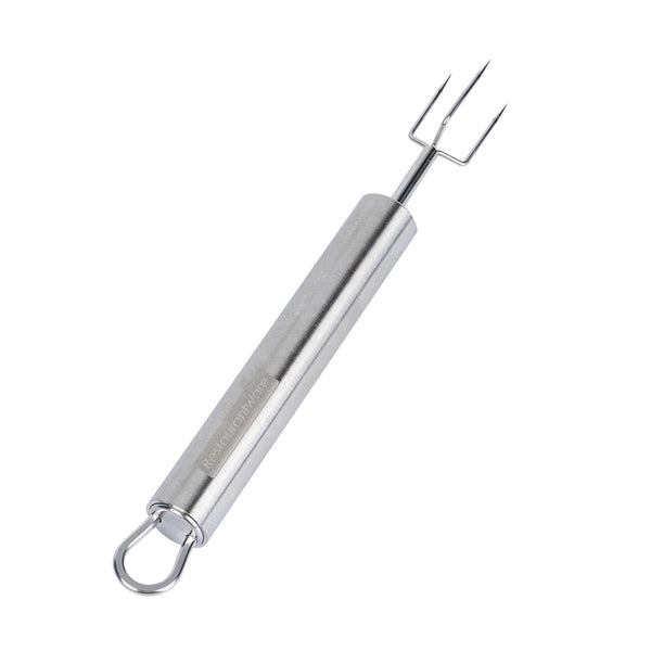 Simplify potato preparation with our ergonomic kitchen tool. The German Standard Ergonomic Potato Peeler Fork, made from stainless steel, combines a sturdy yet comfortable design to elevate your kitchen efficiency. Its durable tines effortlessly pierce the tough skin of hard vegetables, ensuring your potato peeler fork performs seamlessly even in demanding environments. With a heatproof front end, this stainless steel potato fork withstands temperatures, offering safe handling of hot potatoes. Its ergonomic handle reduces hand fatigue, providing enhanced control during long kitchen shifts. Plus, it's dishwasher safe, ensuring quick cleanup in busy kitchens, adding to your operational efficiency. Measuring 6.1 inches in length, this heatproof potato fork is perfect for any busy catering or restaurant setting. Experience the perfect blend of style and functionality in your kitchen. Each order includes 1 German Standard Ergonomic Potato Peeler Fork.