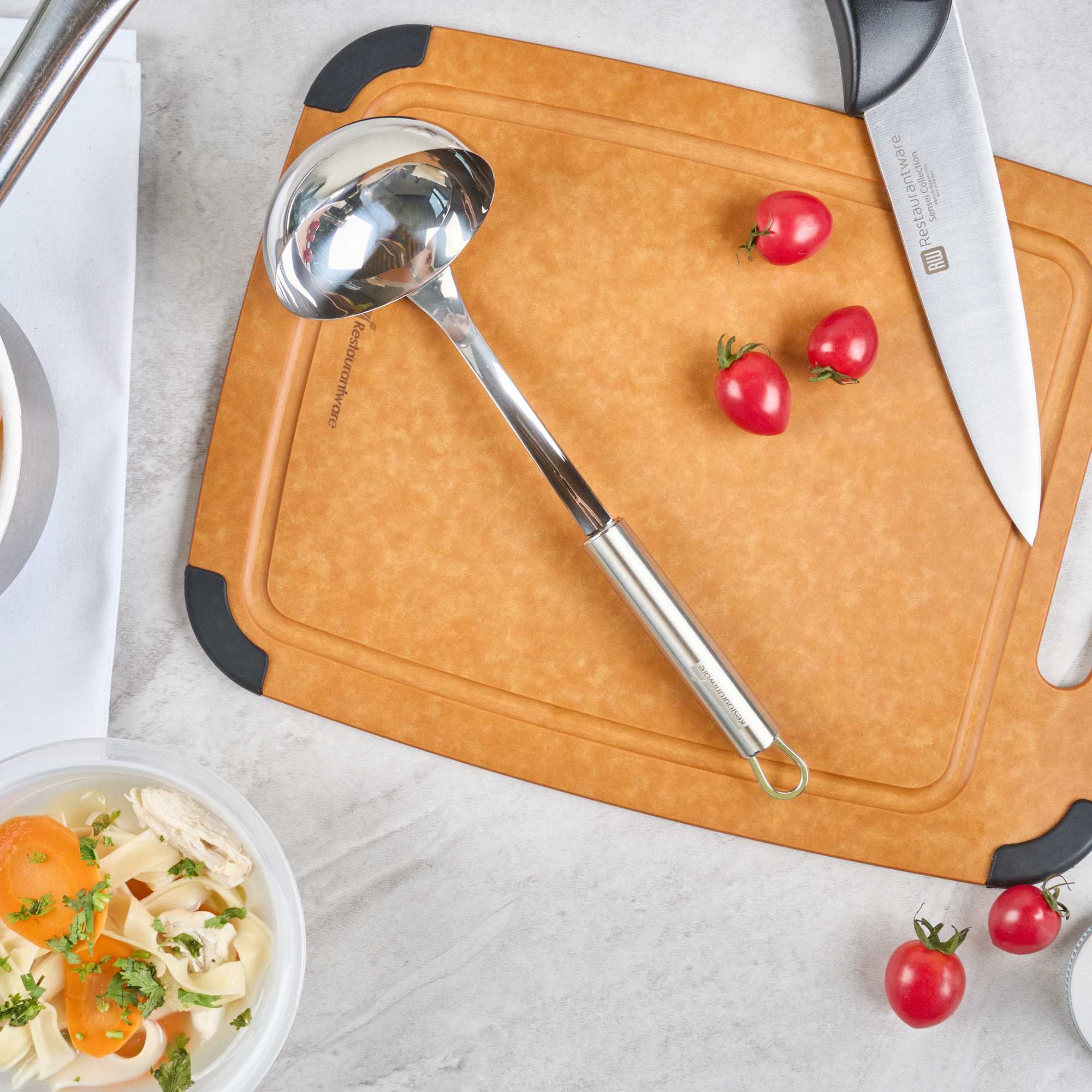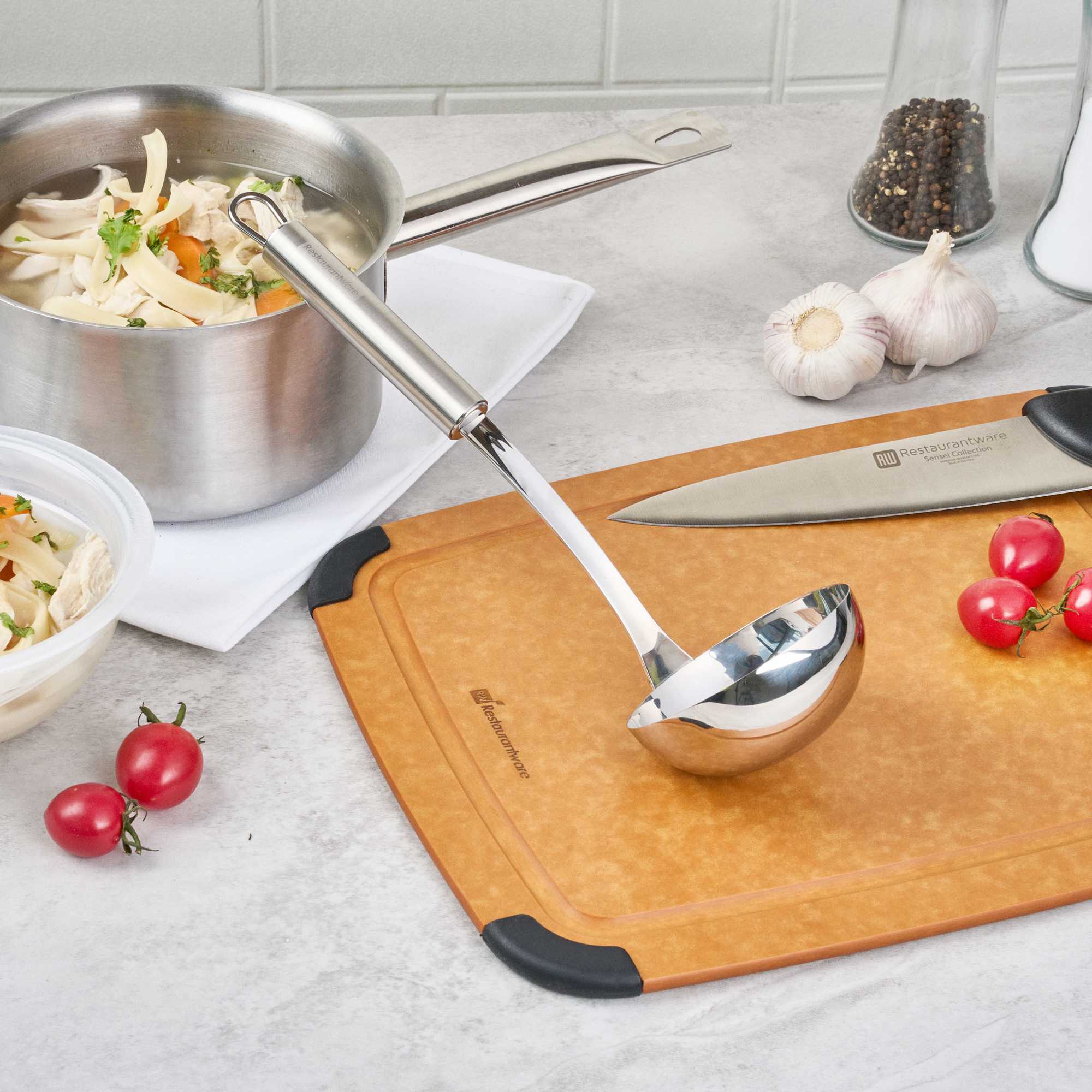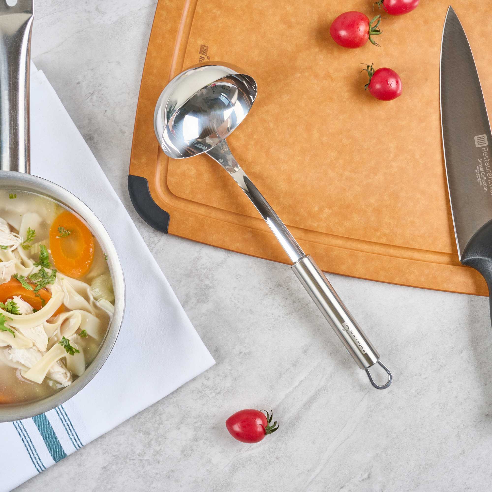 Ensure precise portioning with a drip-free serving solution. The German Standard Stainless Steel Serving Ladle, crafted in silver stainless steel, provides an ergonomic handle that reduces hand fatigue during extended use, streamlining your kitchen’s serving process. This soup ladle is designed with a deep bowl that ensures accurate serving of soups and stews, enhancing your foodservice operations. Its dishwasher-friendly construction simplifies cleanup in bustling kitchens, making it an indispensable serving tool. Measuring 11.4 inches in length by 3.5 inches in width, this serving ladle withstands the rigorous demands of busy culinary environments, offering reliable performance and longevity. This soup serving spoon supports versatile menu items, ideal for catering events and buffet setups. Elevate your kitchen’s efficiency with this indispensable tool for precise soup and stew servings. Sold in a 6 count box.