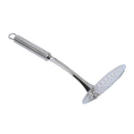 Experience the utmost in culinary efficiency with our German Standard Stainless Steel Skimmers. Featuring a concave head with precision perforated holes, these stainless steel skimmers effortlessly scoop food from hot liquids while retaining the liquid within the pan. Featuring an ergonomic long handle, these slotted spoon ensures a firm grip while retrieving food from liquids or sauces. These skimmer spoons are made from premium stainless steel for robust durability and long-lasting performance in your kitchen. The built-in eyelet hook of these frying spoons allows convenient storage when not in use. For quick and easy cleanup, these fryer spoons are dishwasher-safe and ideal for busy kitchens. These stainless steel skimmer spoons measure 12.1 inches in length by 4.3 inches in width. Sold in a 36 count box.