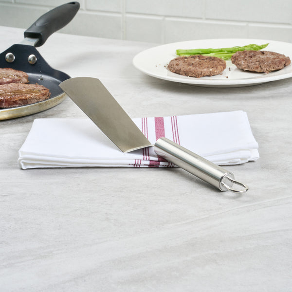 Enhance your kitchen efficiency with ergonomic precision. The German Standard Ergonomic Grip Turner features a flat, wide blade designed for effortless flips, impressing clients with your culinary skills. Crafted from stainless steel, this 11-inch utensil withstands the rigors of frequent use. Its ergonomically designed handle provides a comfortable grip, significantly reducing hand fatigue during extended use, a crucial advantage for busy chefs handling food serving plates. Additionally, this turner is dishwasher safe, offering a convenient post-service cleanup, so you can focus more on preparing delectable dishes and less on washing up. Its sleek, silver finish complements any kitchen setup, seamlessly integrating with rectangular angle plates for a cohesive dining experience. Elevate your kitchen's functionality and style with this indispensable tool. Each order includes 1 German Standard Ergonomic Grip Turner.