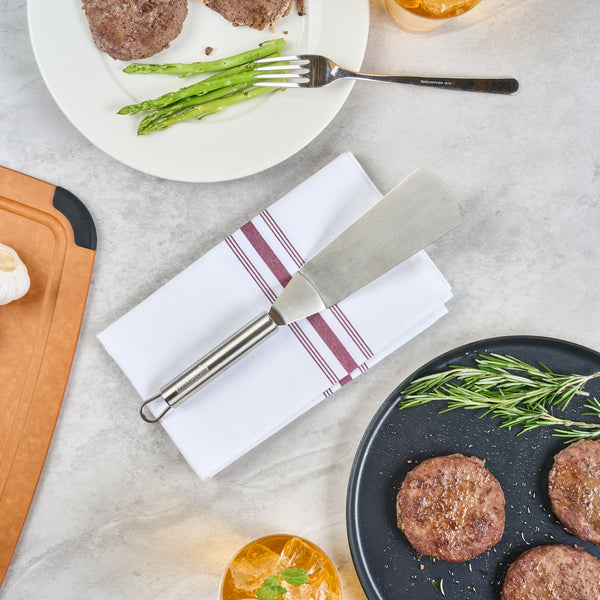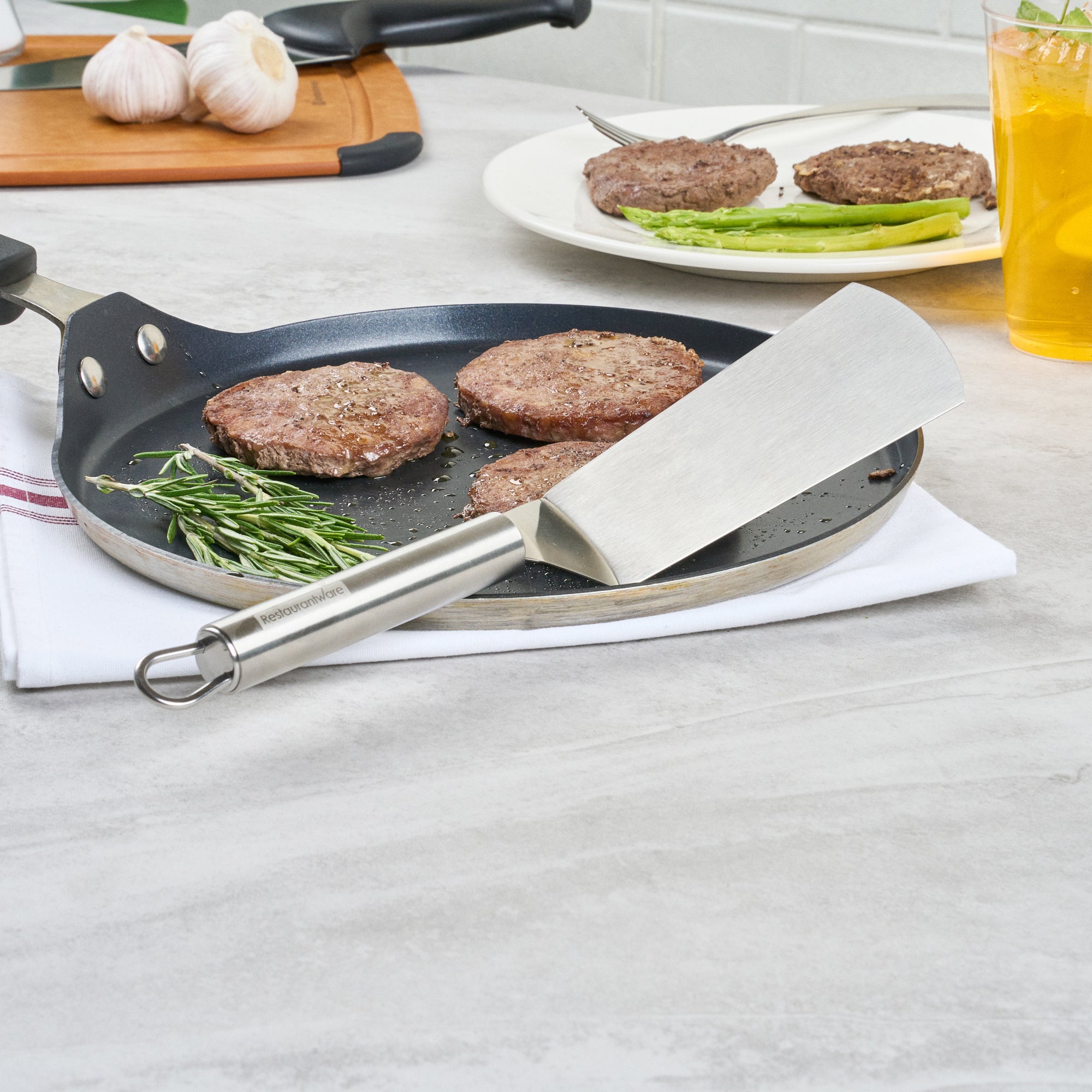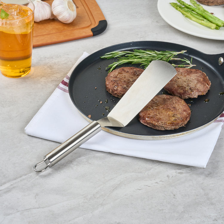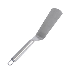 Enhance kitchen efficiency with precision-engineered tools. The German Standard Metal Spatula features robust stainless steel construction that withstands the rigors of frequent use, ensuring long-lasting reliability in restaurants and catering events. With an 11-inch length, this heavy-duty stainless steel spatula provides optimal reach and control, making it ideal for flipping burgers or pancakes. The flat, wide blade of this pancake flipper allows for effortless flips, impressing clients with your culinary skill. An ergonomically designed handle offers a comfortable grip, reducing hand fatigue during extended use and enhancing the productivity of chefs in busy kitchens. Its heat-resistant feature allows safe handling of hot foods, while dishwasher-safe properties facilitate easy cleaning, maintaining hygiene standards effortlessly. Elevate your kitchen operations with this versatile tool perfect for commercial foodservice settings. Each order includes 24 German Standard Metal Spatula.