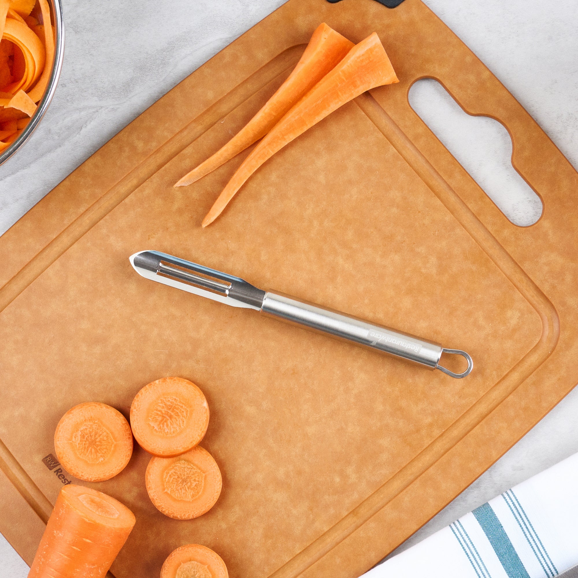 - Double-edged blade consistently delivers beautifully peeled produce every time