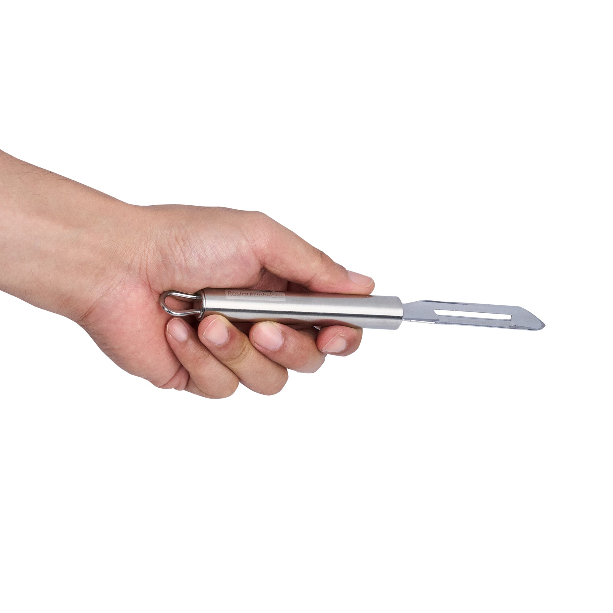 Experience the ease and precision of our German Standard Stainless Steel Vegetable Peeler. The double-edged blade in this vegetable peeler facilitates peeling in both forward and backward motions, offering increased speed and efficiency during food preparation. This potato peeler features a sharp blade that effectively removes the skin from any vegetable, streamlining kitchen tasks and boosting cooking efficiency. Ergonomically designed, the handle of this cucumber peeler ensures a comfortable and secure grip, reducing hand fatigue and providing optimal control during use. Made from stainless steel, this carrot peeler ensures robust performance and longevity in your kitchen. The built-in hook of this peeler for carrot ensures easy storage when not in use. This stainless steel vegetable peeler is dishwasher-safe, offering a quick and efficient cleanup. Measuring 7.6 inches in length, this stainless steel peeler is a compact yet essential tool in your kitchen. Sold in a 1 count box.