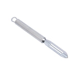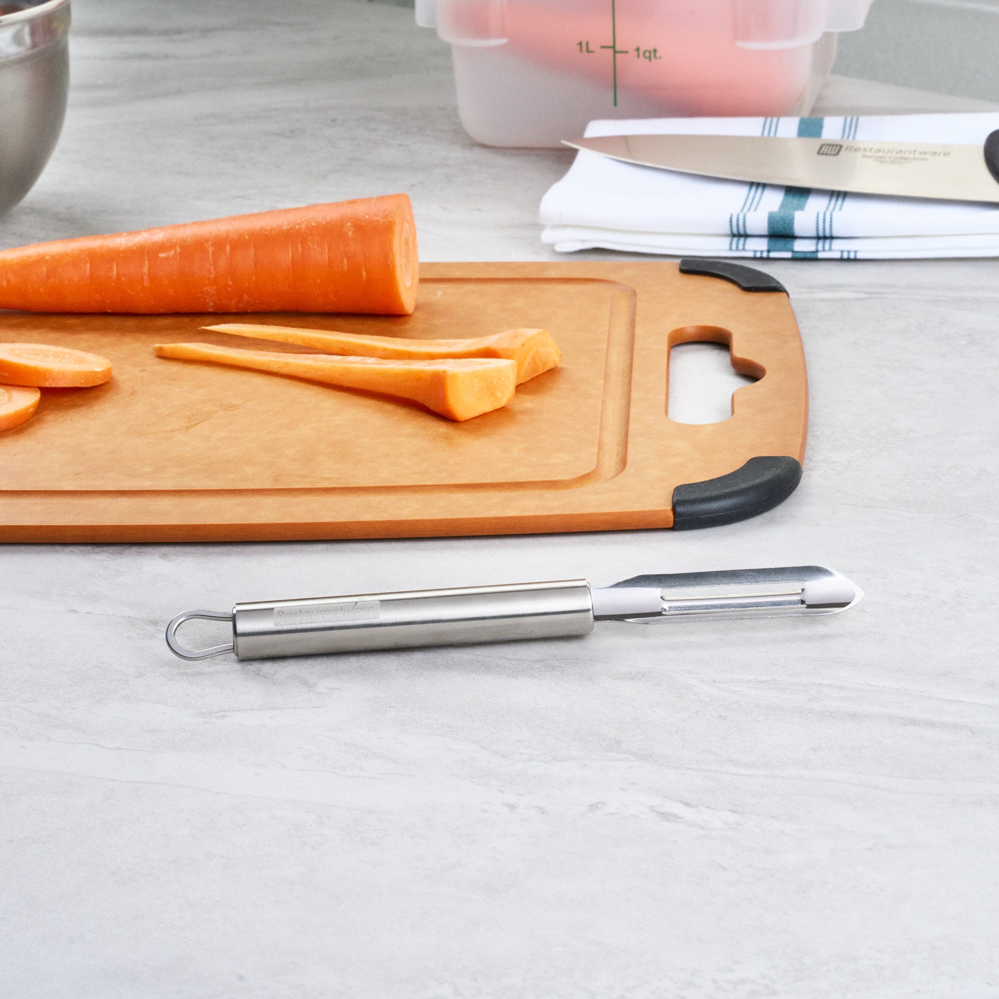 Efficiently prepare produce with a precision vegetable peeler. The German Standard Ergonomic Vegetable Peeler features a sharp, double-edged blade that ensures beautifully peeled produce every time, significantly enhancing food preparation speed in commercial kitchens. Crafted from stainless steel, this peeler is resistant to corrosion, making it an ideal stainless steel peeler for high-volume kitchen environments. Its ergonomic handle design provides a comfortable grip, reducing hand fatigue during extended food prep sessions, making it a reliable ergonomic peeler. Measuring 7 3/4 inches in length, this compact peeler is easy to store and maneuver, fitting seamlessly into any kitchen setup. Plus, its dishwasher-safe construction simplifies cleaning and maintenance, promoting kitchen hygiene and efficiency. Elevate your kitchen's operational efficiency with this top-tier kitchen tool. Each order includes 24 German Standard Ergonomic Vegetable Peelers.