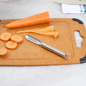 Efficiently prepare produce with a precision vegetable peeler. The German Standard Ergonomic Vegetable Peeler features a sharp, double-edged blade that ensures beautifully peeled produce every time, significantly enhancing food preparation speed in commercial kitchens. Crafted from stainless steel, this peeler is resistant to corrosion, making it an ideal stainless steel peeler for high-volume kitchen environments. Its ergonomic handle design provides a comfortable grip, reducing hand fatigue during extended food prep sessions, making it a reliable ergonomic peeler. Measuring 7 3/4 inches in length, this compact peeler is easy to store and maneuver, fitting seamlessly into any kitchen setup. Plus, its dishwasher-safe construction simplifies cleaning and maintenance, promoting kitchen hygiene and efficiency. Elevate your kitchen's operational efficiency with this top-tier kitchen tool. Each order includes 6 German Standard Ergonomic Vegetable Peelers.