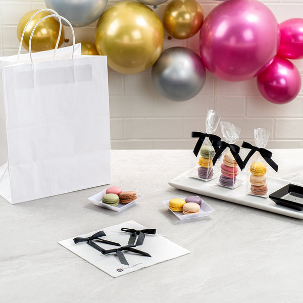 These pre-tied bows are equipped with twist-ties to instantly add an elegant touch to your gift packing. These bows save time and effort while still adding a classy touch to any package.