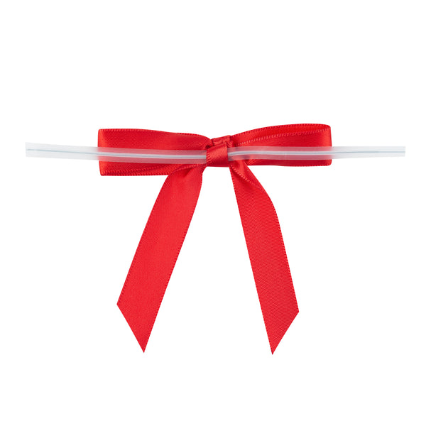 RED POLYESTER SATIN TWIST TIE BOW - PRE-TIED