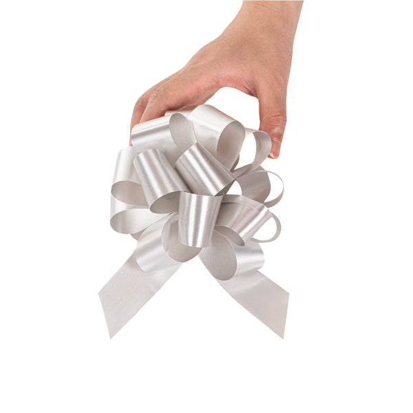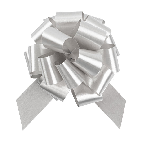 SILVER PLASTIC FLORA SATIN PULL BOW
