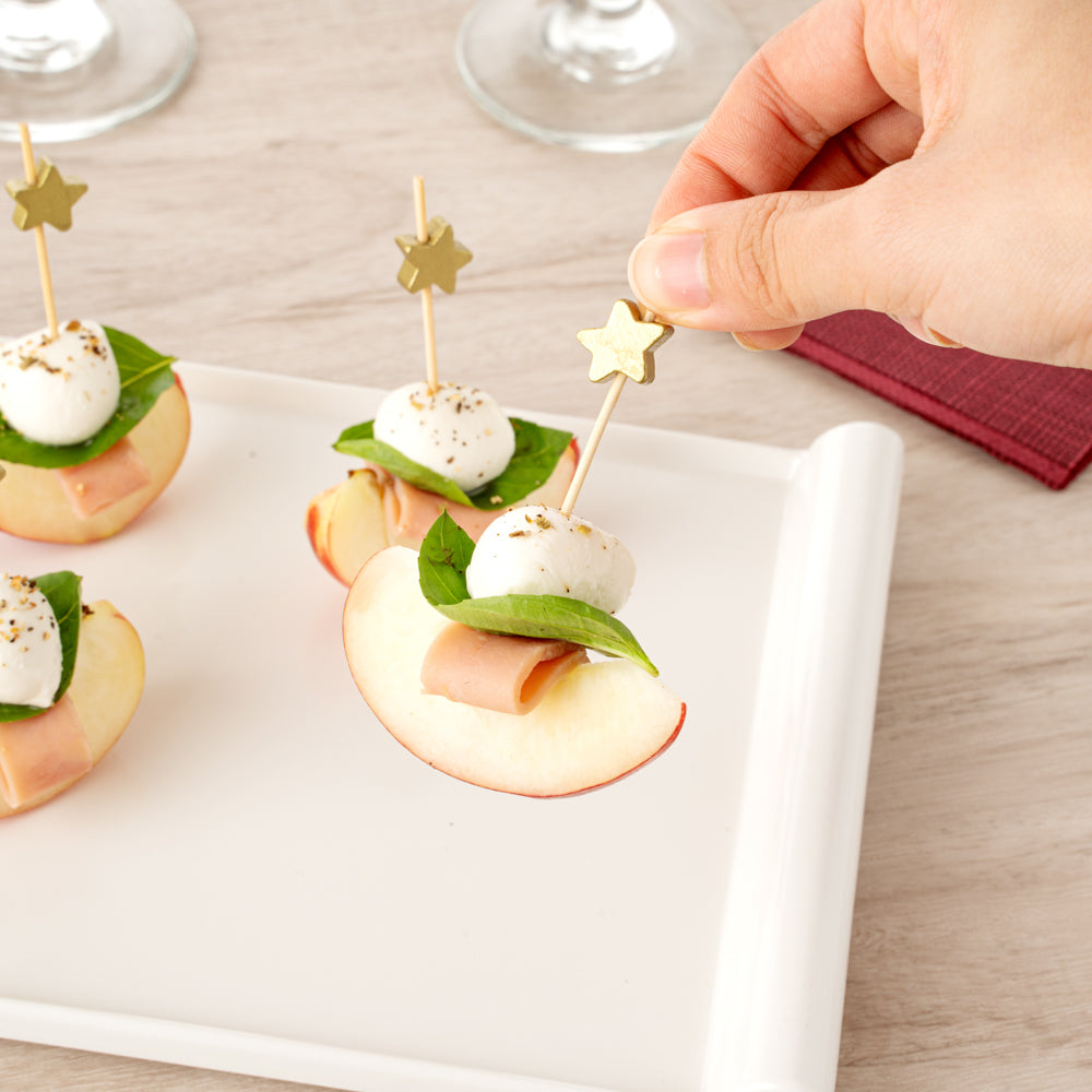- Gold star design adds style to appetizers and cocktail garnishes