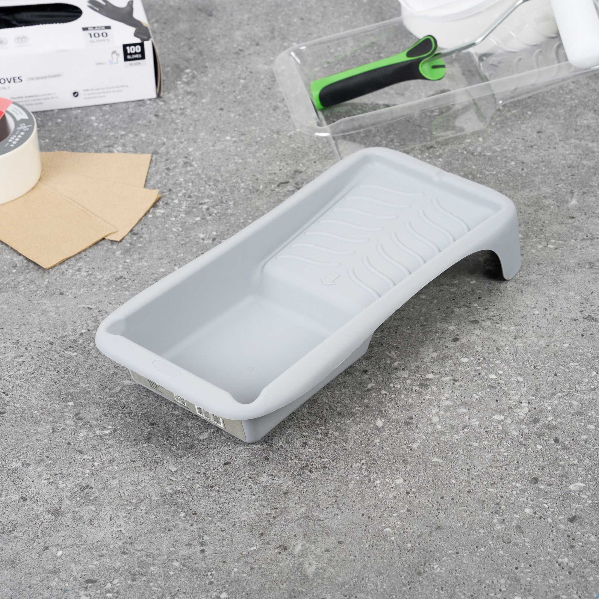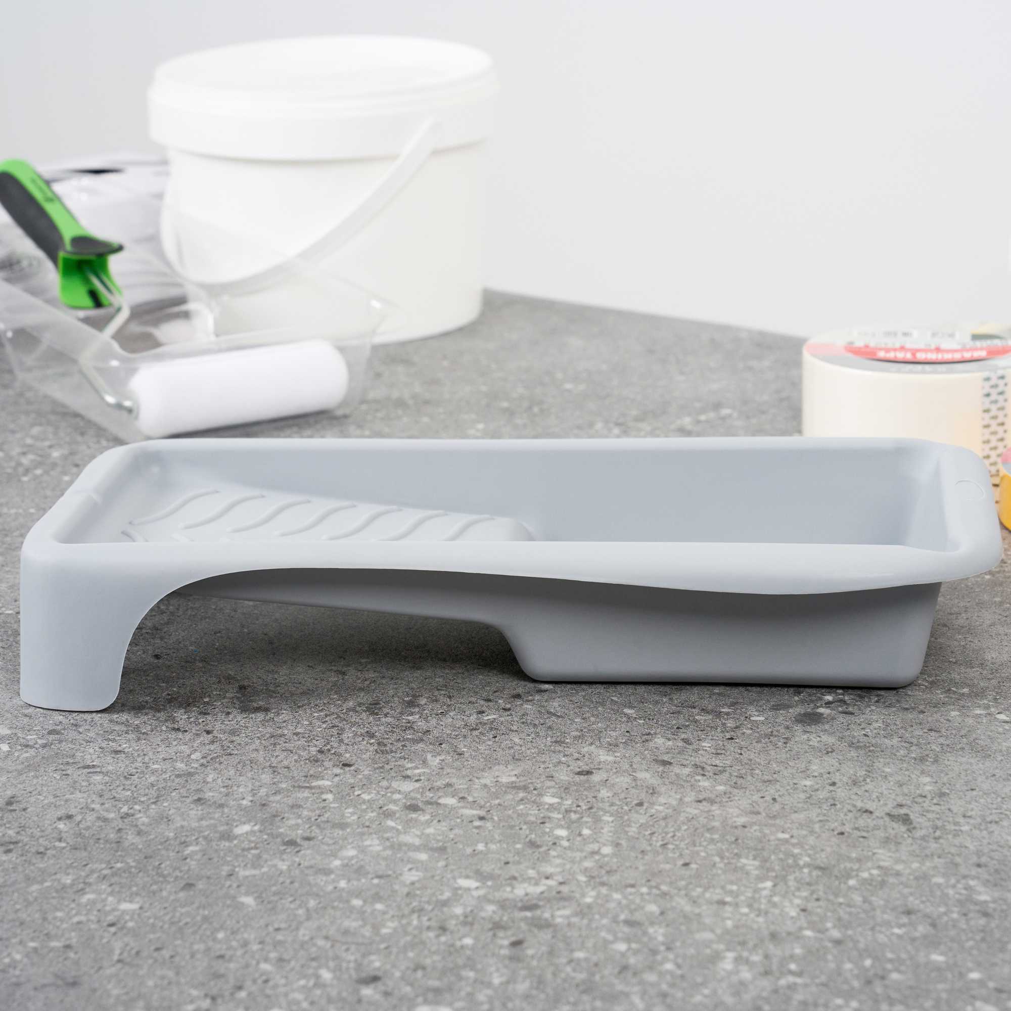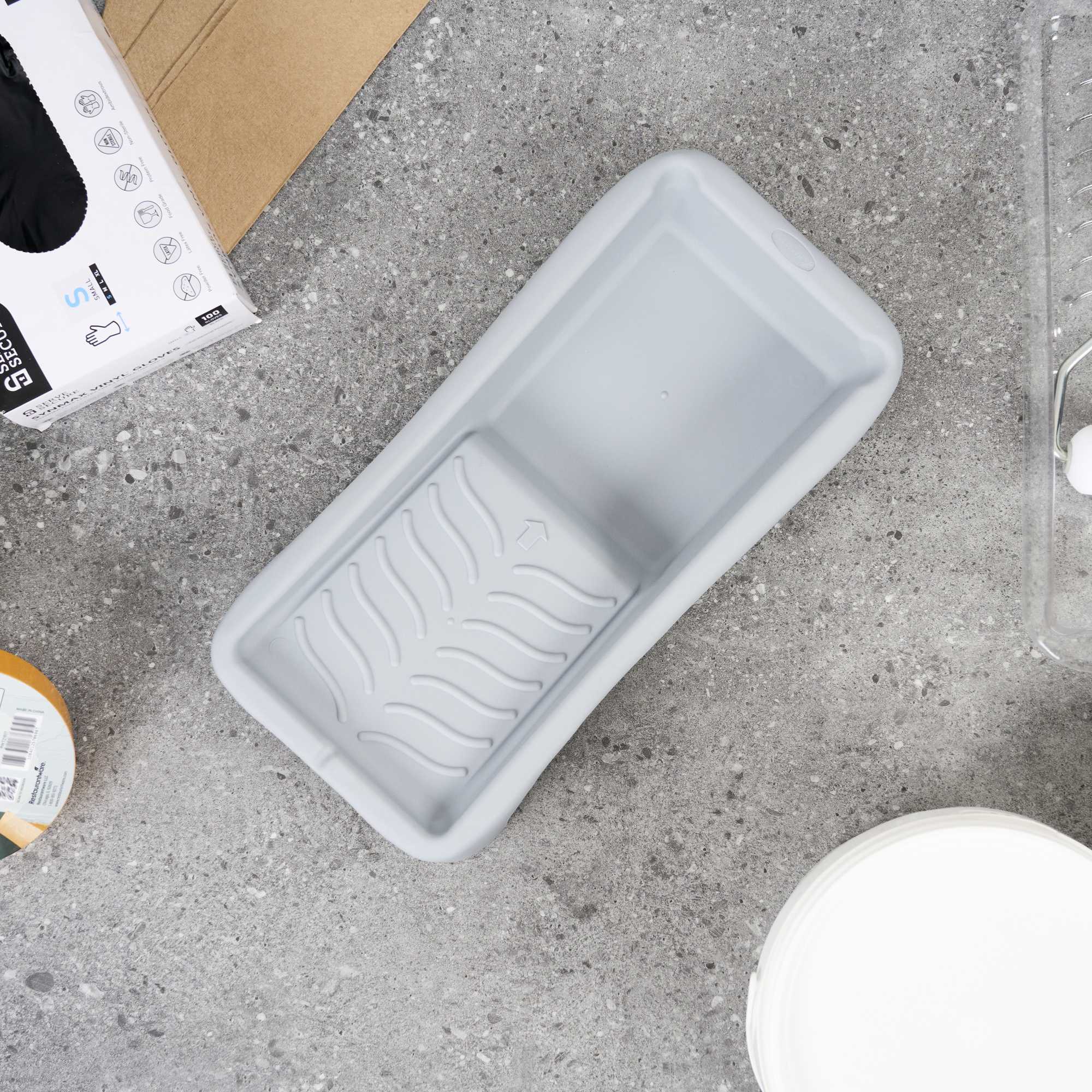 Enhance your painting projects with our Handy Tek 1.5-quart Gray Plastic Paint Tray. This durable and reusable plastic paint tray is designed for multiple uses, making it an effective choice for any painting endeavor. Featuring a deep-groove design, this gray roller paint tray increases rigidity and provides better paint loading, ensuring a smooth and even application. With curved edges, this deep well paint tray allows for maximum paint pickup in corners, reducing waste and improving coverage. A ribbed bottom helps this paint application tray evenly distribute paint on roller covers, minimizing drips and ensuring a consistent coat. Plus, the tray includes a rest area to cradle your roller frame between uses. Measuring 13.9 inches in length by 6.89 inches in width by 2.48 inches in height, this tray offers a generous capacity of 49.35 ounces. Sold in a 1 count box.