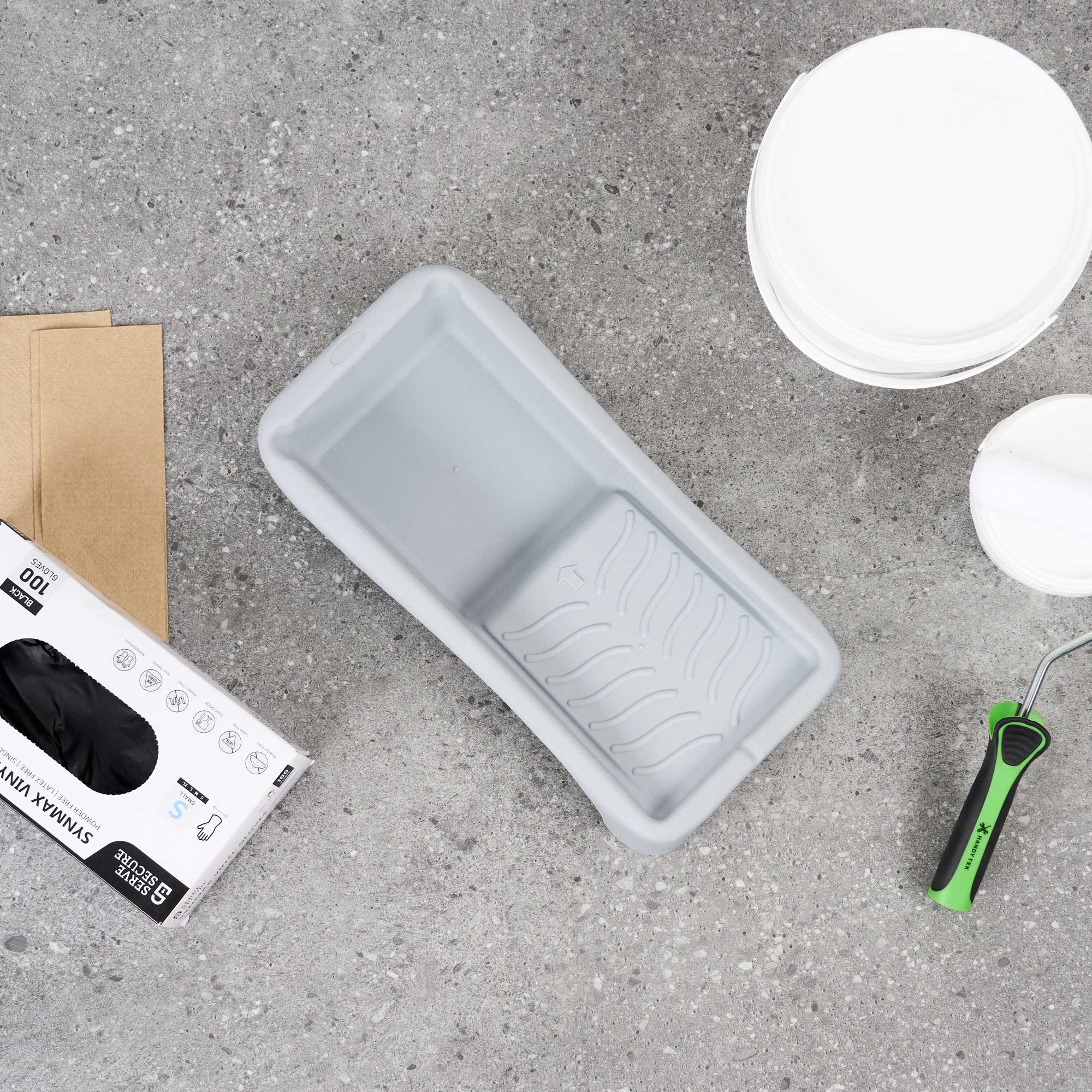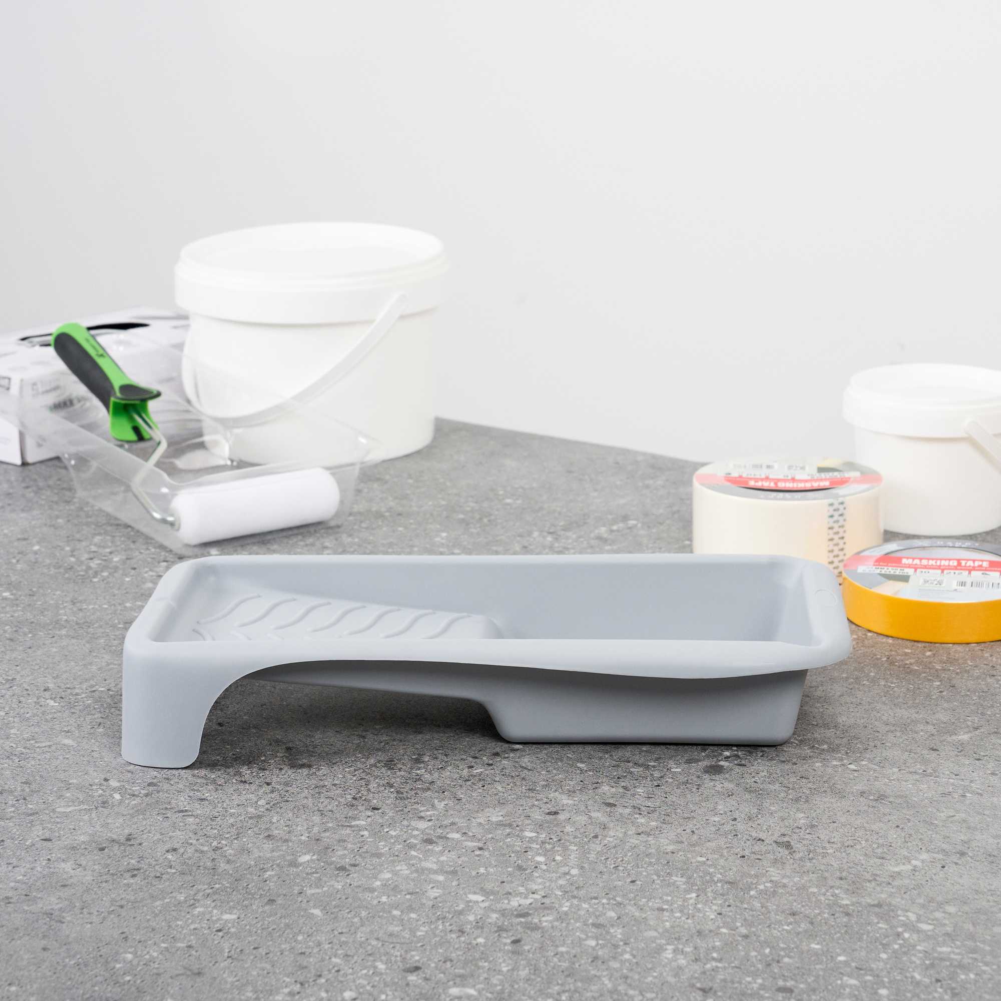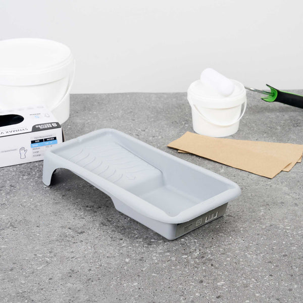 Enhance your painting projects with our Handy Tek 1.5-quart Gray Plastic Paint Tray. This durable and reusable plastic paint tray is designed for multiple uses, making it an effective choice for any painting endeavor. Featuring a deep-groove design, this gray roller paint tray increases rigidity and provides better paint loading, ensuring a smooth and even application. With curved edges, this deep well paint tray allows for maximum paint pickup in corners, reducing waste and improving coverage. A ribbed bottom helps this paint application tray evenly distribute paint on roller covers, minimizing drips and ensuring a consistent coat. Plus, the tray includes a rest area to cradle your roller frame between uses. Measuring 13.9 inches in length by 6.89 inches in width by 2.48 inches in height, this tray offers a generous capacity of 49.35 ounces. Sold in a 1 count box.