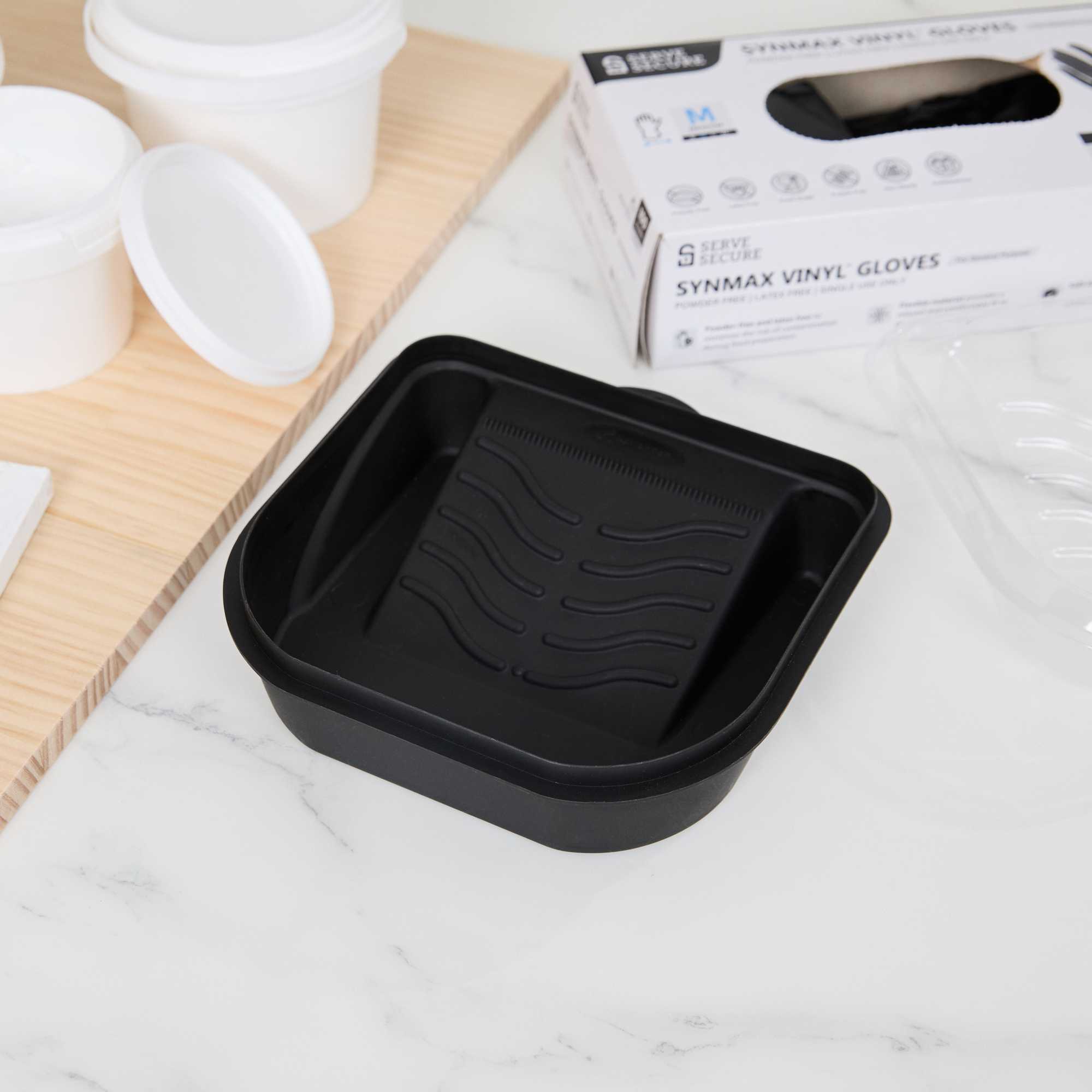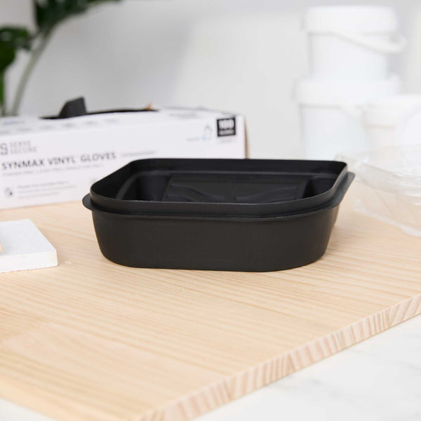 Introducing our Handy Tek 27-ounce Black Plastic Paint Tray / Pail Lid, the ultimate solution for your painting projects with its versatile functionality. Made from durable plastic, this roller tray lid withstands repeated use, ensuring reliability and longevity for all your painting needs. Designed as a dual-purpose lid and tray, this black paint pail cover transforms into a tray for rollers and brushes or flips over to act as a secure lid, keeping debris out of your paint bucket. Specifically crafted to fit the Handy Tek Paint Bucket (SKU: RWT2135GR), this paint bucket lid provides a tight seal to avoid spills and maintain paint freshness. Featuring a ribbed surface, this paint application tray ensures even paint distribution and removes excess paint from rollers for a smooth finish. With a generous capacity of 27.72 ounces, this paint tray lid measures 7.09 inches in length by 6.89 inches in width by 1.85 inches in height. Sold in a 1 count box.