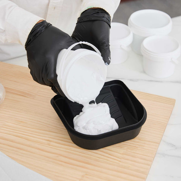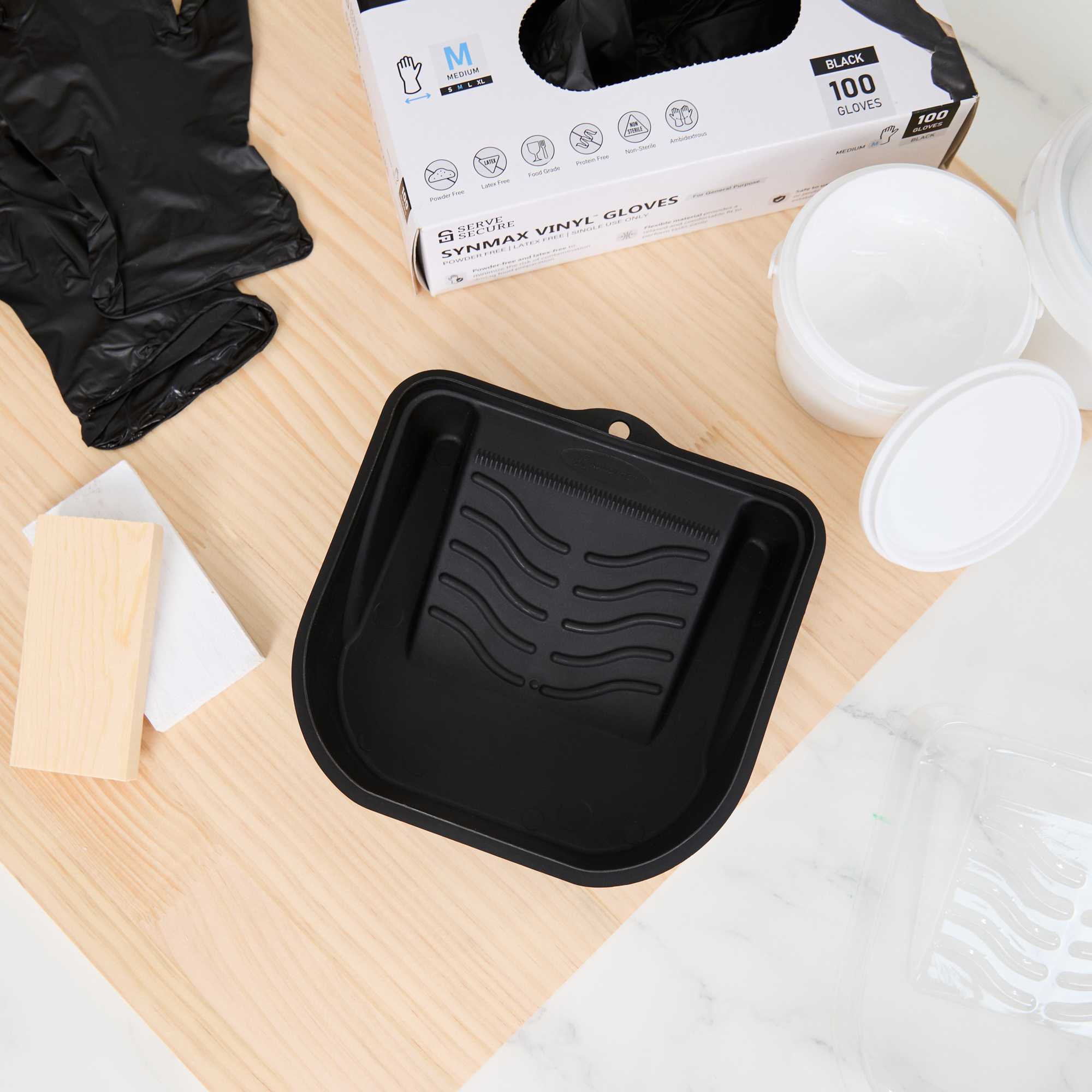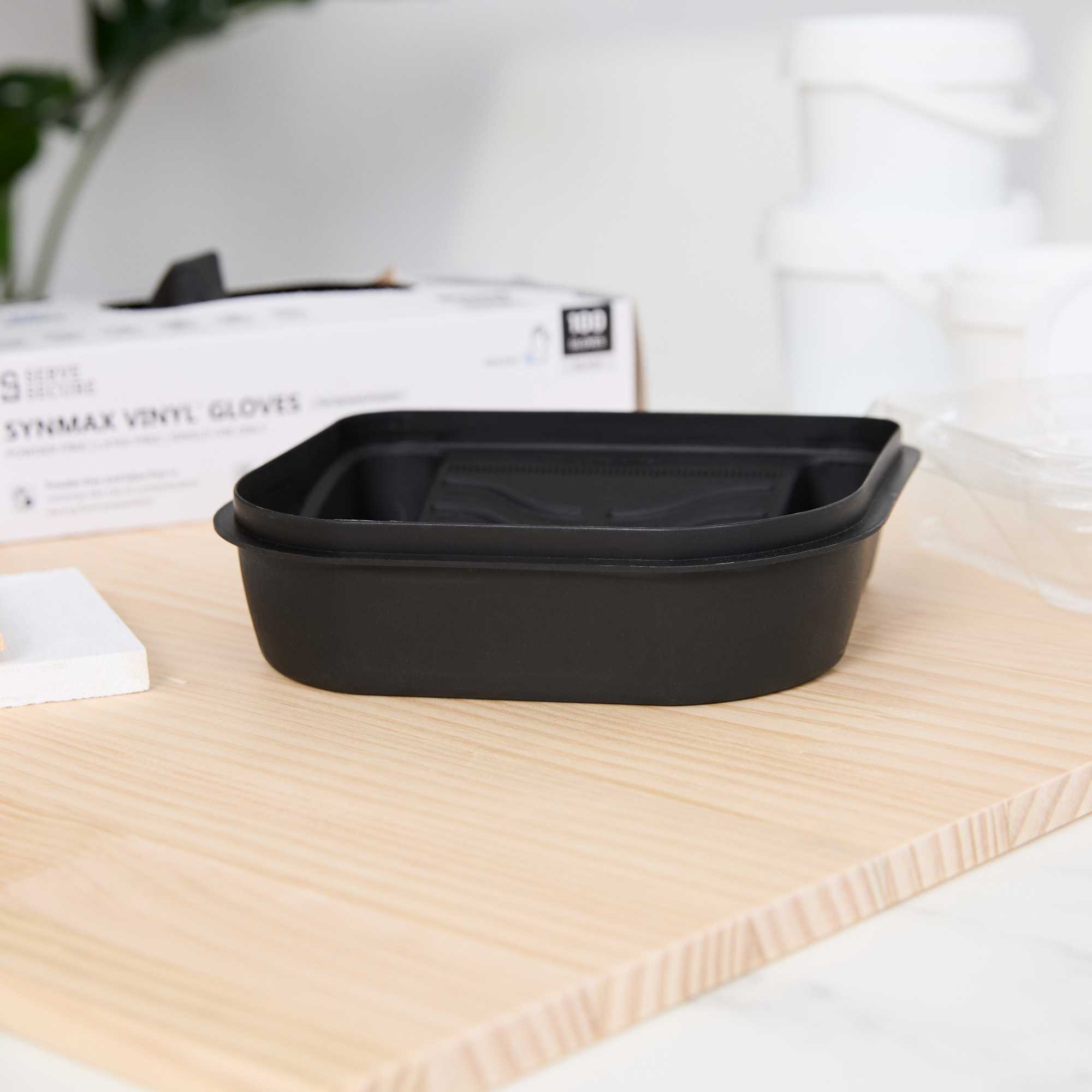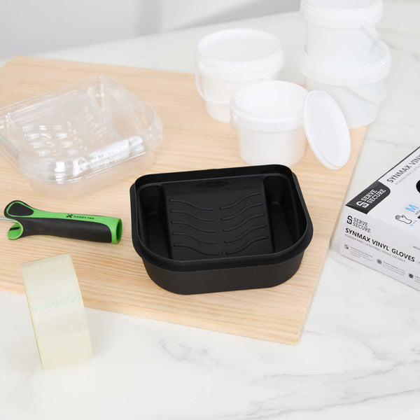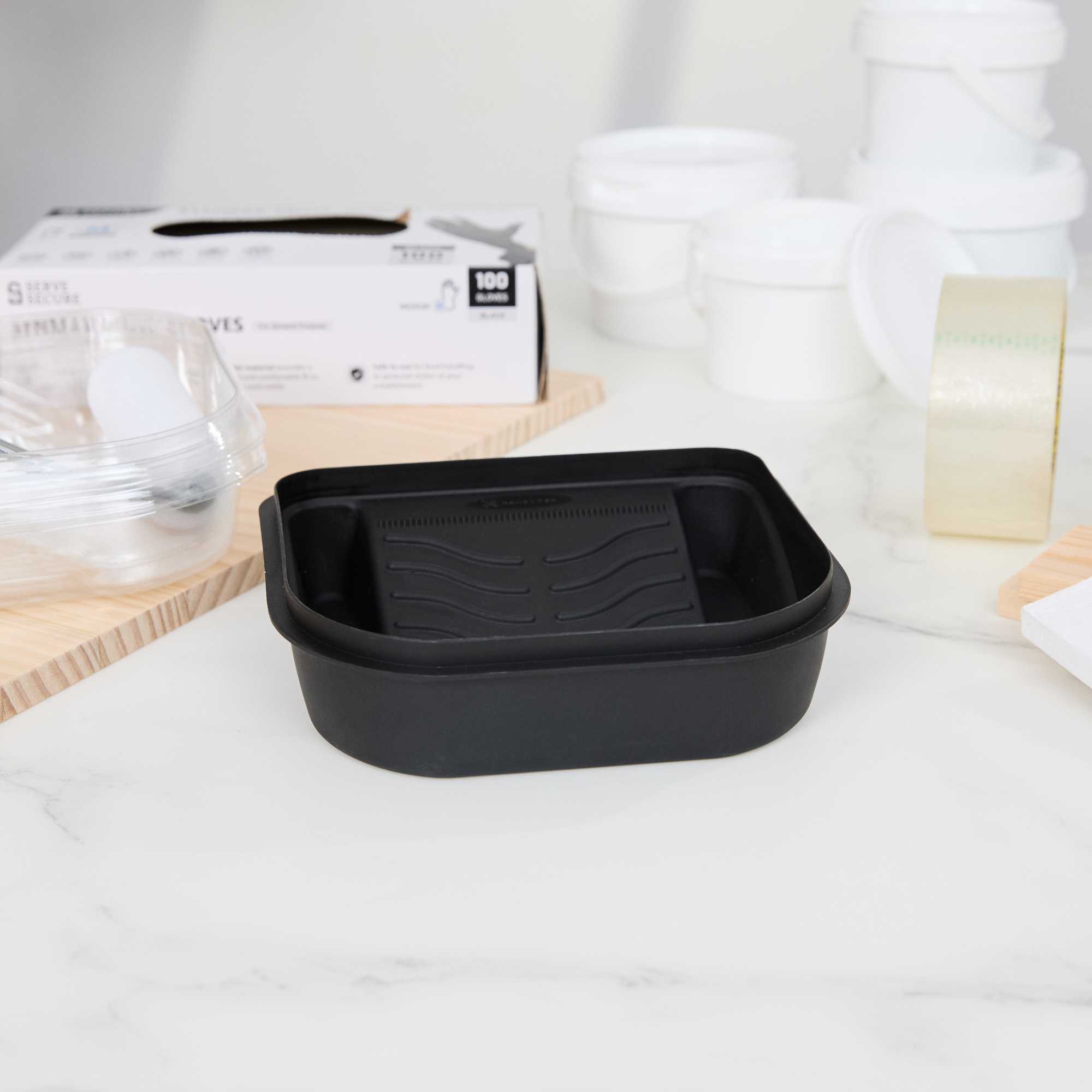 Introducing our Handy Tek 27-ounce Black Plastic Paint Tray / Pail Lid, the ultimate solution for your painting projects with its versatile functionality. Made from durable plastic, this roller tray lid withstands repeated use, ensuring reliability and longevity for all your painting needs. Designed as a dual-purpose lid and tray, this black paint pail cover transforms into a tray for rollers and brushes or flips over to act as a secure lid, keeping debris out of your paint bucket. Specifically crafted to fit the Handy Tek Paint Bucket (SKU: RWT2135GR), this paint bucket lid provides a tight seal to avoid spills and maintain paint freshness. Featuring a ribbed surface, this paint application tray ensures even paint distribution and removes excess paint from rollers for a smooth finish. With a generous capacity of 27.72 ounces, this paint tray lid measures 7.09 inches in length by 6.89 inches in width by 1.85 inches in height. Sold in a 50 count box.