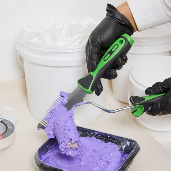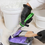 - Curved edges scrape rollers efficiently to reduce waste and mess