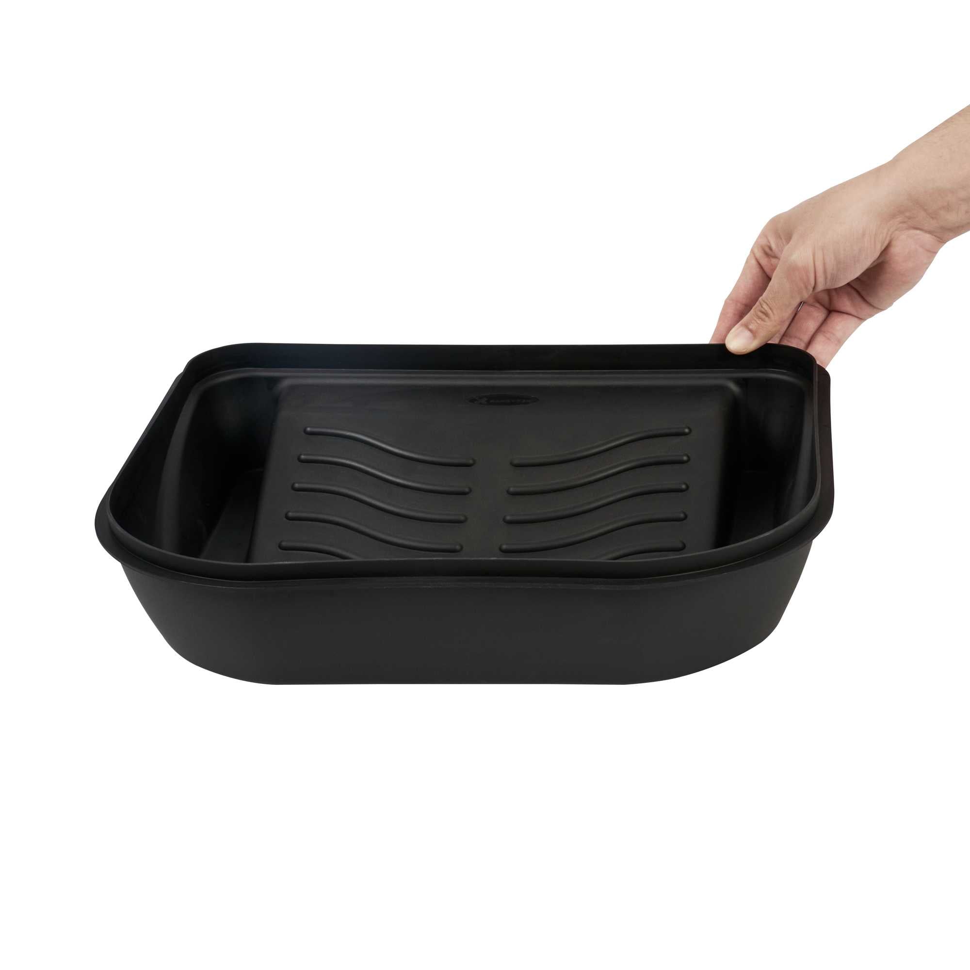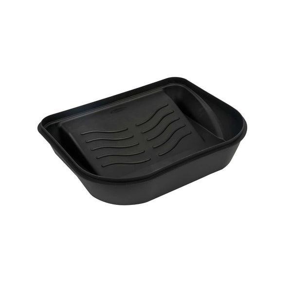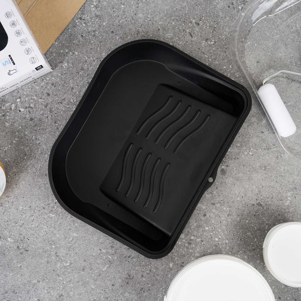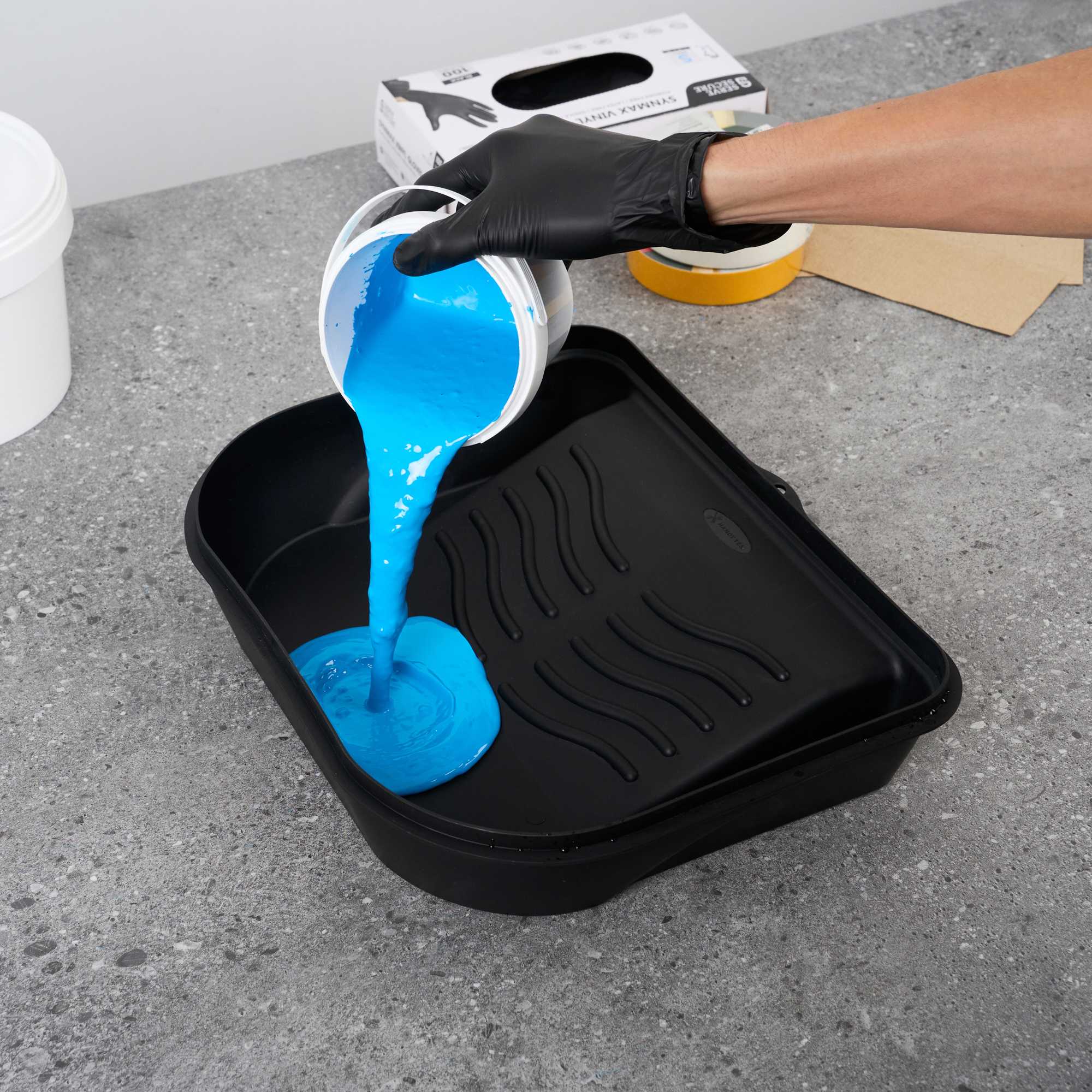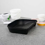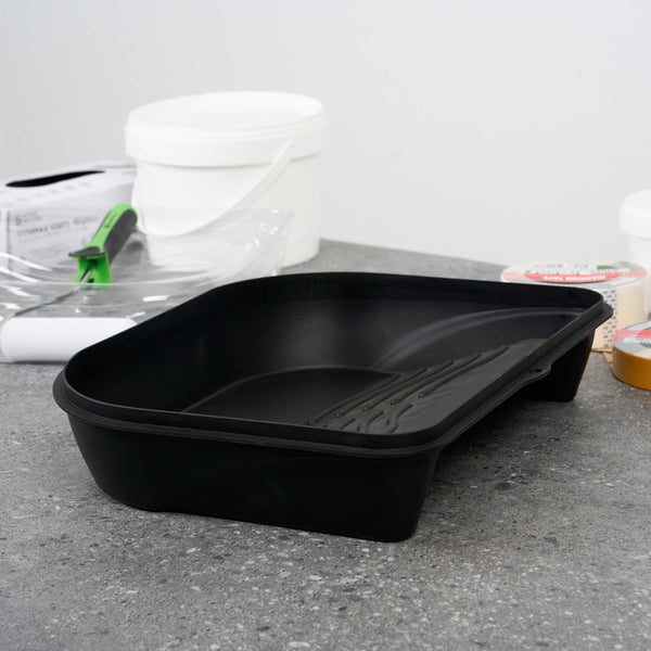 Our Handy Tek 5-quart Black Plastic Paint Tray / Pail Lid is a must-have for any painting project, offering exceptional versatility and durability. Made from strong plastic, this paint tray lid withstands repeated use, making it a reliable choice for both expert and DIY painters. Designed as a dual-purpose tool, this black paint pail lid works as a convenient tray for rollers and brushes or flips over to cover your paint bucket and keep debris out. This paint bucket lid is specifically compatible with the Handy Tek Paint Bucket (SKU: RWT2137GR), ensuring a secure fit that prevents spills and keeps paint fresh between uses. Featuring a textured ribbed surface, this roller paint tray helps remove excess paint from rollers, ensuring a smooth and even application with every stroke. With a capacity of 5 quarts, this plastic paint tray measures 14.76 inches in length by 11.89 inches in width by 3.11 inches in height. Sold in a 24 count box.