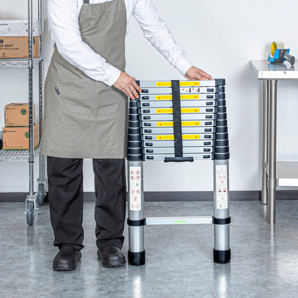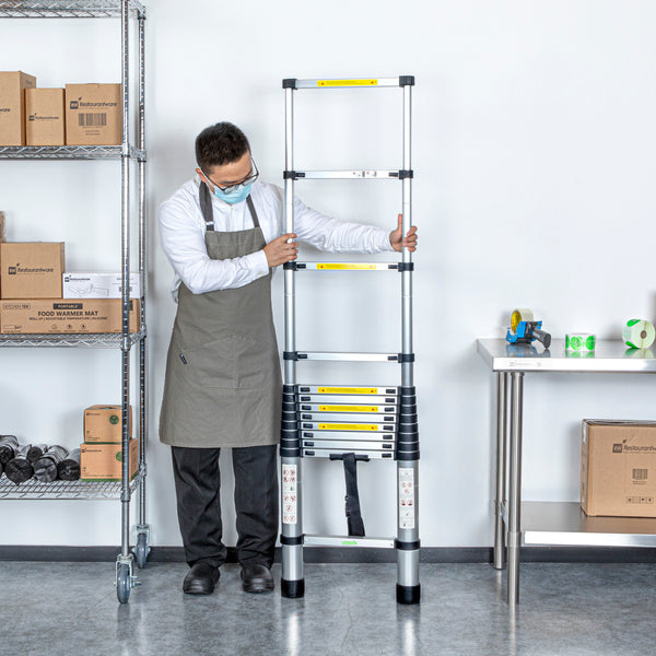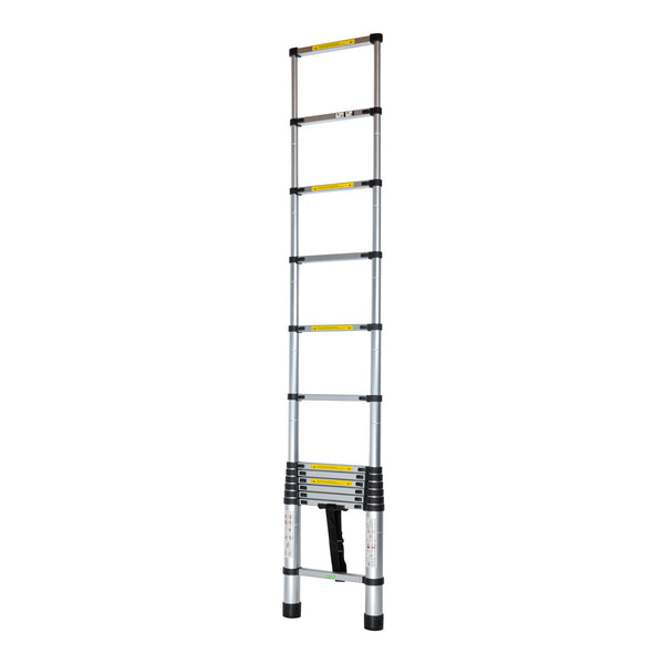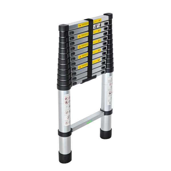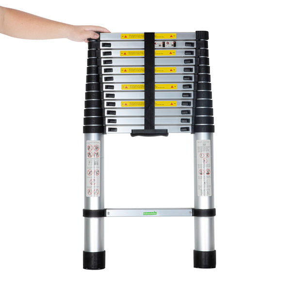 Take your tasks to new heights with the Handy Tek Aluminum Telescoping Extension Ladder, designed for safety and efficiency. Crafted from durable, rust-resistant aluminum, this extendable ladder ensures long-lasting performance and reliability for both indoor and outdoor use. Equipped with slip-resistant feet, this portable telescopic ladder offers superior stability, helping prevent accidents during use. The telescopic mechanism allows for easy height adjustment, making this compact folding ladder ideal for both high-reaching tasks and low-level chores. Plus, the secure locking system keeps each rung firmly in place, offering safety and peace of mind with every use. Thanks to its lightweight, collapsible design, this ladder is easy to carry and store in tight spaces like closets or car trunks. Measuring 33.86 inches in length by 19.29 inches in width by 3.15 inches in height, this extendable ladder can be conveniently stored when not in use. Sold in a 1 count box.