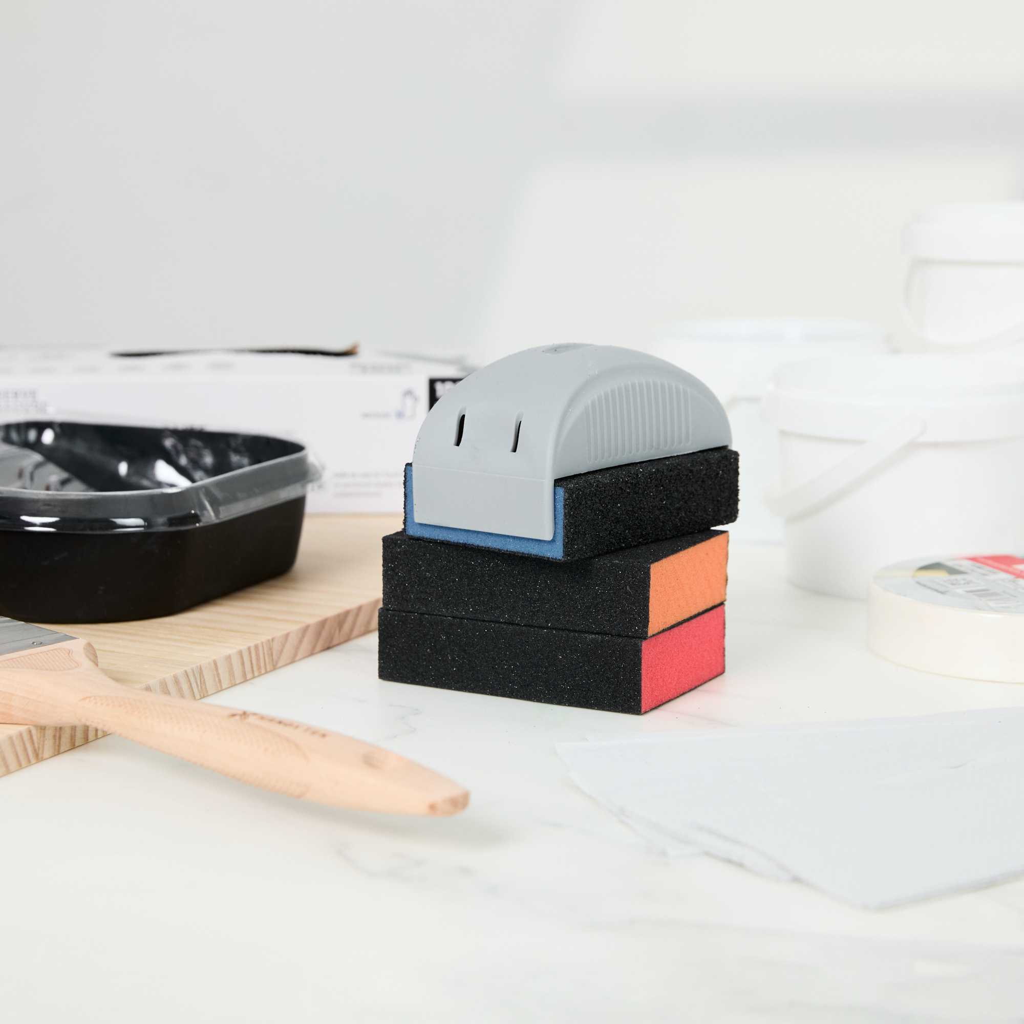 ASSORTED GRIT SANDING SPONGE SET - 4-PIECE, FLAT EDGES, WITH HANDLE