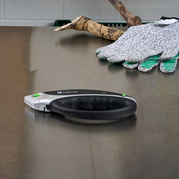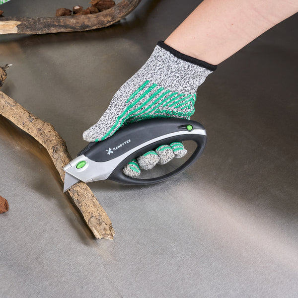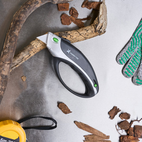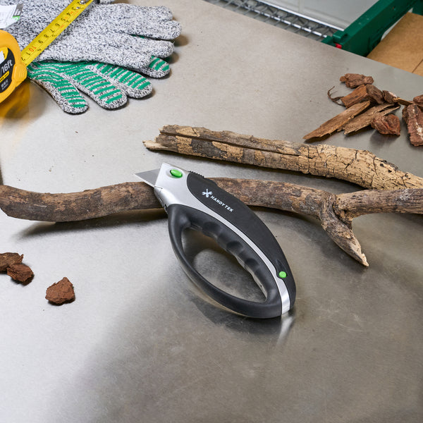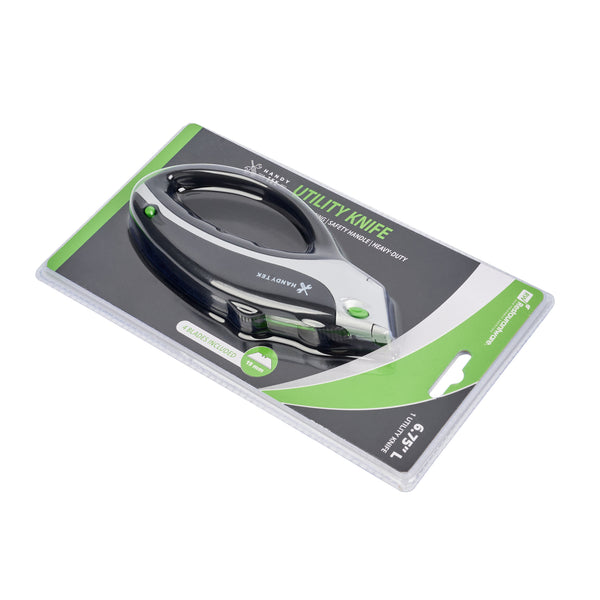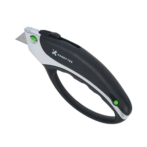 - Retractable design slides the blade safely into the handle and reduces accidental cuts