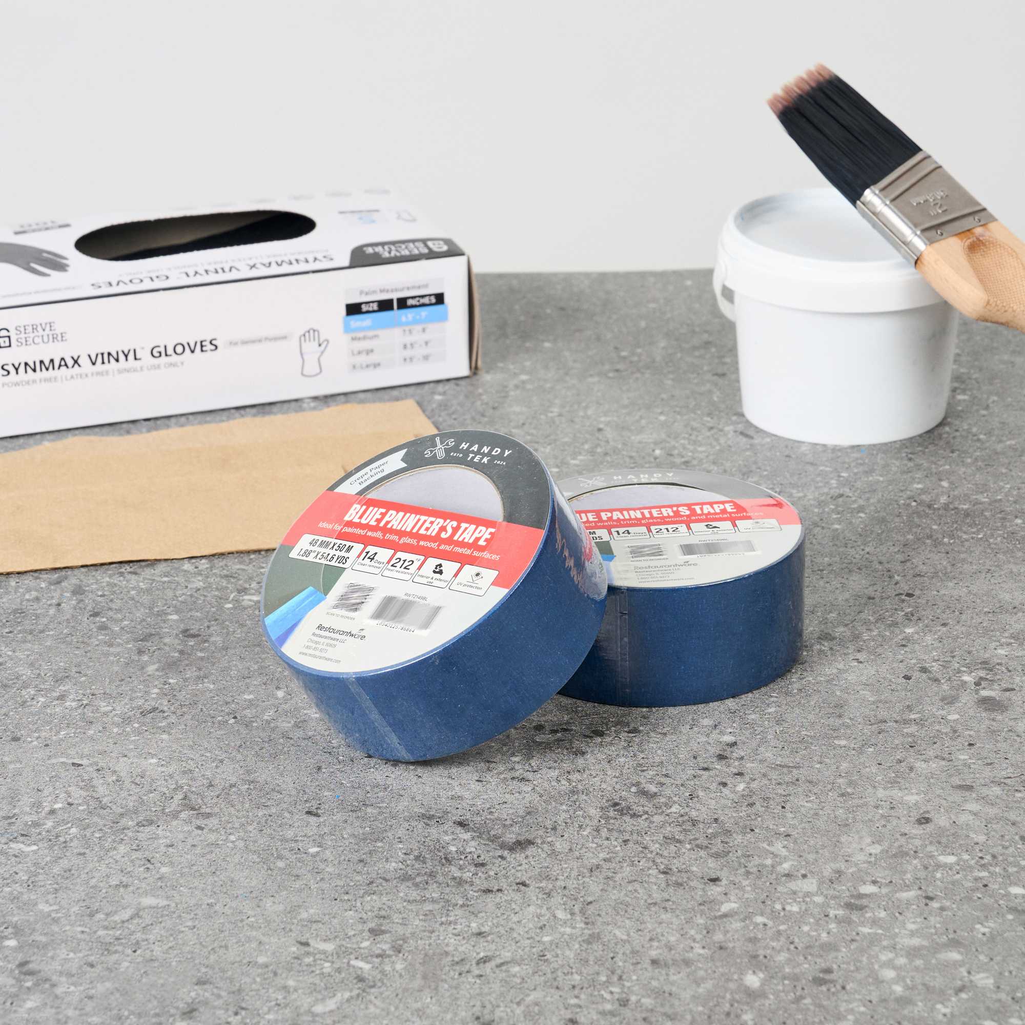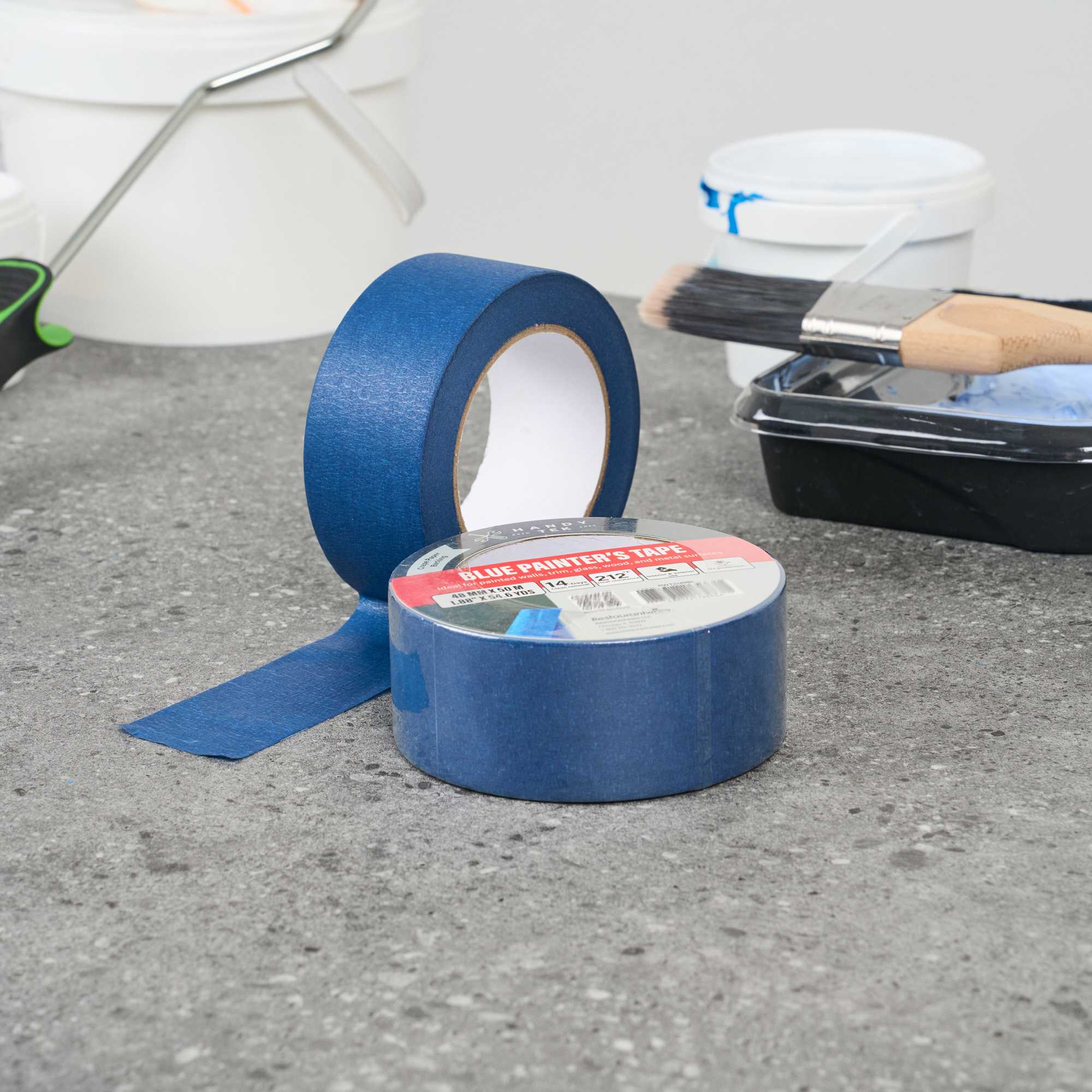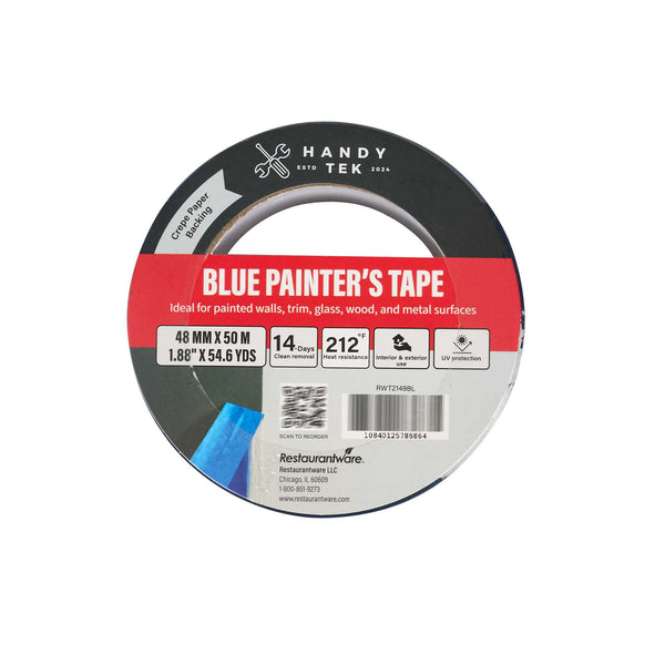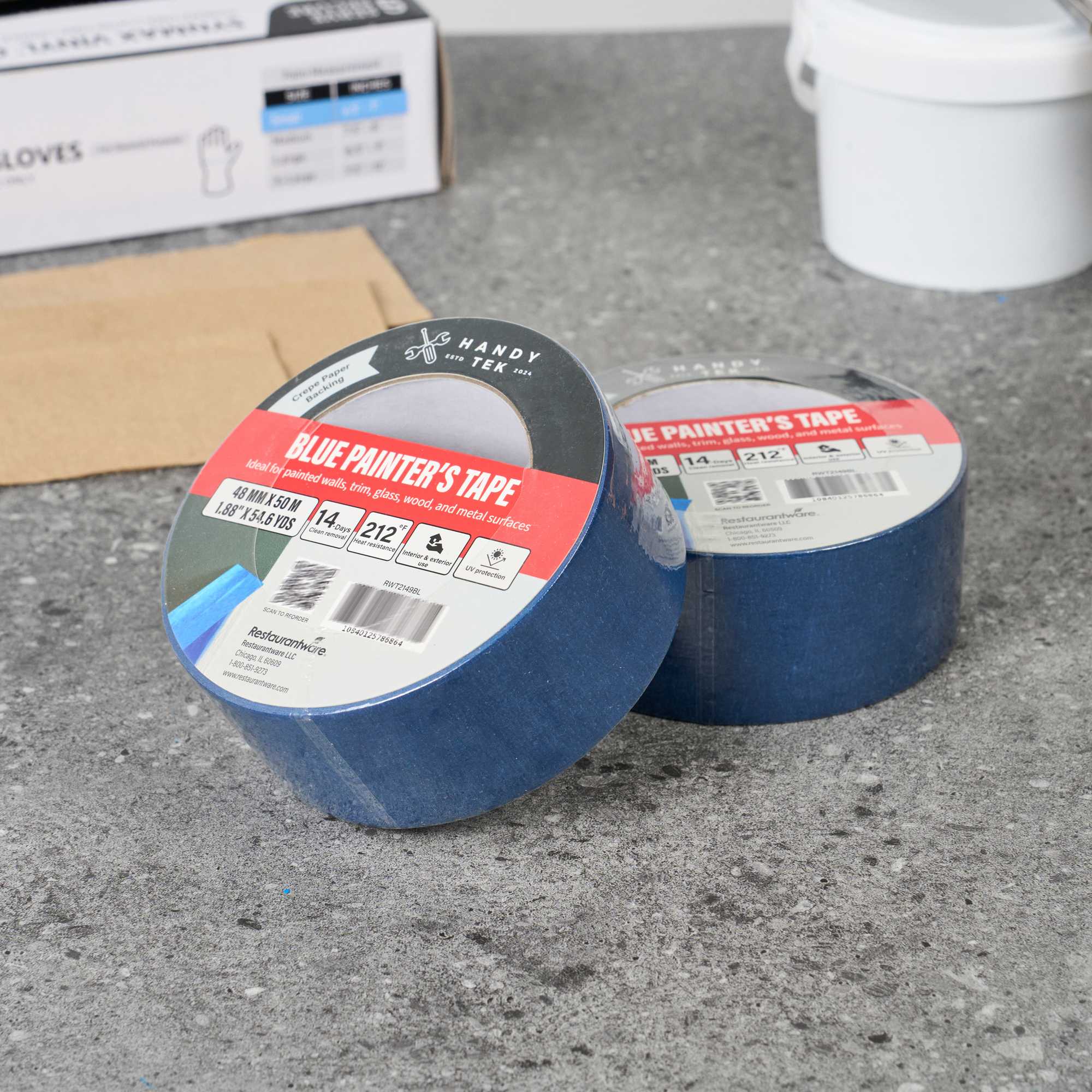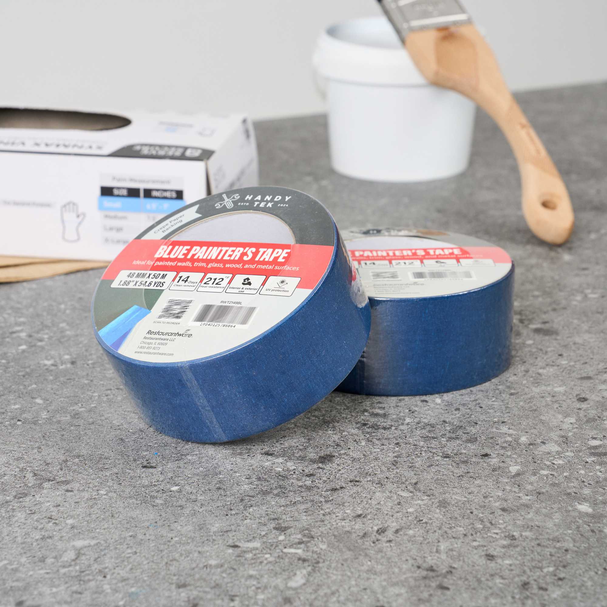 Achieve flawless painting results with our Handy Tek Blue Painter's Tape. This versatile masking tape bonds well to metal, glass, wood, making it ideal for a range of painting tasks. Designed to resist moisture and heat, this painter’s tape ensures clean edges and reliable performance. Its flexible crepe paper backing and rubber adhesive allow the adhesive tape to stretch and conform to curves and corners with ease. Hand-tearable and easy to position, this labeling tape simplifies prep and speeds up application. With 6 day clean removal, this painter's tape peels away without residue, making it suitable for indoor use. Measuring 2 inches in width, this painters tape roll features a total length of 54 yards. Sold in a 1 count box.