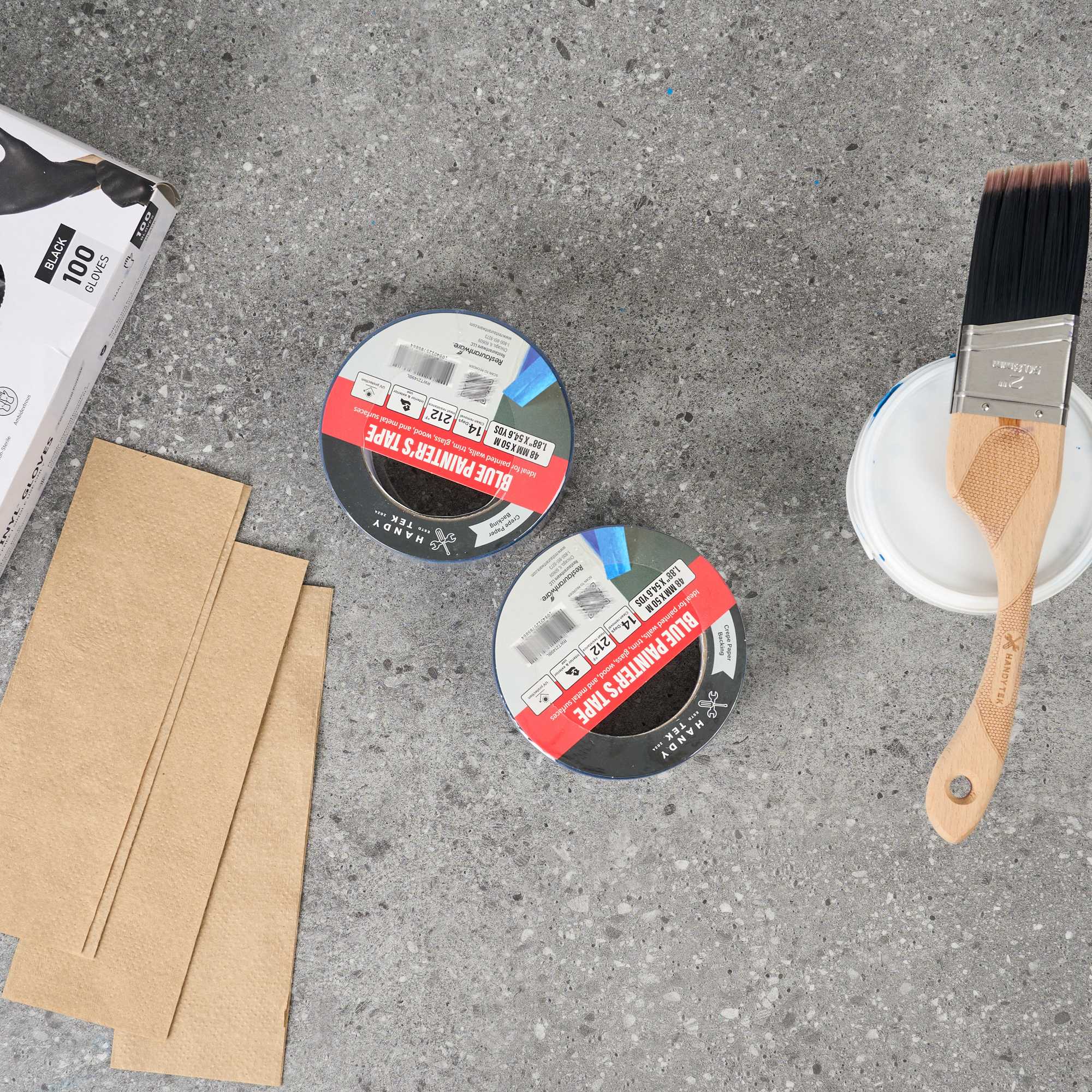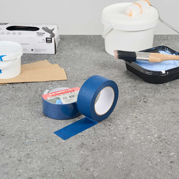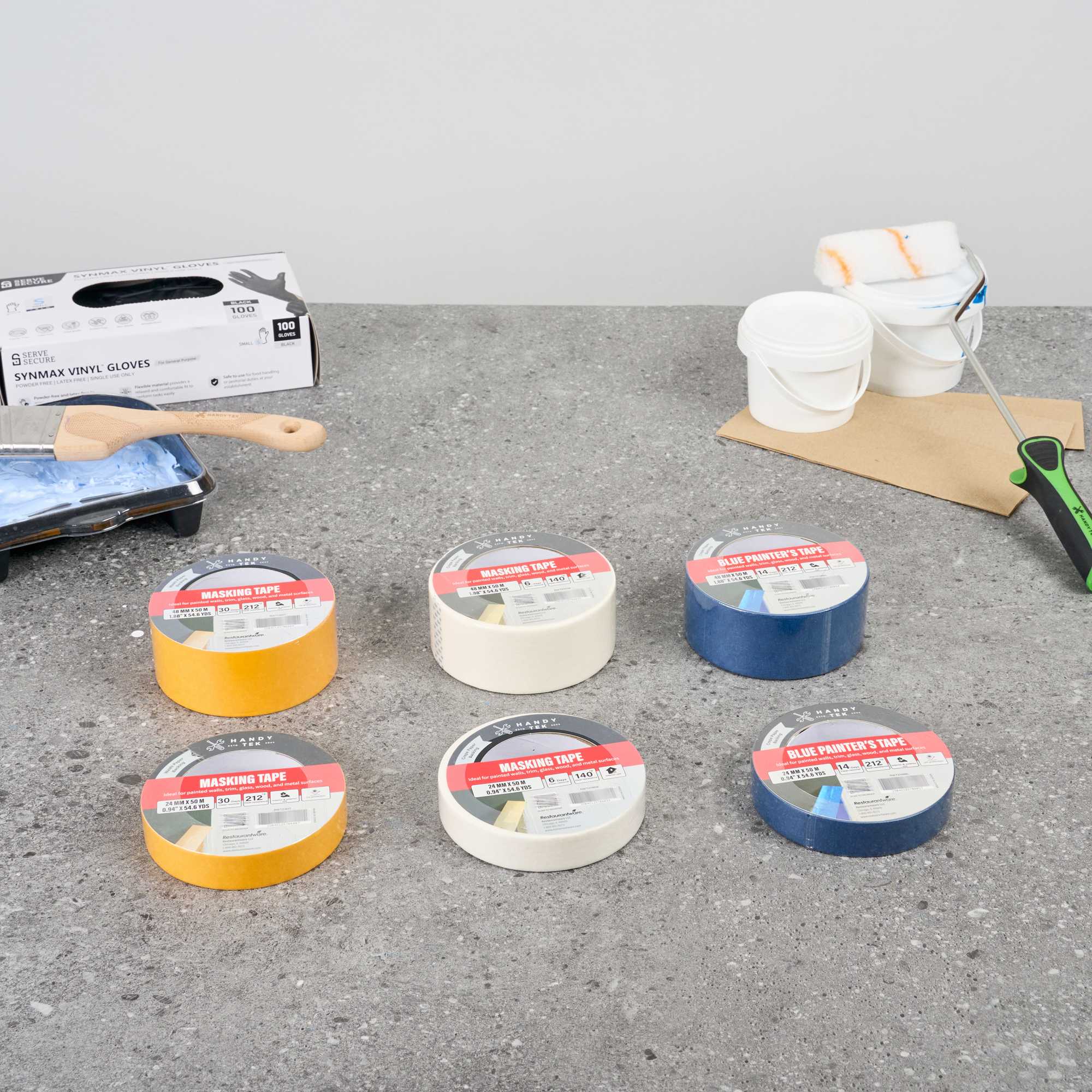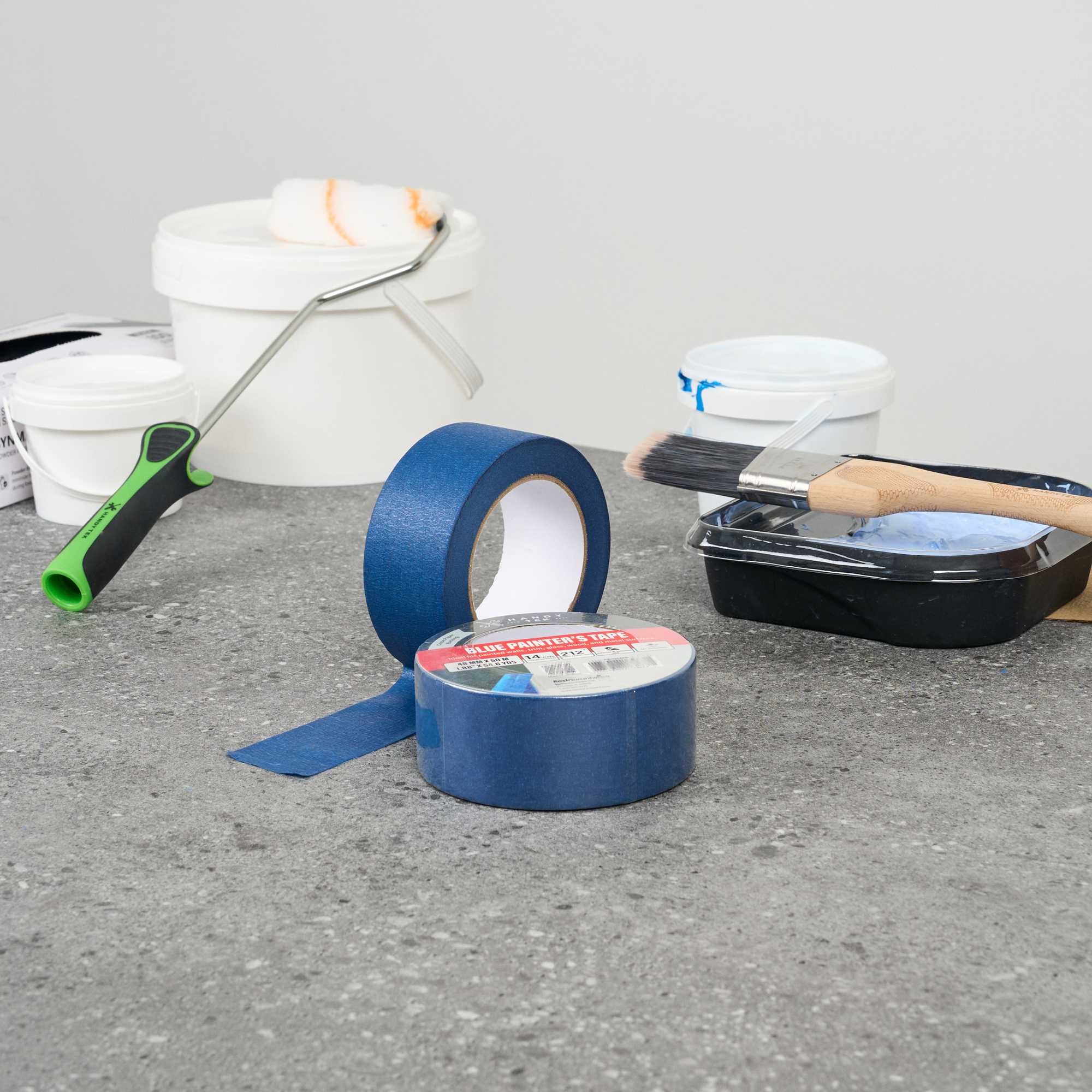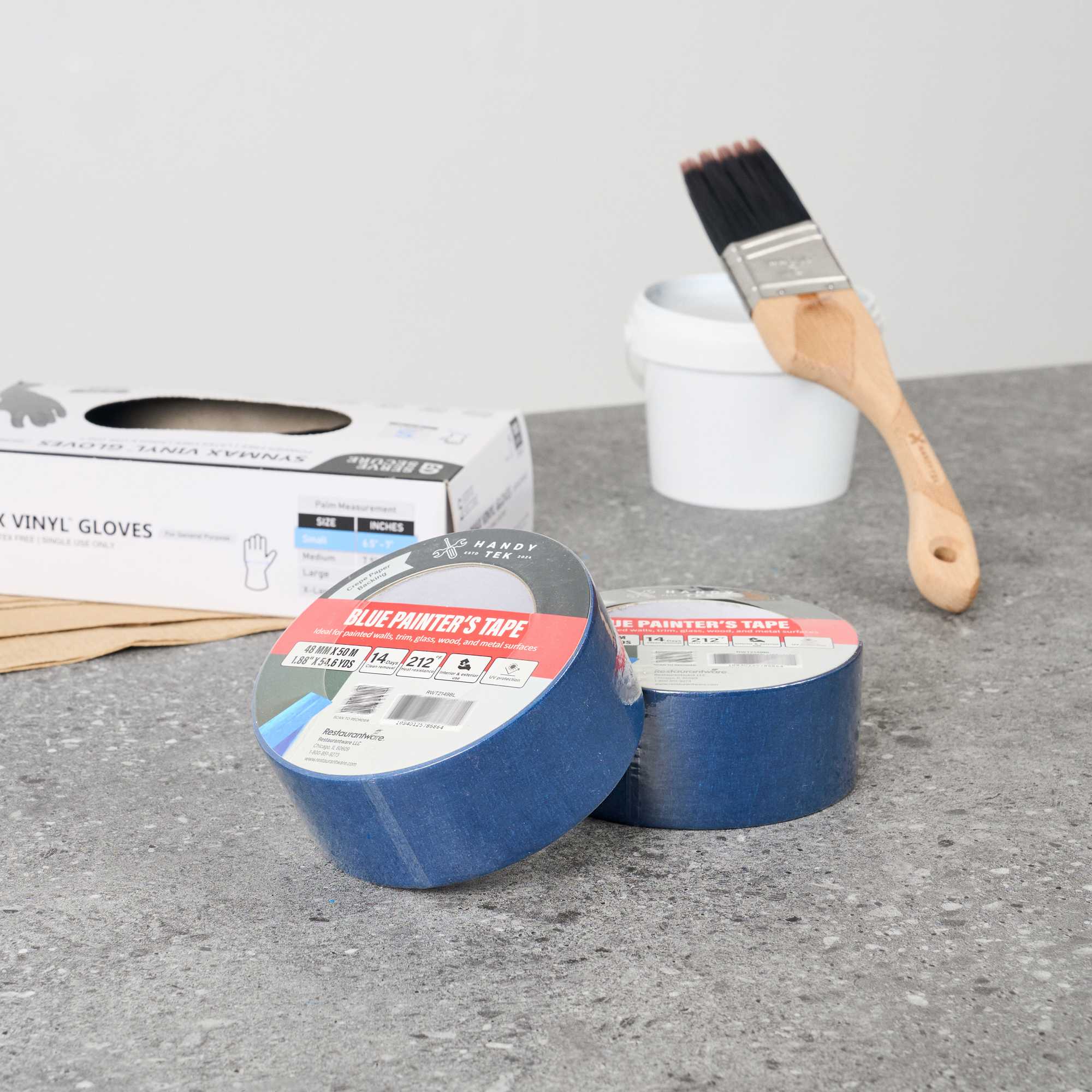 Achieve flawless painting results with our Handy Tek Blue Painter's Tape. This versatile masking tape bonds well to metal, glass, wood, making it ideal for a range of painting tasks. Designed to resist moisture and heat, this painter’s tape ensures clean edges and reliable performance. Its flexible crepe paper backing and rubber adhesive allow the adhesive tape to stretch and conform to curves and corners with ease. Hand-tearable and easy to position, this labeling tape simplifies prep and speeds up application. With 6 day clean removal, this painter's tape peels away without residue, making it suitable for indoor use. Measuring 2 inches in width, this painters tape roll features a total length of 54 yards. Sold in a 1 count box.