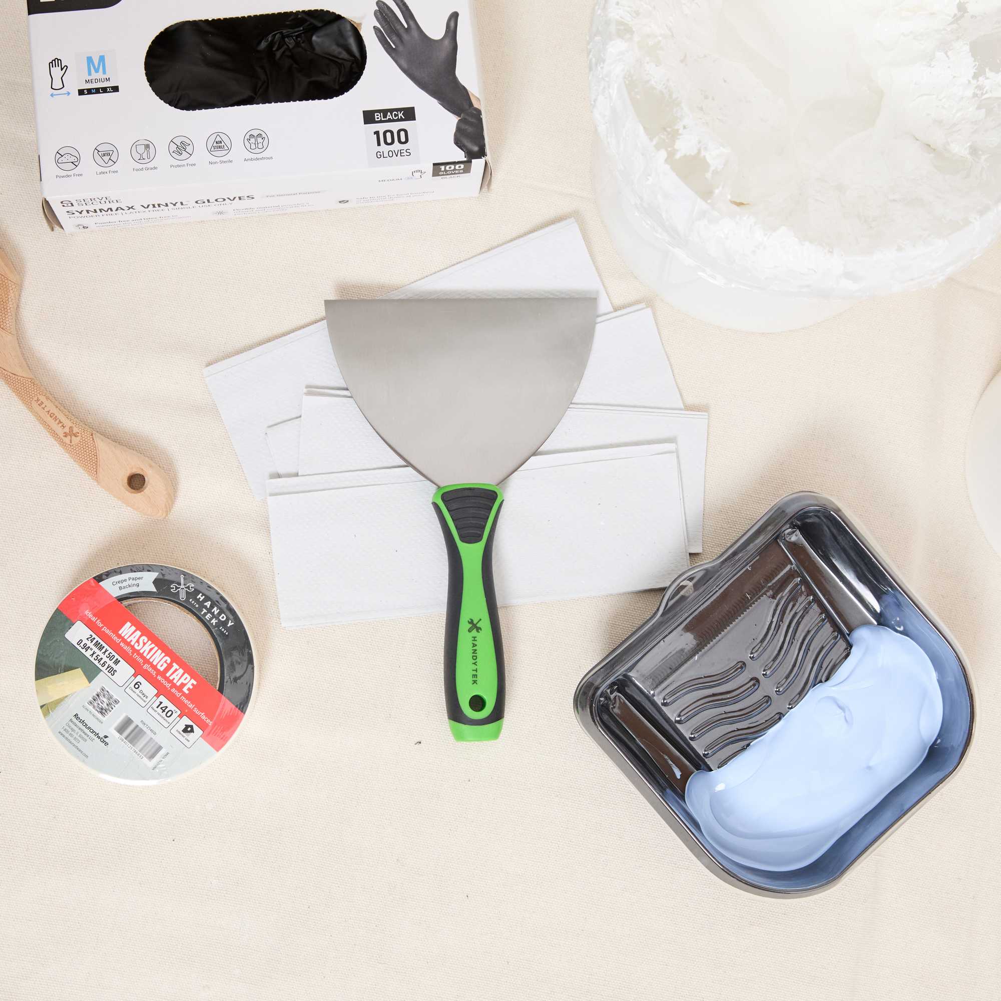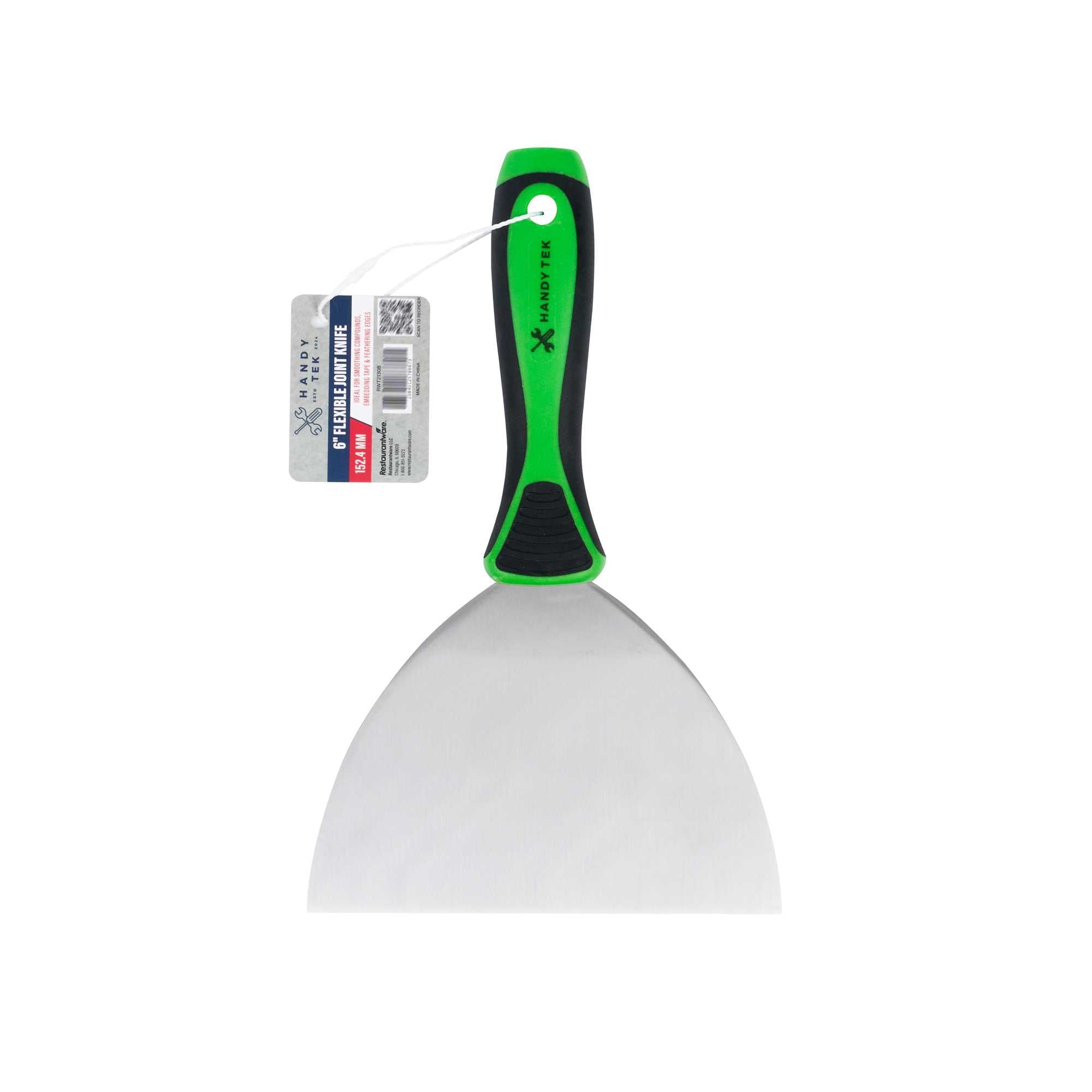 Achieve flawless wall repairs with our Handy Tek Carbon Steel Joint Knife, designed for strength and long-term use. Built to resist bending and wear, this putty knife is excellent for drywall, plaster, and general repair work. The flexible high-carbon steel blade provides durability while allowing controlled, smooth spreading of joint compound. For comfort, this wall repair knife features a soft grip handle that reduces hand fatigue and offers a secure, slip-resistant grip. Plus, the hammer end of this spackling knife is made for quick nail setting, adding versatility on the job site. Measuring 9.45 inches in length by 5.91 inches in width by 1.18 inches in height, this scraper tool is perfect for precise filling and spreading tasks. Sold in a 12 count box.