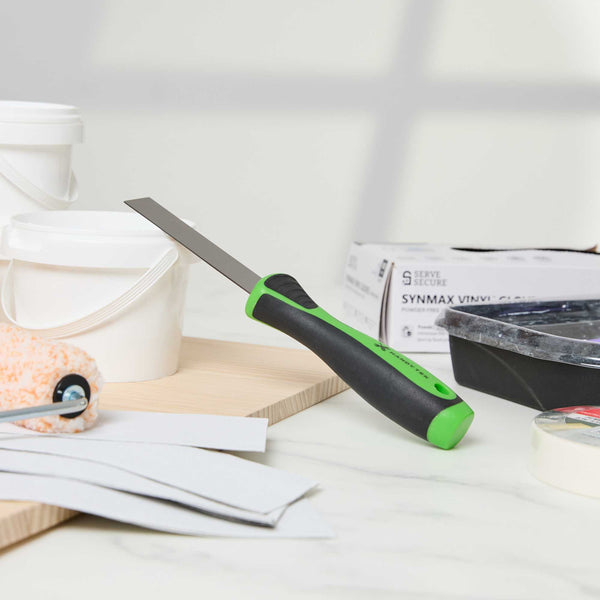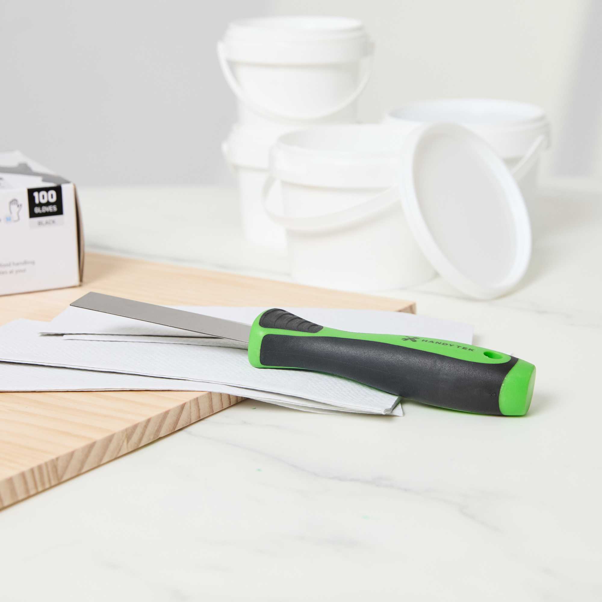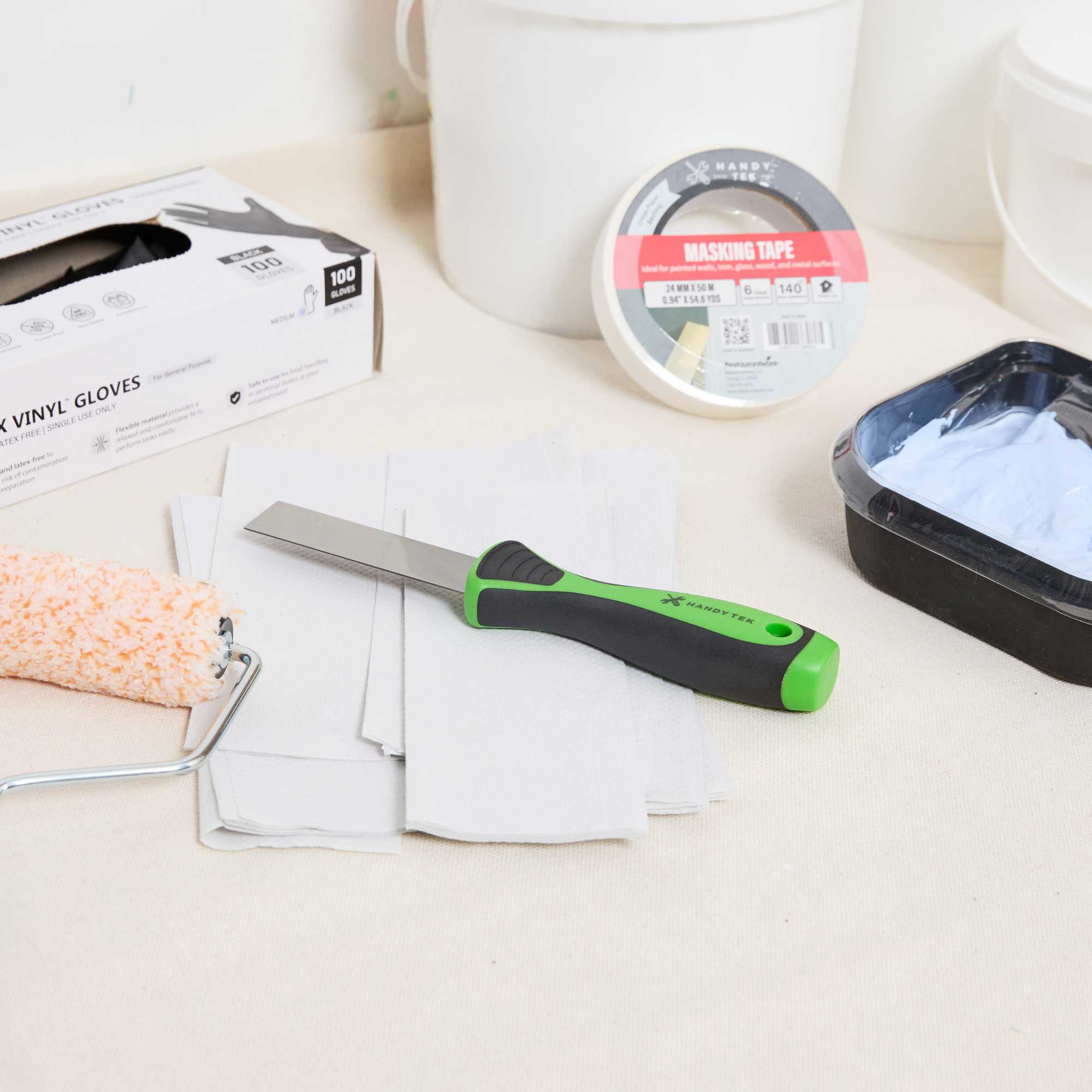 Our Handy Tek Carbon Steel Putty Knife is designed to tackle the toughest repair jobs with ease. Made from premium carbon steel, this putty knife withstands heavy pressure without bending or breaking, ensuring long-lasting durability. This flexible putty knife allows for smooth spreading of putty and fillers, delivering an even finish every time. Featuring a soft grip handle, this spackling knife is ergonomically designed with a textured, soft grip that provides comfort and control, reducing hand fatigue during extended use. This scraper tool boasts a sharpened, tapered blade edge for precision work, making it perfect for seamless applications of putty, spackle, and joint compound. Measuring 8.86 inches in length by 1.58 inches in width by 1.18 inches in height, this wall repair knife is ideal for detailed and intricate repairs. Sold in a 1 count box.