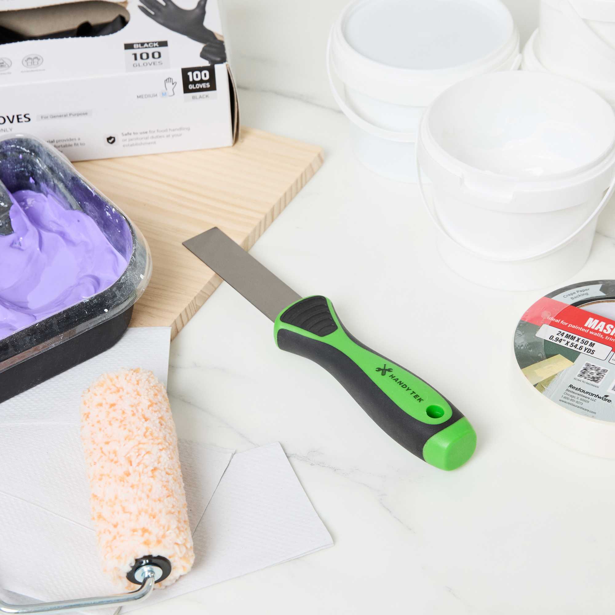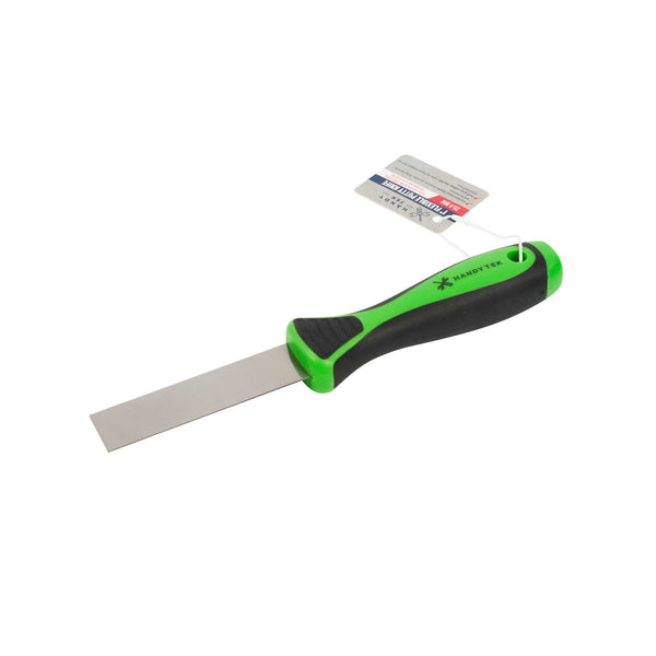 Our Handy Tek Carbon Steel Putty Knife is designed to tackle the toughest repair jobs with ease. Made from premium carbon steel, this putty knife withstands heavy pressure without bending or breaking, ensuring long-lasting durability. This flexible putty knife allows for smooth spreading of putty and fillers, delivering an even finish every time. Featuring a soft grip handle, this spackling knife is ergonomically designed with a textured, soft grip that provides comfort and control, reducing hand fatigue during extended use. This scraper tool boasts a sharpened, tapered blade edge for precision work, making it perfect for seamless applications of putty, spackle, and joint compound. Measuring 8.86 inches in length by 1.58 inches in width by 1.18 inches in height, this wall repair knife is ideal for detailed and intricate repairs. Sold in a 24 count box.