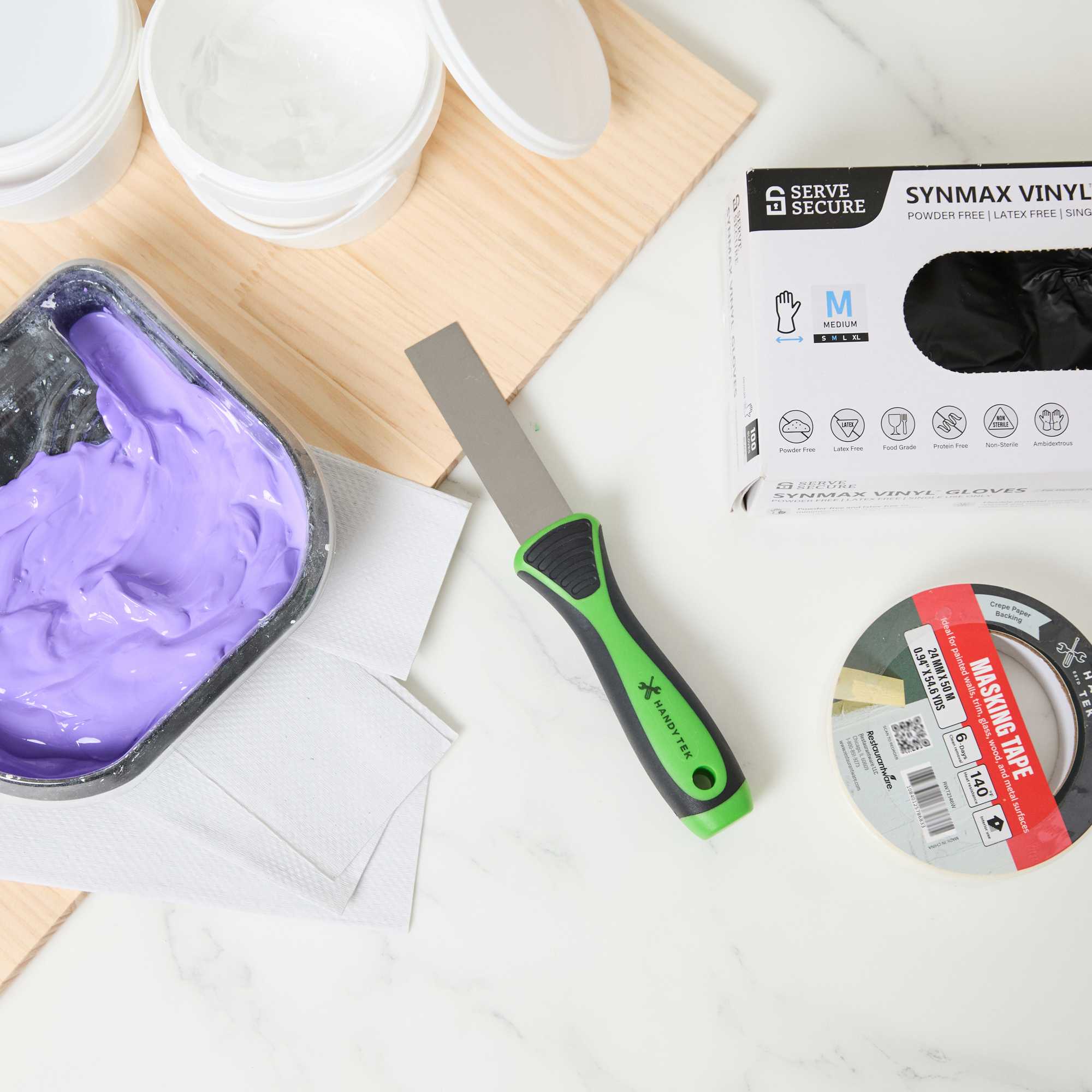 - Flexible blade spreads putty smoothly for an even professional finish