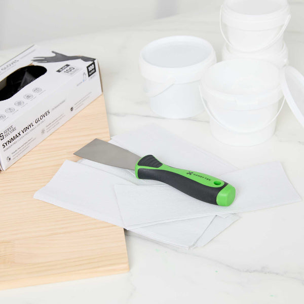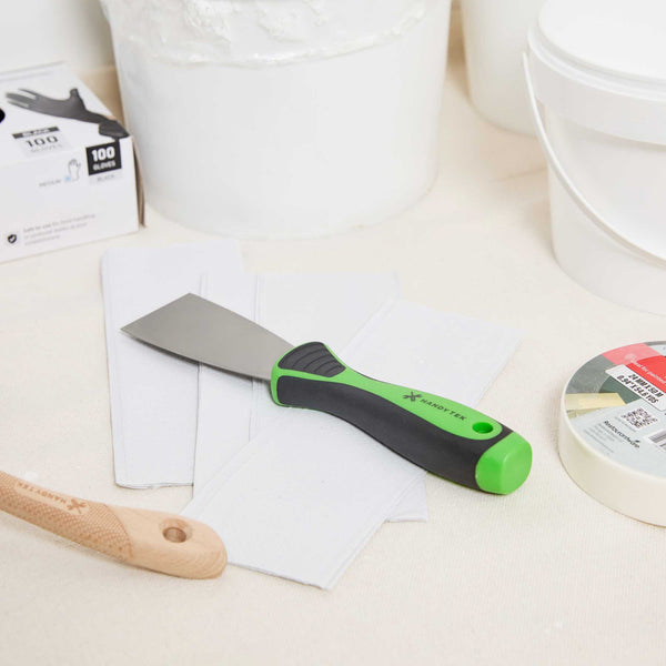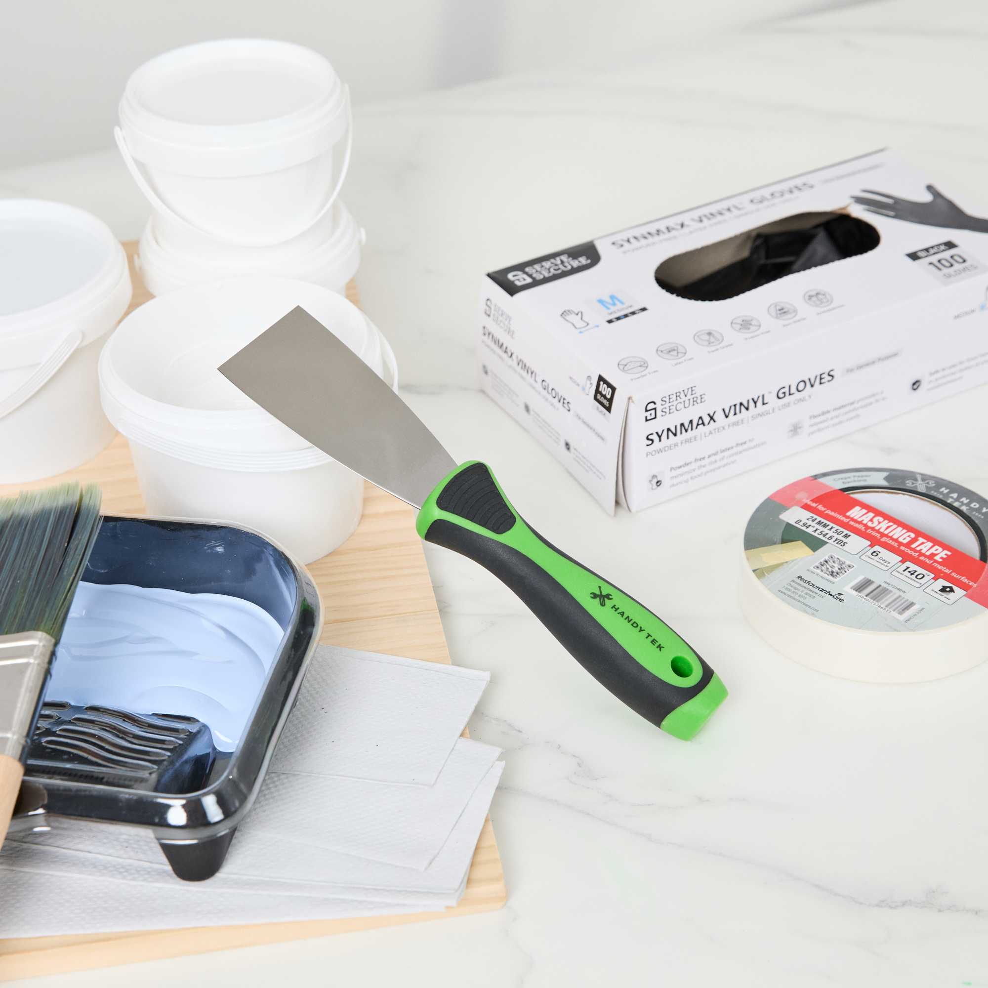 Ensure flawless repairs with our Handy Tek Carbon Steel Putty Knife, ideal for every demanding job. Made from carbon steel, this putty knife is designed to withstand heavy pressure without bending or breaking, ensuring long-lasting durability for all your repair needs. This flexible blade allows smooth spreading of putty and fillers, ensuring an even finish on any surface. With a soft grip handle, this spackling knife provides ergonomic comfort and control, reducing hand fatigue during extended use. The sharpened, tapered blade edge of this wall repair knife enables precision work, allowing for smooth application of putty, spackle, and joint compound, making it the best choice for seamless wall repairs. Measuring 9.25 inches in length by 1.97 inches in width by 1.18 inches in height, this filling blade is perfectly sized for a variety of tasks. Sold in a 1 count box.