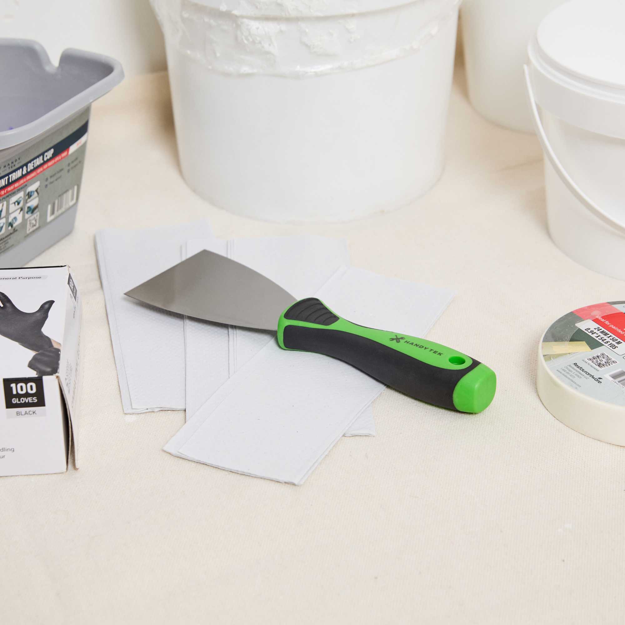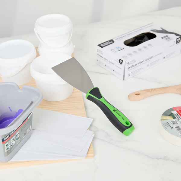 Enhance your repair toolkit with our Handy Tek Carbon Steel Putty Knife, expertly crafted for the toughest jobs. This putty knife is made from carbon steel, designed to withstand heavy pressure without bending or breaking, ensuring long-lasting durability for demanding repair tasks. With a flexible blade, this spackling knife allows smooth spreading of putty and fillers, achieving an even, expert finish every time. This scraper tool features a soft grip handle that provides comfort and control, ergonomically designed to reduce hand fatigue during extended use. Precision matters, and this wall repair knife boasts a tapered blade edge, ideal for seamless application of putty, spackle, and joint compounds. Measuring 9.45 inches in length by 2.95 inches in width by 1.18 inches in height, this filling blade is compact and efficient for any repair job. Sold in a 1 count box.