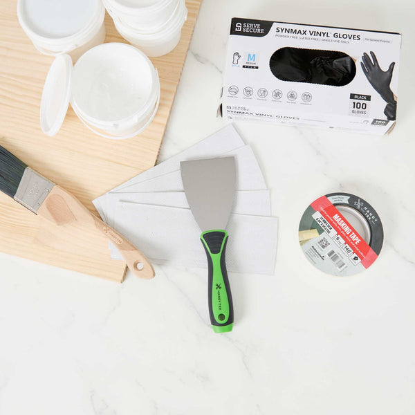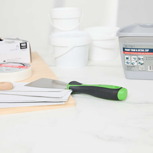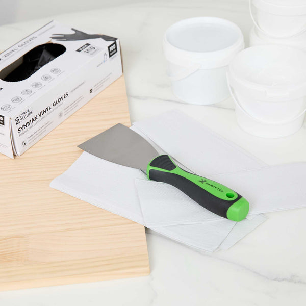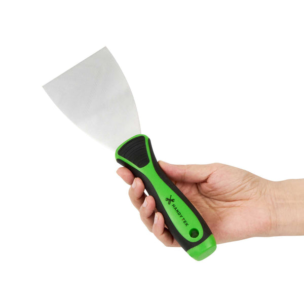 Enhance your repair toolkit with our Handy Tek Carbon Steel Putty Knife, expertly crafted for the toughest jobs. This putty knife is made from carbon steel, designed to withstand heavy pressure without bending or breaking, ensuring long-lasting durability for demanding repair tasks. With a flexible blade, this spackling knife allows smooth spreading of putty and fillers, achieving an even, expert finish every time. This scraper tool features a soft grip handle that provides comfort and control, ergonomically designed to reduce hand fatigue during extended use. Precision matters, and this wall repair knife boasts a tapered blade edge, ideal for seamless application of putty, spackle, and joint compounds. Measuring 9.45 inches in length by 2.95 inches in width by 1.18 inches in height, this filling blade is compact and efficient for any repair job. Sold in a 12 count box.