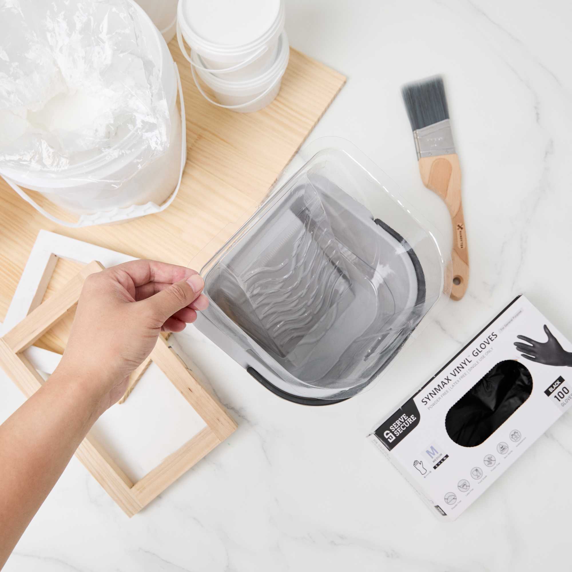 Ensure a tidy painting experience with our Handy Tek Clear Plastic Paint Pail Liners. These pail inserts are specifically designed to fit securely inside the Handy Tek Paint Bucket (SKU: RWT2135GR), making painting projects cleaner and more efficient. With these disposable pail liners, cleanup is a breeze, just remove and discard them after use to eliminate scrubbing. Made from tear-resistant material, these paint pail liners are durable enough to hold paint without leaking or tearing, ensuring a smooth painting process. Use these liners during apartment turnovers or large property repaints to stay efficient. Each of these paint can liners boasts a capacity of 2.35 quarts and measures 7.64 inches in length by 6.89 inches in width by 6.54 inches in height. Sold in a 120 count box.