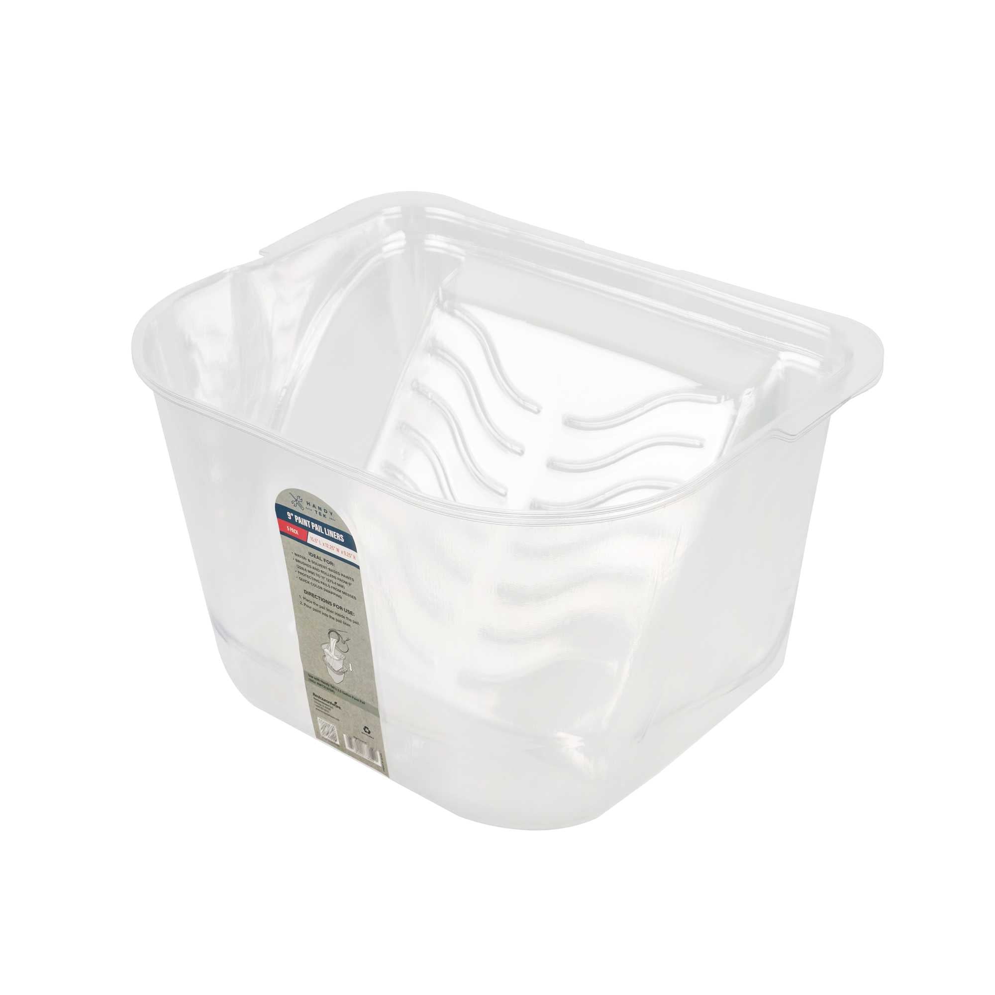 Our Handy Tek Clear Plastic Paint Pail Liners are the ultimate solution for mess-less painting, ensuring a seamless and efficient experience. These pail inserts fit perfectly inside the Handy Tek Paint Bucket (SKU: RWT2137GR), providing a secure fit that minimizes mess and maximizes convenience. Designed as disposable paint pail liners, they allow for quick and easy cleanup, eliminating the need for scrubbing after each painting session. Made from tear-resistant material, these bucket liners hold paint securely without leaking or tearing, making painting tasks smooth. Great for large-scale paint jobs, multi-room renovations, or commercial applications, these liners help maintain workflow without interruption. With a generous capacity of 14.5 quarts, these paint can liners measure 15.51 inches in length by 12.28 inches in width by 9.13 inches in height for a snug fit inside the bucket. Sold in a 120 count box.