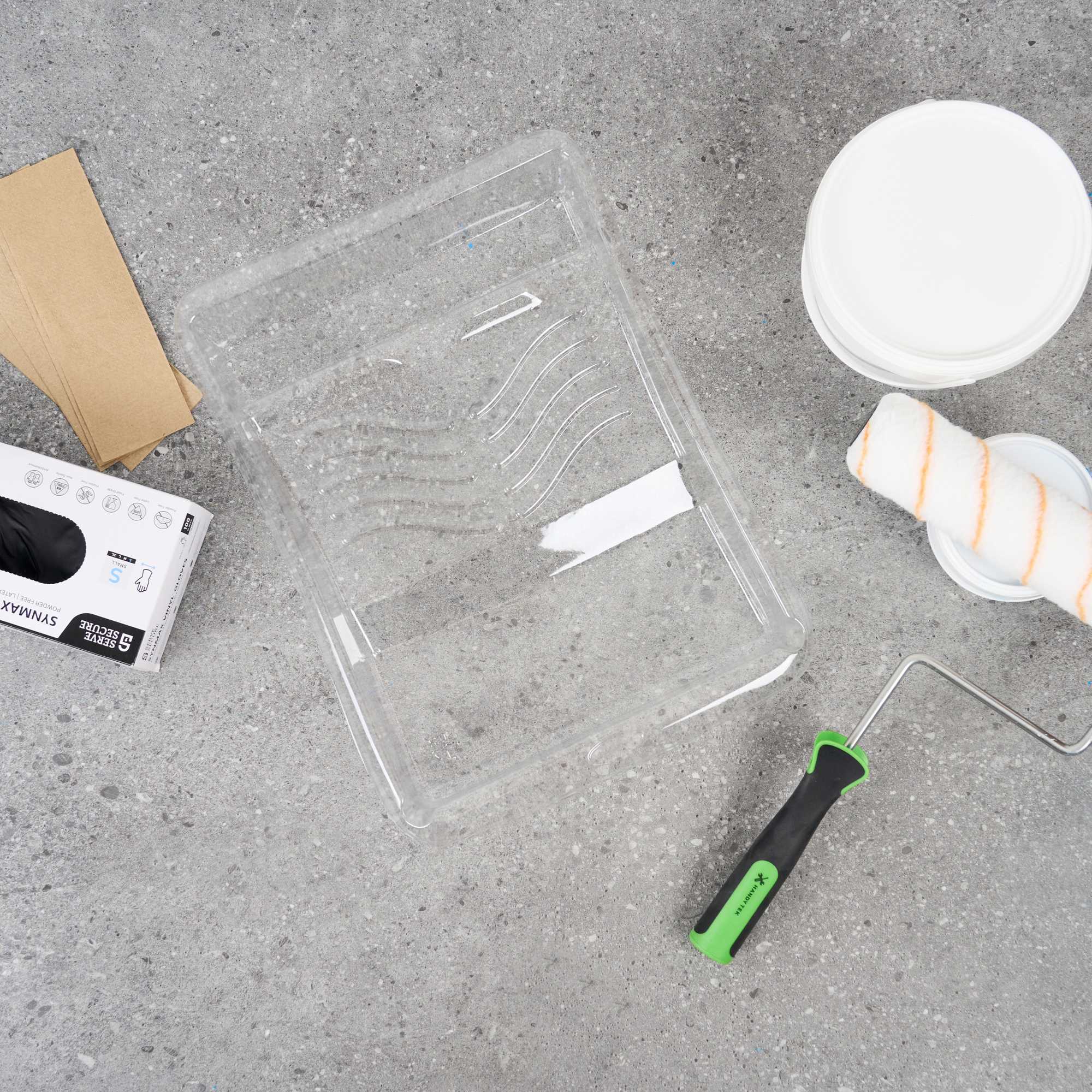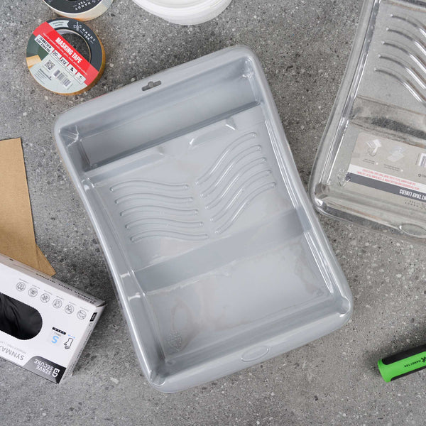 Make painting projects easier, cleaner, and more efficient with our Handy Tek Clear Plastic Paint Tray Liners. These painting tray inserts are designed to fit snugly into our Handy Tek paint tray (SKU: RWT2133GR), preventing slipping or shifting during use. Plastic tray liners like these are great for small-area applications such as trim, edges, and touch-ups. Made from tear-resistant material, these paint tray liners securely hold paint without leaking or tearing, even during heavy use. For added convenience, these paint liners are disposable, making cleanup a breeze and reducing mess on every project. Each paint roller tray liner has a capacity of 6.28 quarts and measures 17.8 inches in length by 12.99 inches in width by 2.95 inches in height. Sold in a 5 count box.