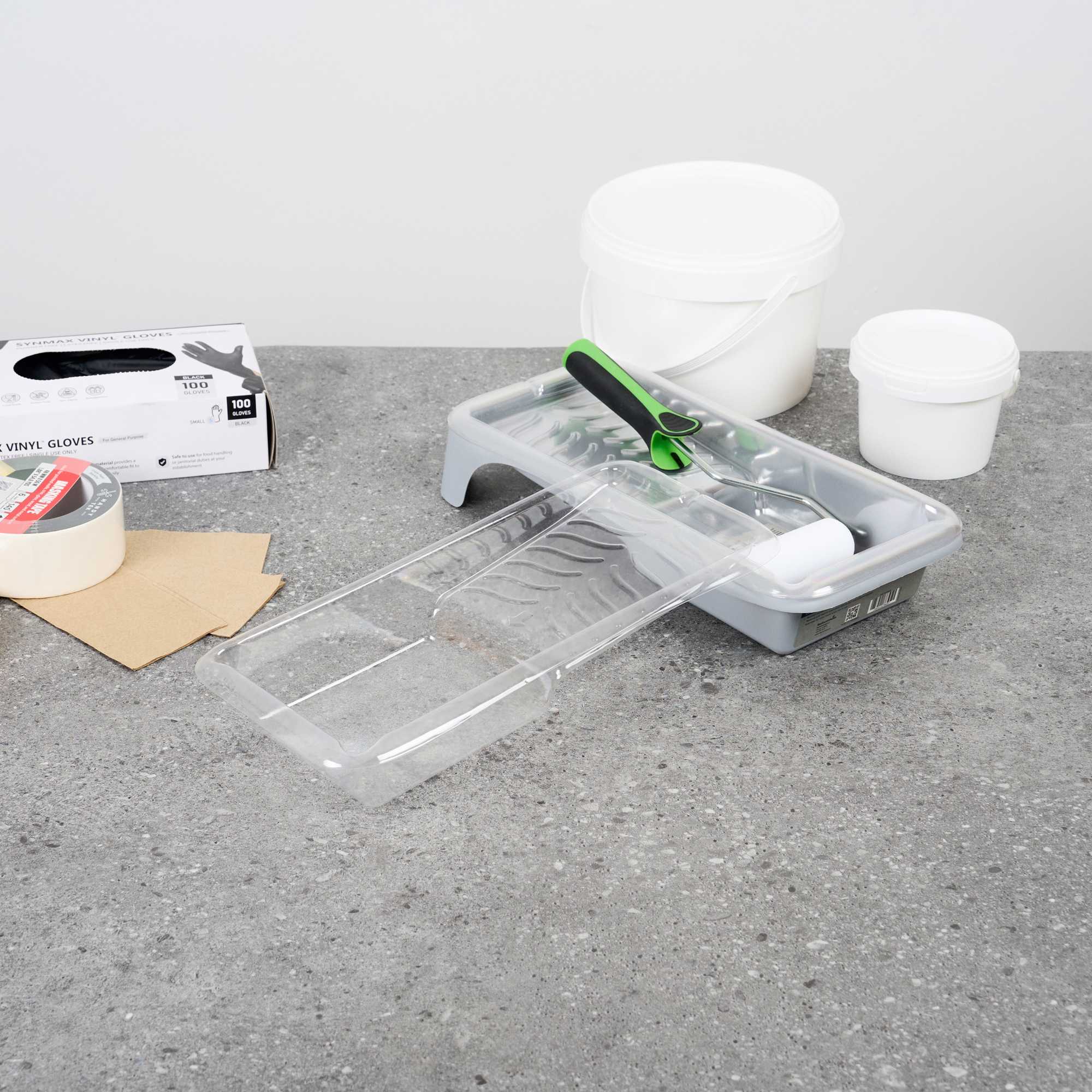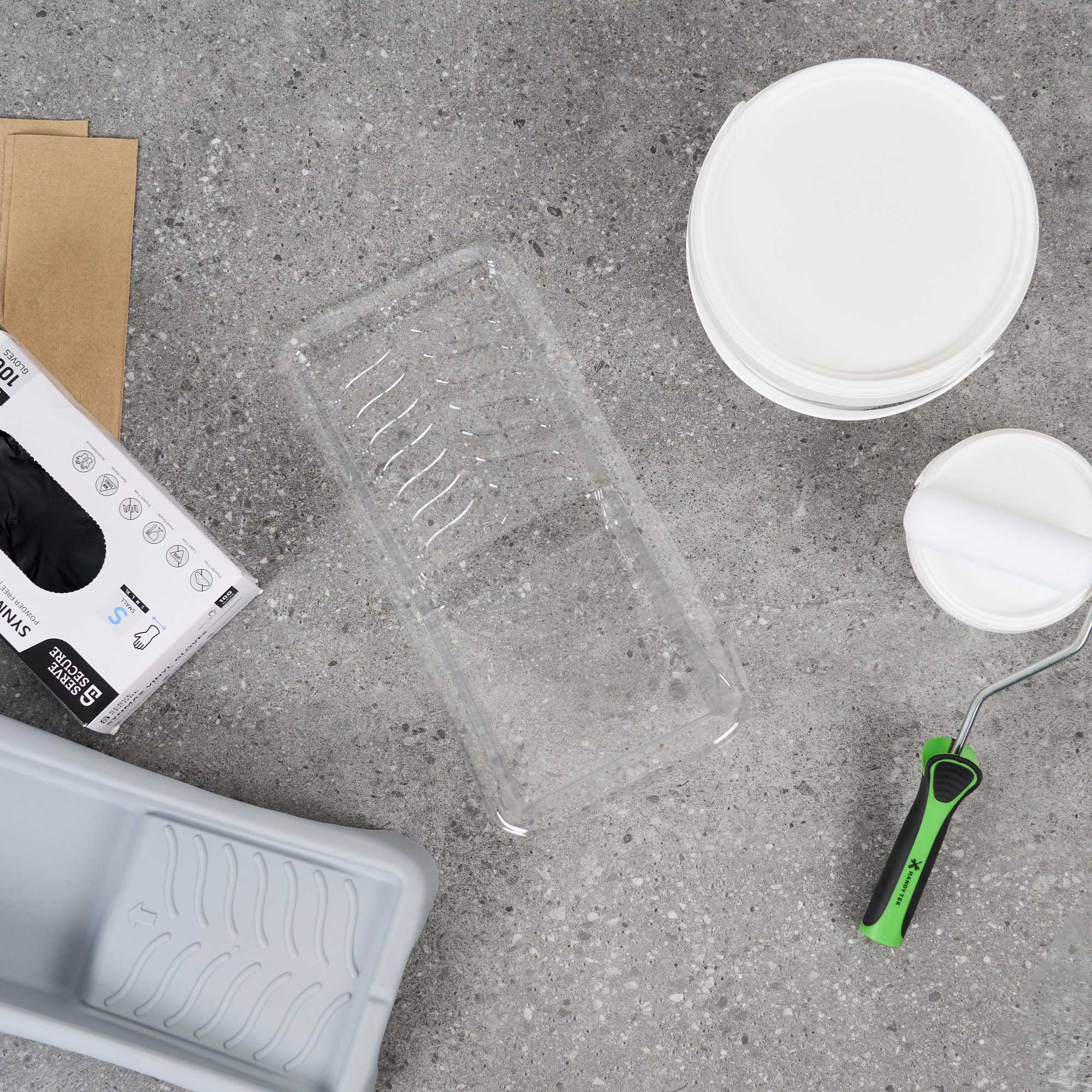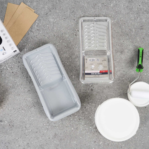 Ensure a flawless painting experience with our Handy Tek Clear Plastic Paint Tray Liners. These painting tray inserts make painting easier, cleaner, and more efficient by fitting securely into the Handy Tek paint tray (SKU: RWT2132GR), stopping slipping or shifting during use. These plastic paint trays are ideal for multi-room renovations where consistent performance is needed across spaces. Crafted from tear-resistant material, these paint tray liners hold paint securely without leaking or tearing, even under heavy use. Cleanup is a breeze with these disposable paint liners, simply remove and toss them after use to save time and reduce mess. Each paint roller tray liner has a capacity of 1.54 quarts, and measures 13.78 inches in length by 6.69 inches in width by 2.36 inches in height. Sold in a 60 count box.