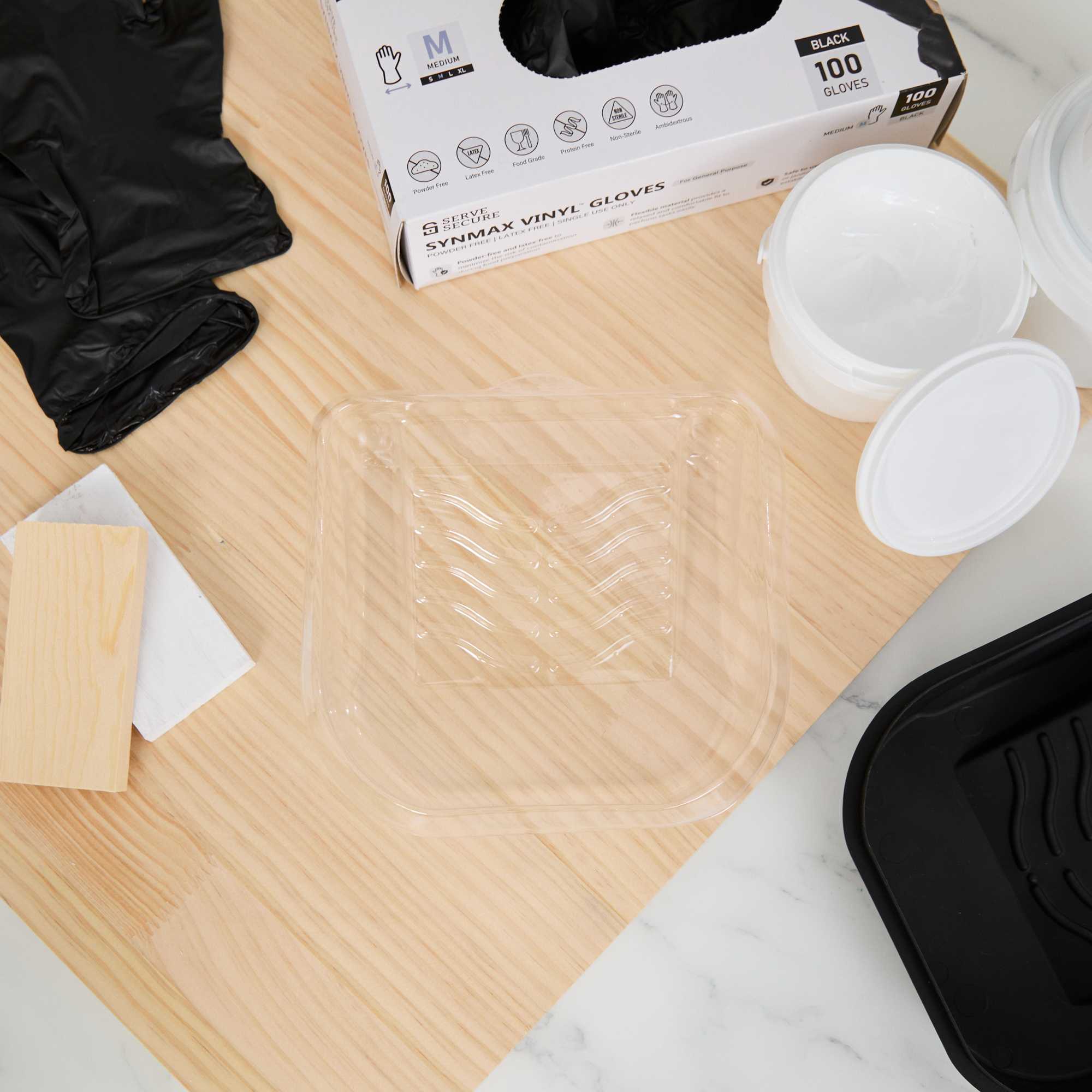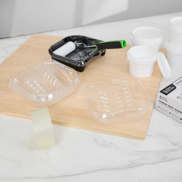 Elevate your painting projects with our Handy Tek Clear Plastic Paint Tray Liners, designed to make painting easier, cleaner, and more efficient. These painting tray inserts secure a snug fit into our Handy Tek paint tray (SKU: RWT2134B), ensuring no slipping or shifting during use. These liners are great for extended residential jobs or light commercial interior work. Crafted from tear-resistant material, these paint tray liners hold paint securely without leaking or tearing, even during heavy usage. Simply remove and dispose of these paint liners for easy cleanup, saving you time and reducing mess on every project. Measuring 6.5 inches in length by 6.1 inches in width by 1.77 inches in height, these paint roller tray liners provide ample space with a capacity of 0.87 quart. Sold in a 5 count box.