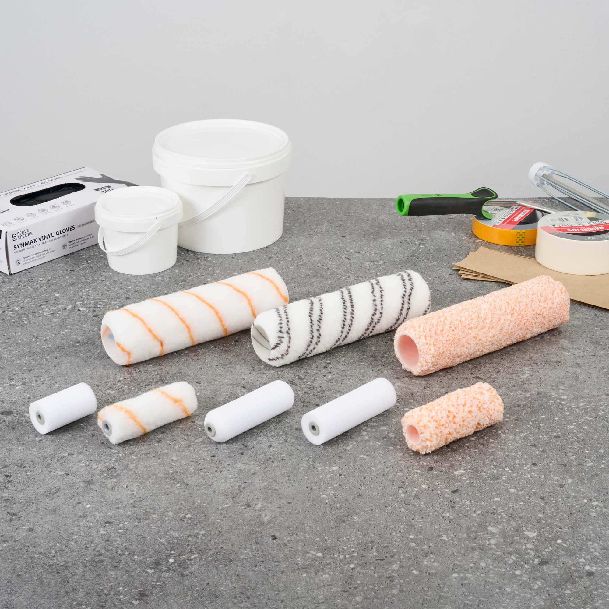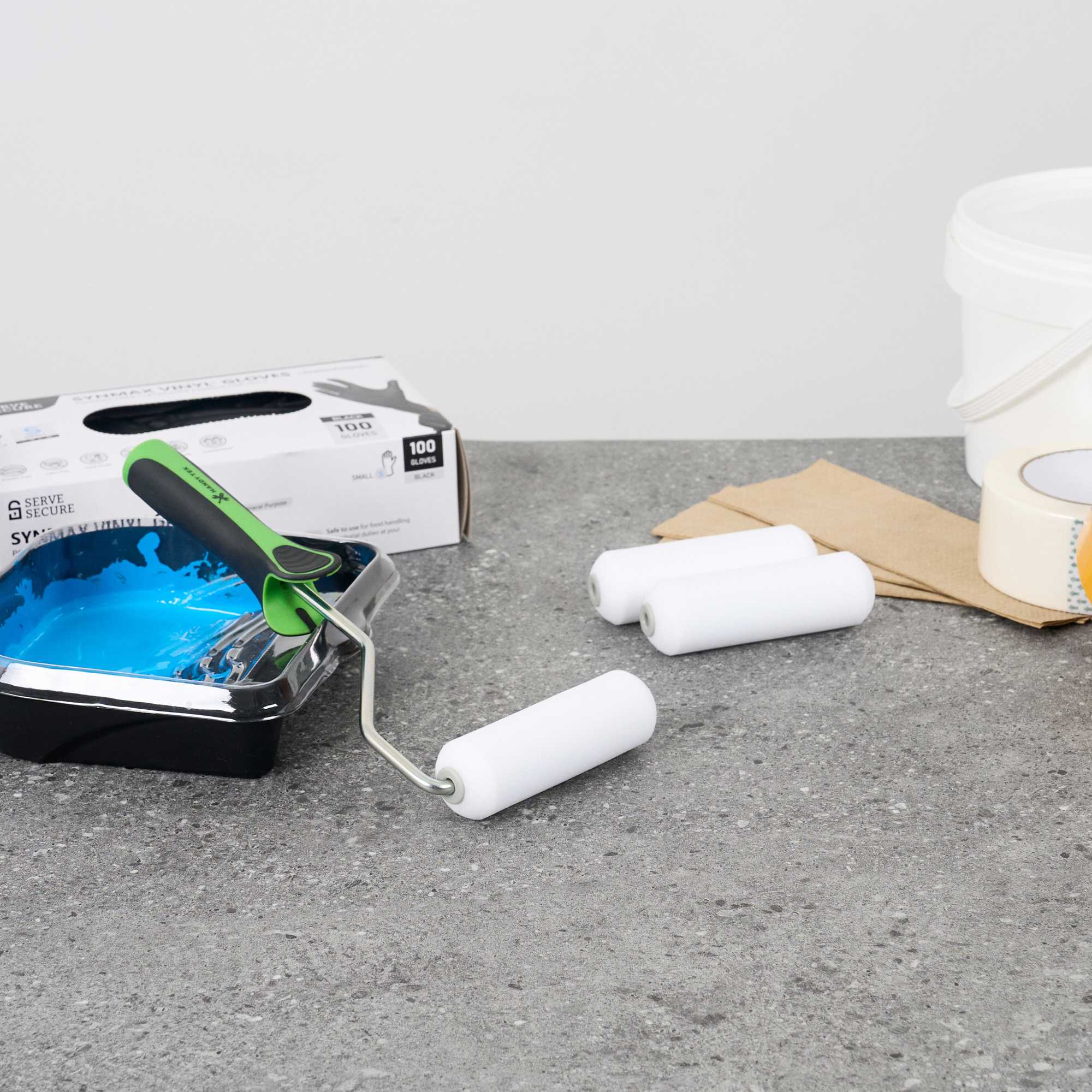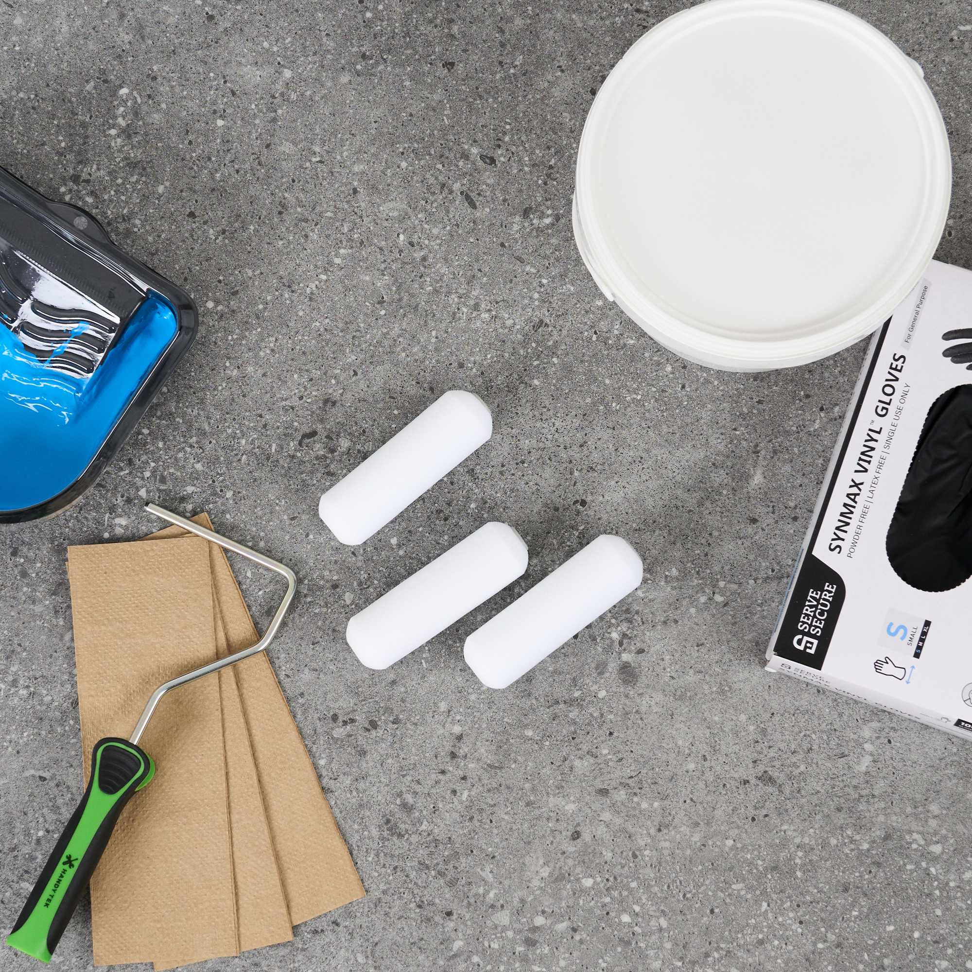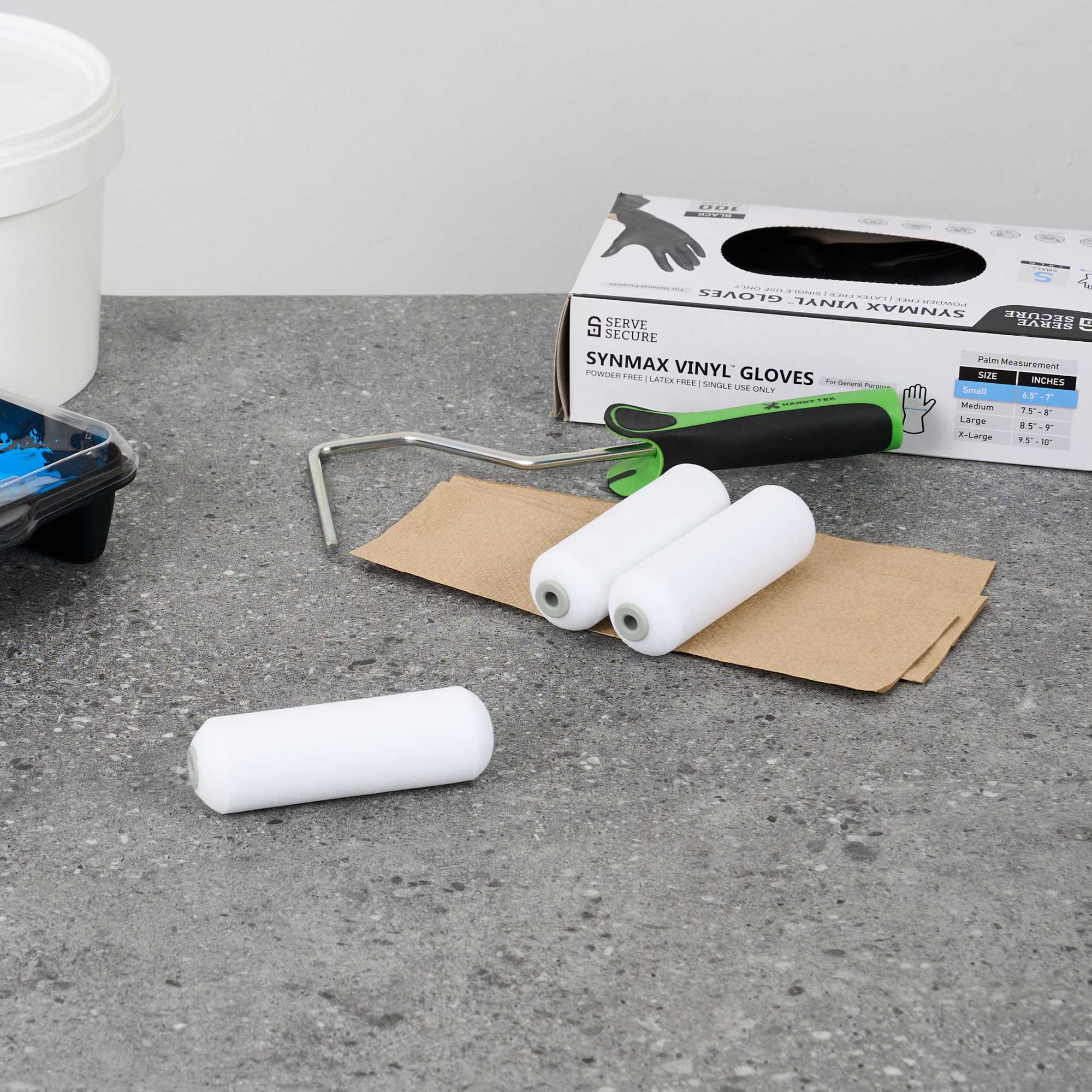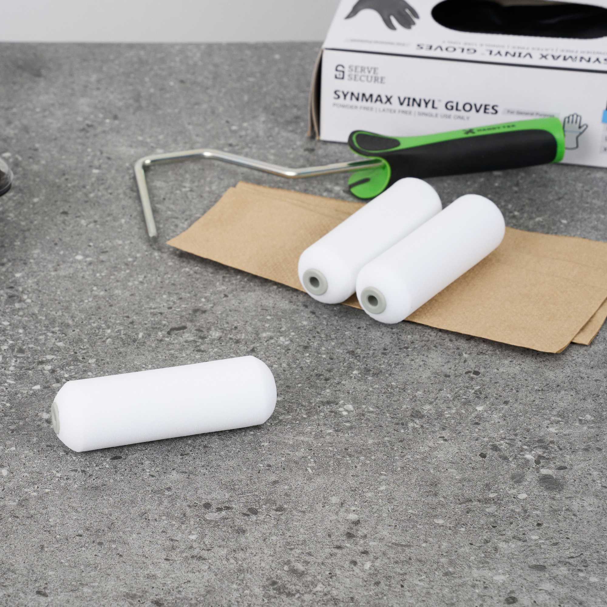 Achieve a smooth, even finish on any surface using our Handy Tek Foam Mini Roller Covers. High-density foam roller covers deliver a spray-like finish with minimal bubbles, ideal for high-gloss and semi-gloss paints. A lint-free, shed-resistant design ensures each foam roller cover applies cleanly without imperfections. Thermo-bonded design helps the paint roller cover maintain shape and consistent performance. Pair the foam paint roller cover with our roller frame (SKU: RWT2125B) for quick and secure setup. Absorbent roller sheaths hold more paint to reduce streaks and cut down on touch-ups. Solvent-resistant wall paint roller covers work with both oil- and water-based paints for added versatility. Perfect for trims, frames, doors, and walls, each foam applicator cover offers reliable precision. Measuring 4.33 inches in length by 1.34 inches in width by 1.34 inches in height, each paint roller cover is compact and efficient. Sold in a 10 count box.