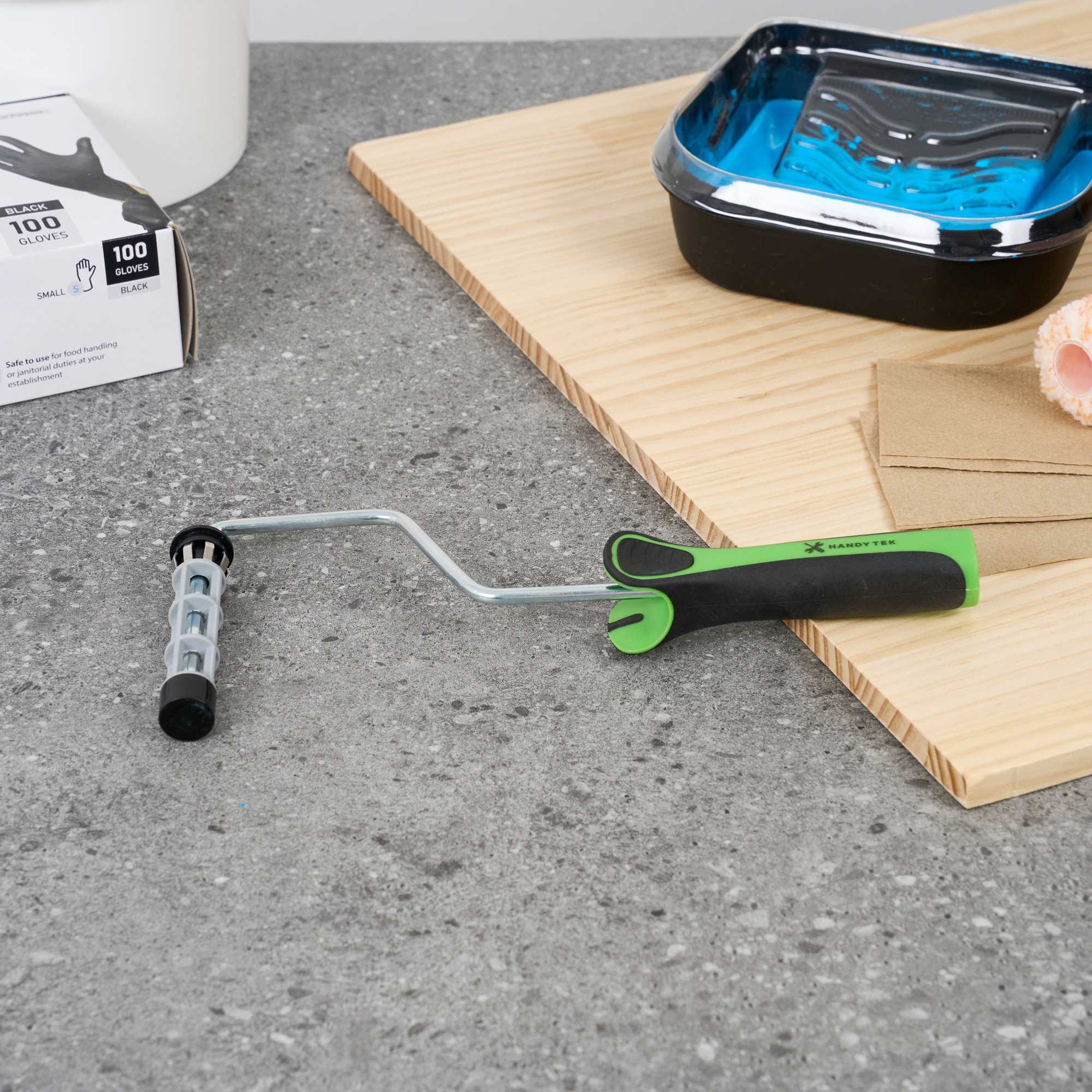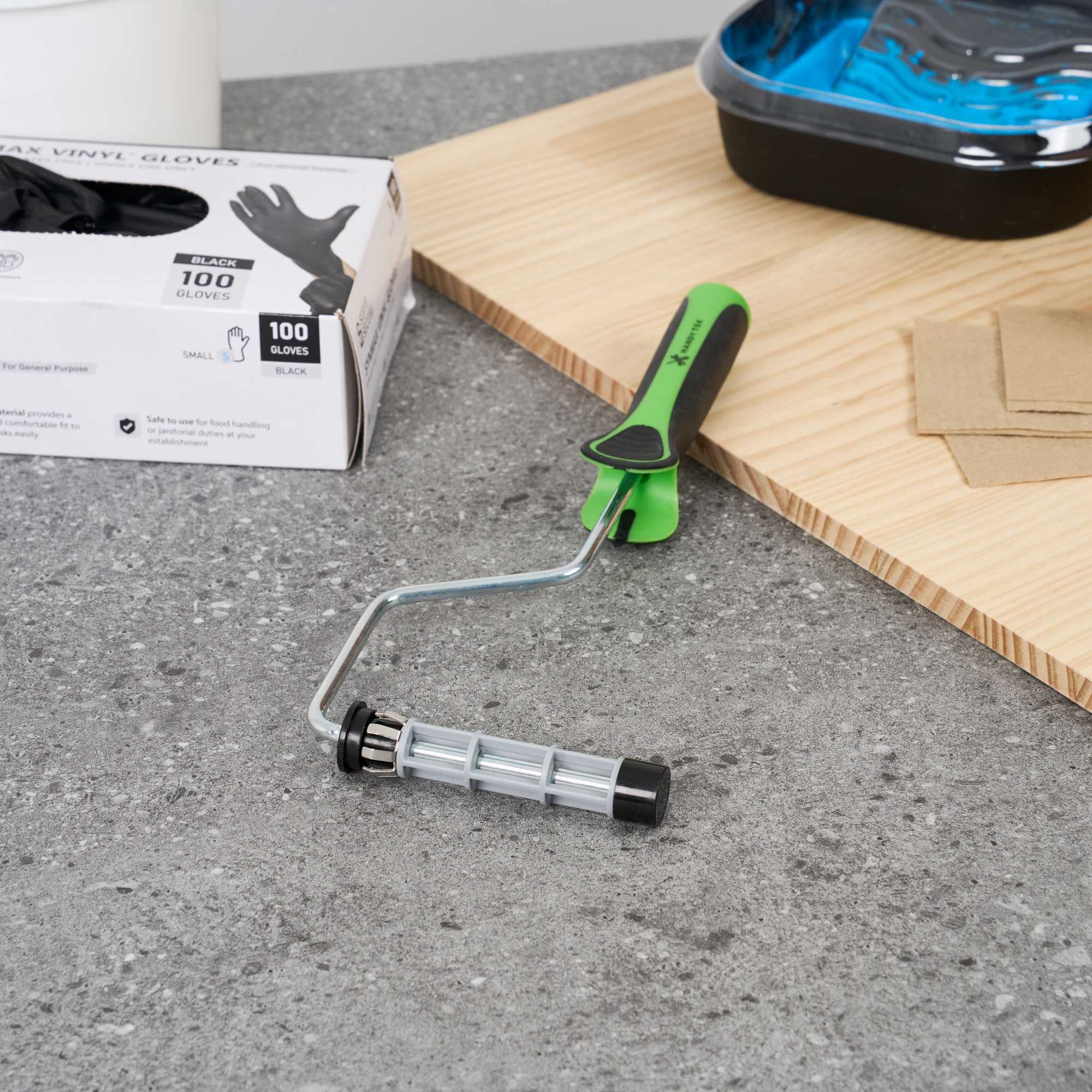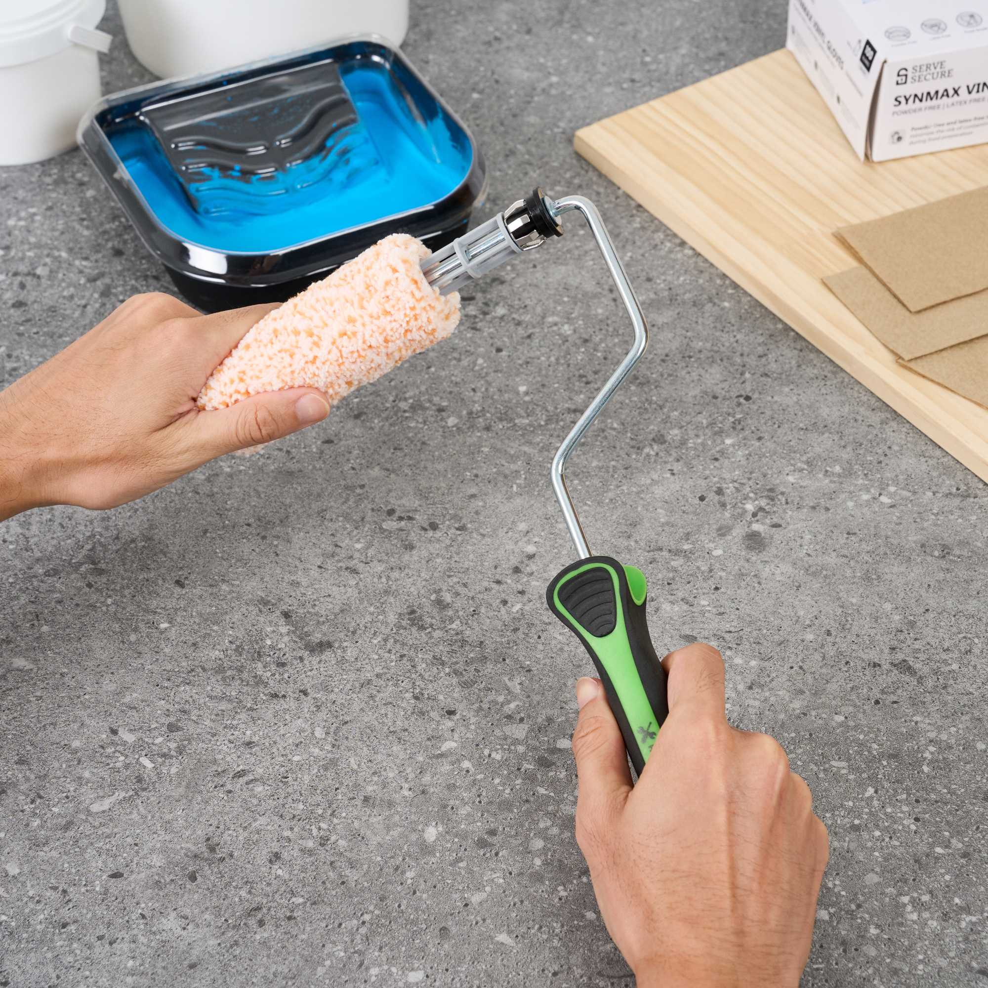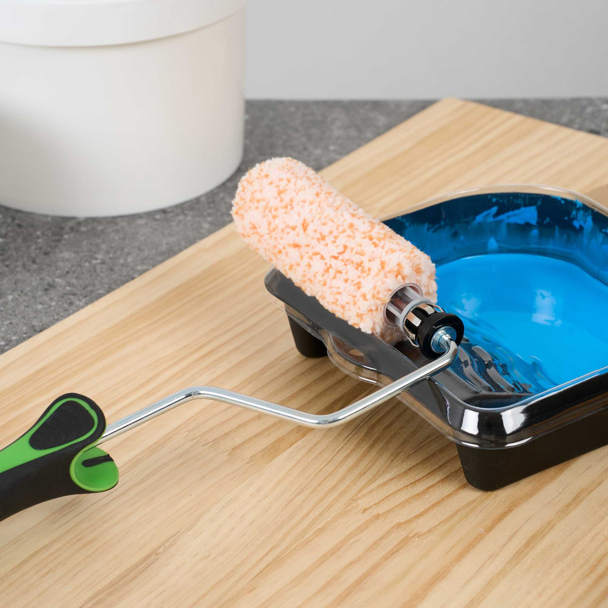 - Plastic cage keeps rollers steady for smooth and consistent application