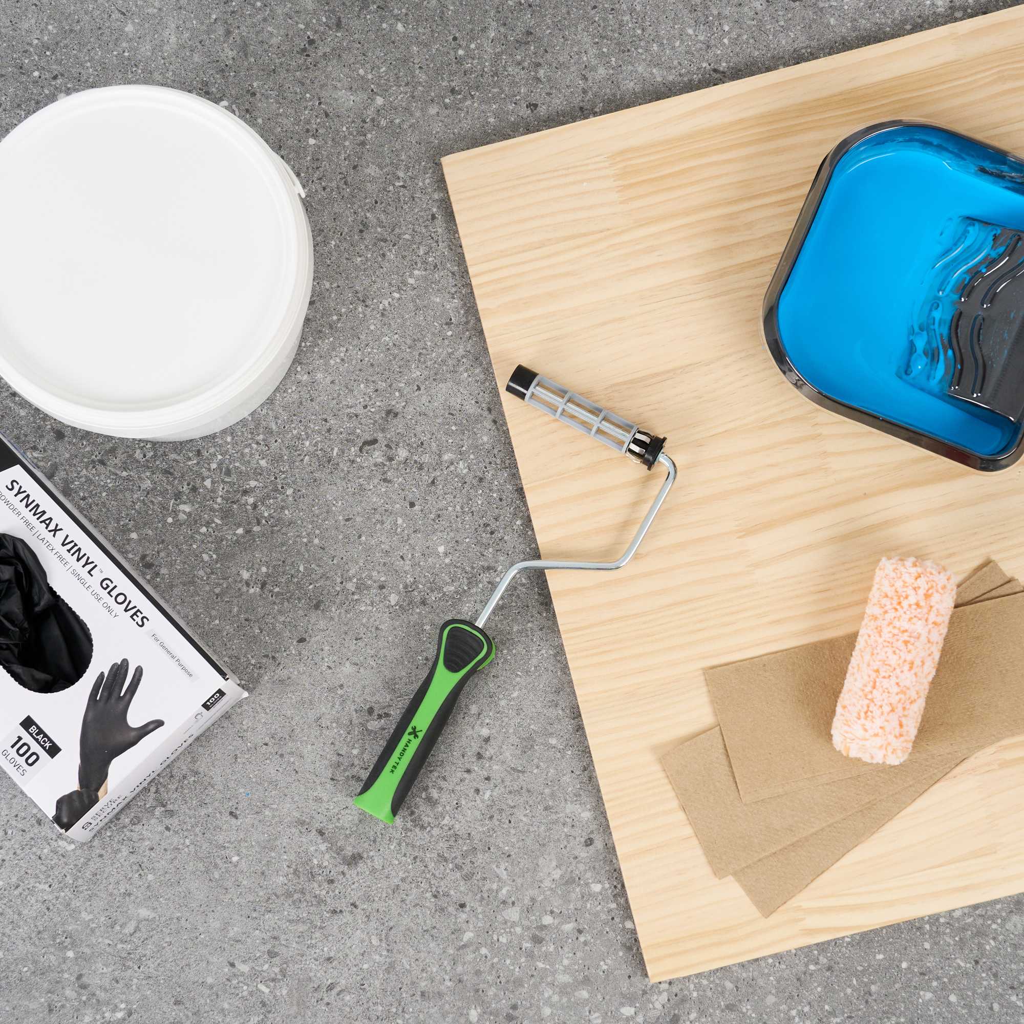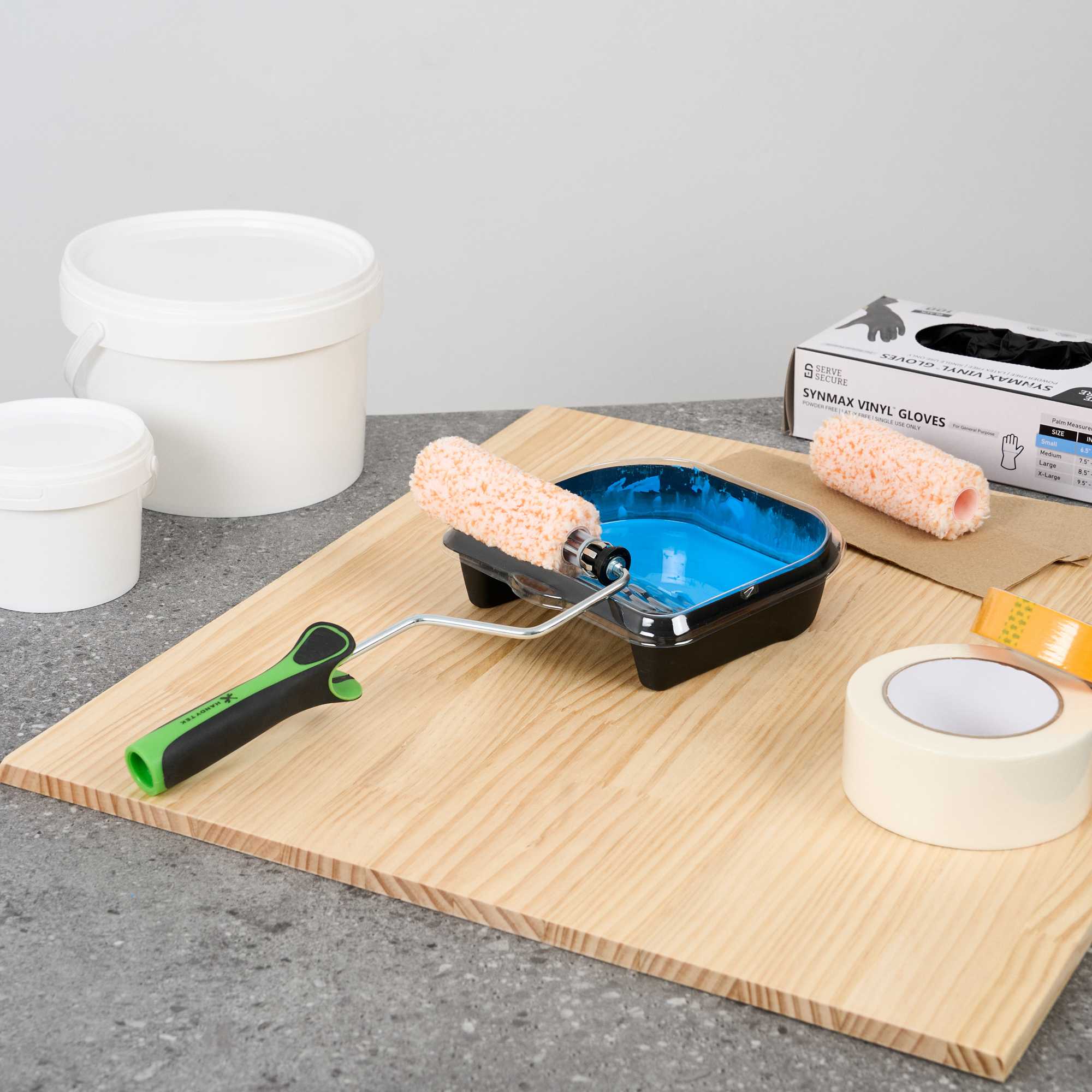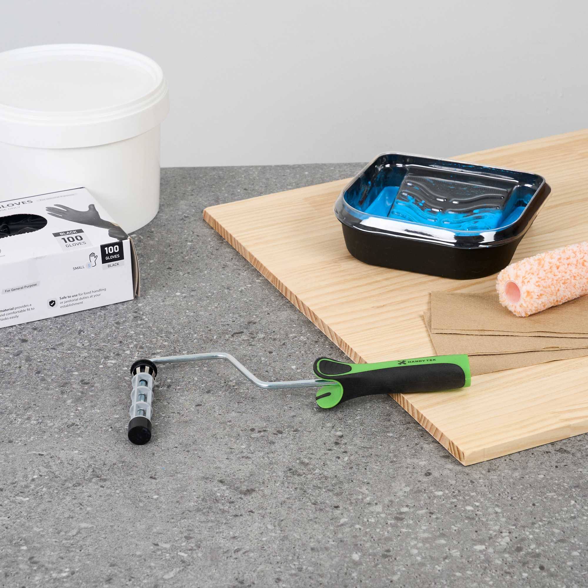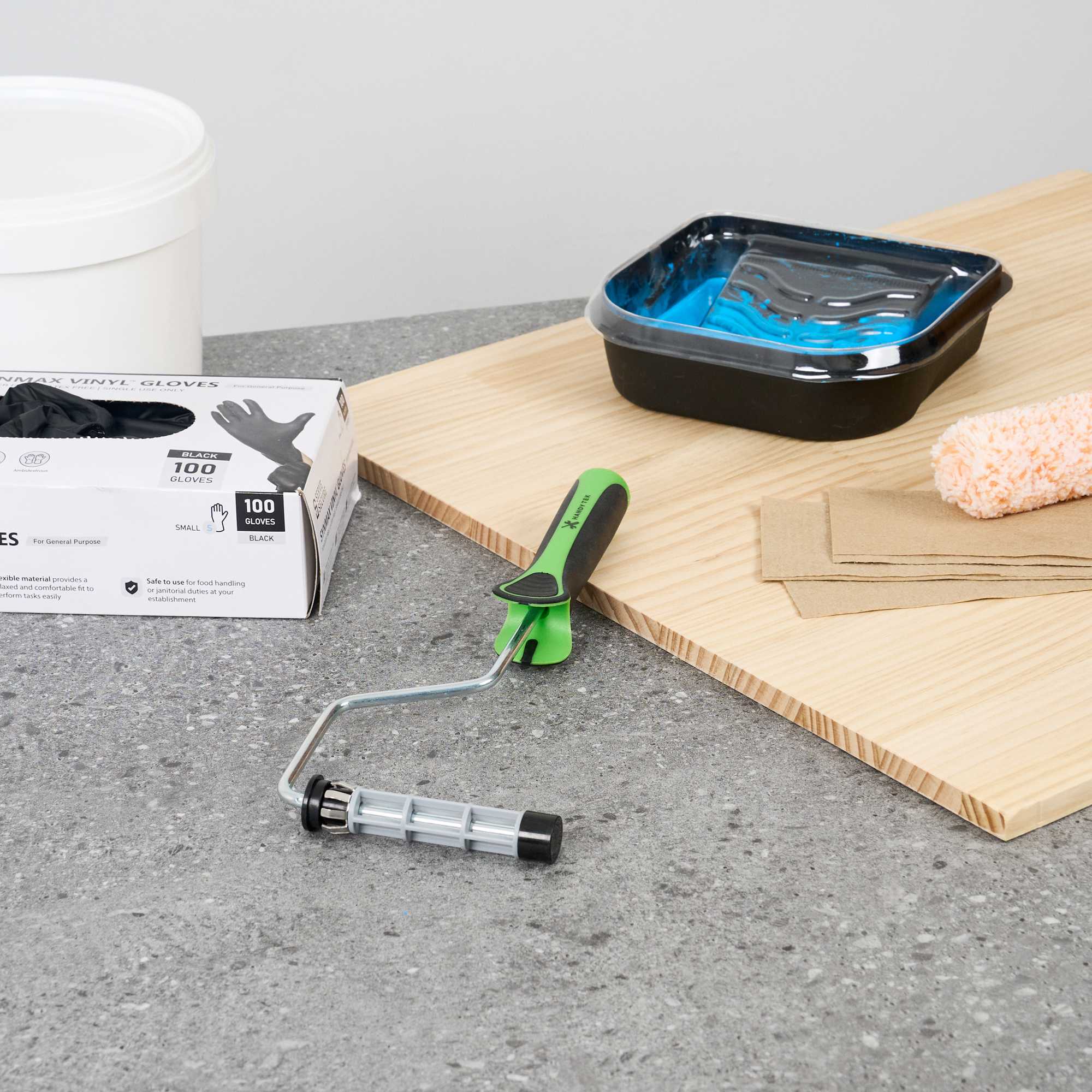- Plastic cage keeps rollers steady for smooth and consistent application