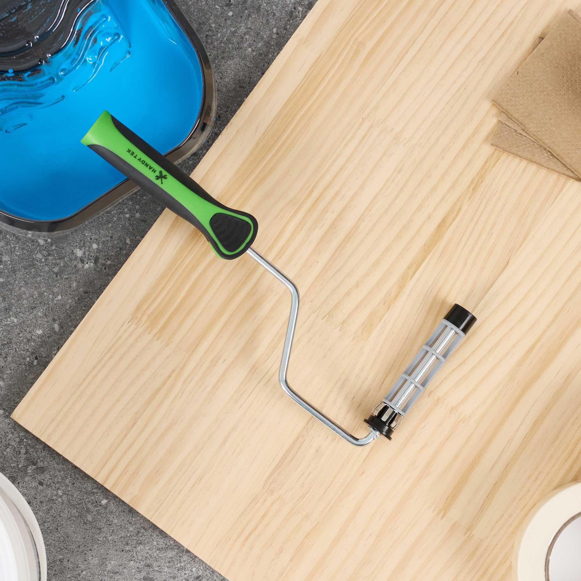Transform your painting experience with our Handy Tek Jumbo Mini Roller Frame. This durable roller frame features a plastic cage that securely holds roller covers in place, ensuring stability and smooth rotation for flawless paint application. Pair this handy coating tool frame with 4-inch roller covers featuring a 0.75-inch core diameter for controlled application. Its threaded end securely attaches to a compatible extension pole, enabling effortless coverage across walls, ceilings, and hard-to-reach areas. The metal flanges on this paint handle frame reduce friction and enhance rolling efficiency, allowing the roller to glide smoothly across surfaces. Designed with an ergonomic rubber grip, this painting roller frame offers a soft, slip-resistant handle and a textured thumb area, providing comfort and control while minimizing hand fatigue during extended use. This roller holder measures 10.63 inches in length by 4.53 inches in width by 1.26 inches in height. Sold in a 12 count box.