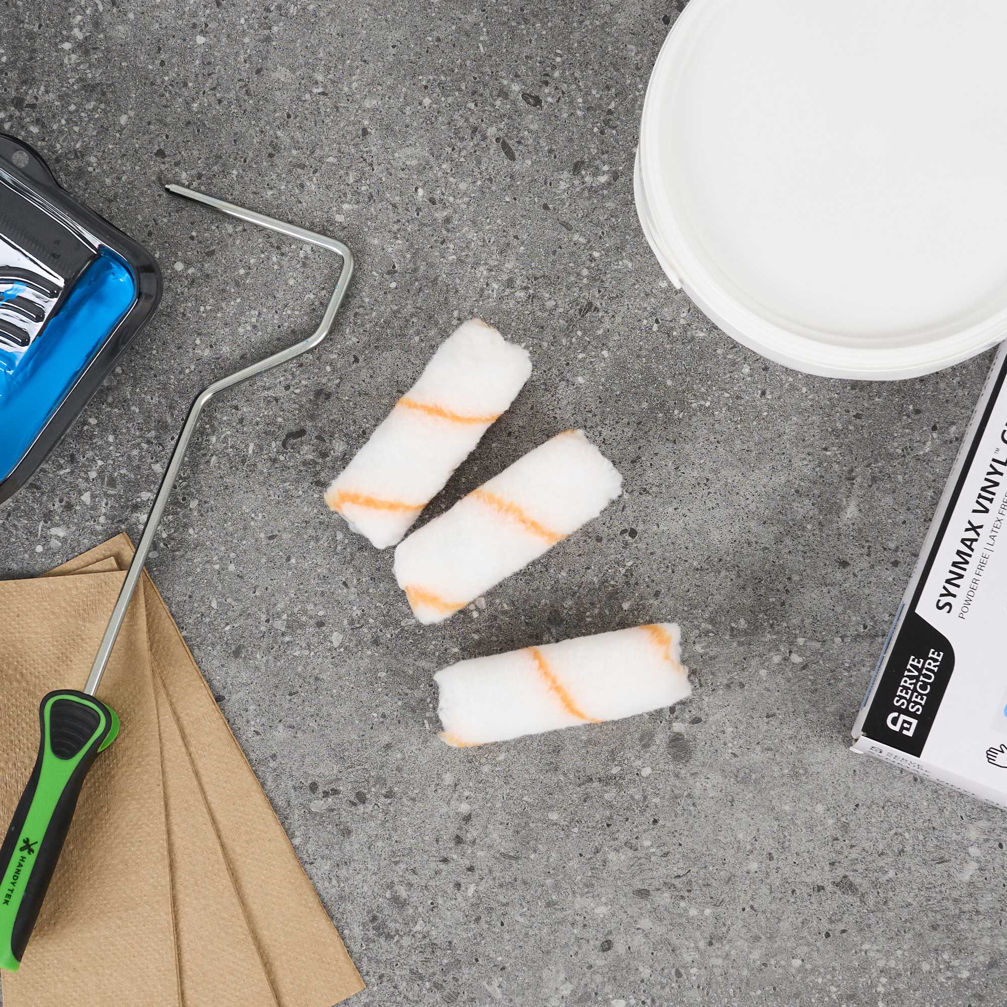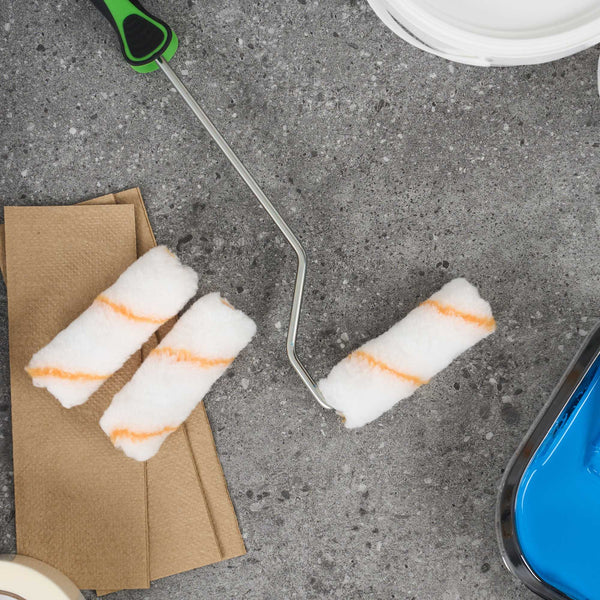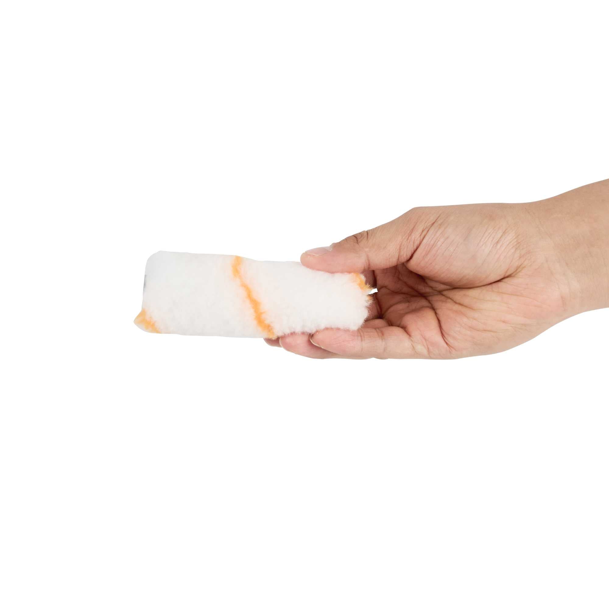 Transform every stroke with our Handy Tek Knit Roller Covers. The shed-resistant design of these paint roller covers prevents fiber loss, while their lint-free surface ensures a clean and polished application. Carefully engineered for compatibility, these knit roller covers pair with the roller frame (SKU: RWT2123B) for easy interior use. Crafted with absorbent knit fabric and thermo-bonded technology, these roller sheaths hold more paint and retain shape for consistent results. Featuring a 1/2 inch nap, these wall paint roller covers are ideal for smooth to semi-smooth surfaces like ceilings and drywall. Designed for interiors, these paint applicator covers are compatible with all paint types for broad usability. Their compact size makes these roller covers perfect for painting corners and edges with precision. Measuring 4.02 inches in length by 1.38 inches in width by 1.38 inches in height, these roller covers suit a variety of detailed tasks. Sold in a 120 count box.