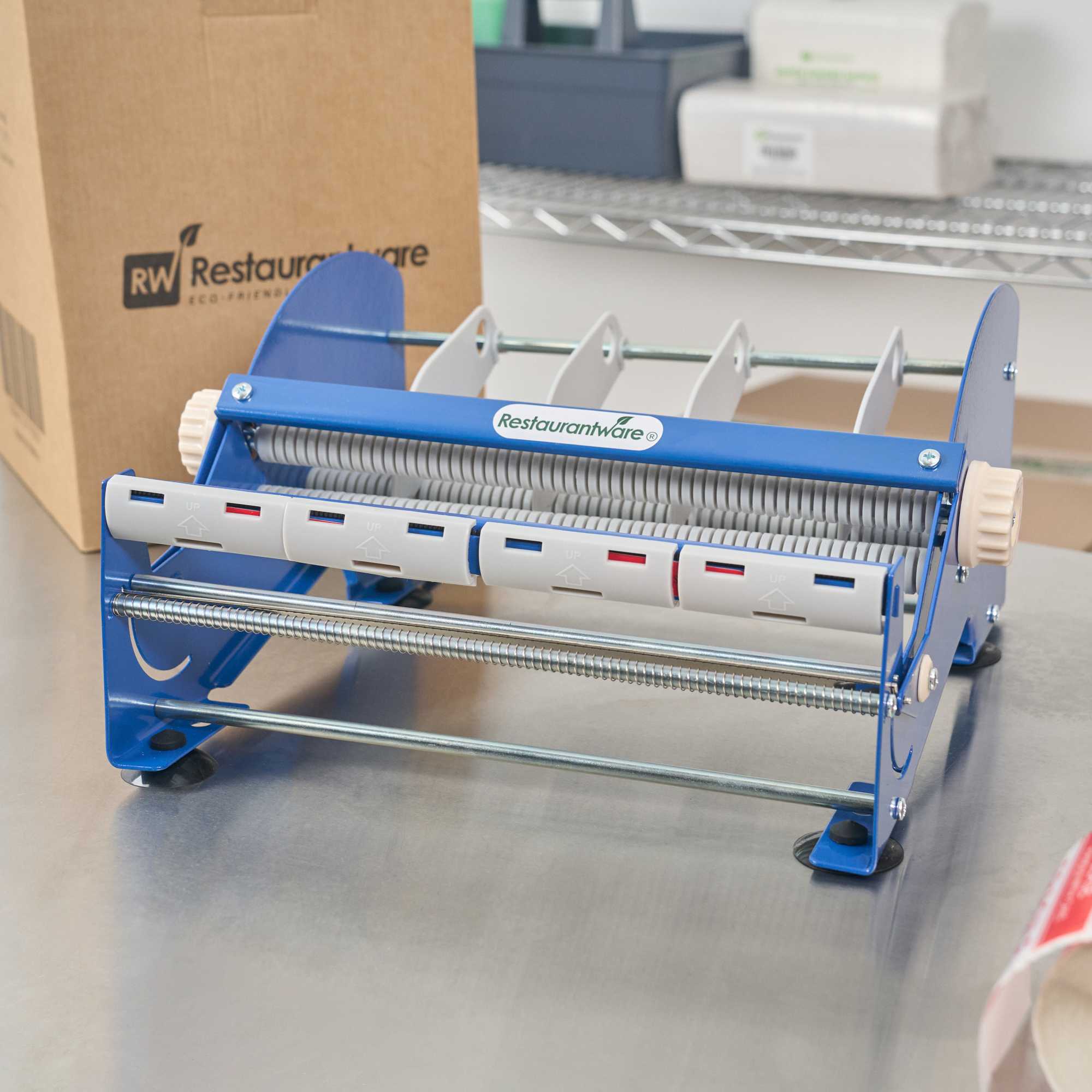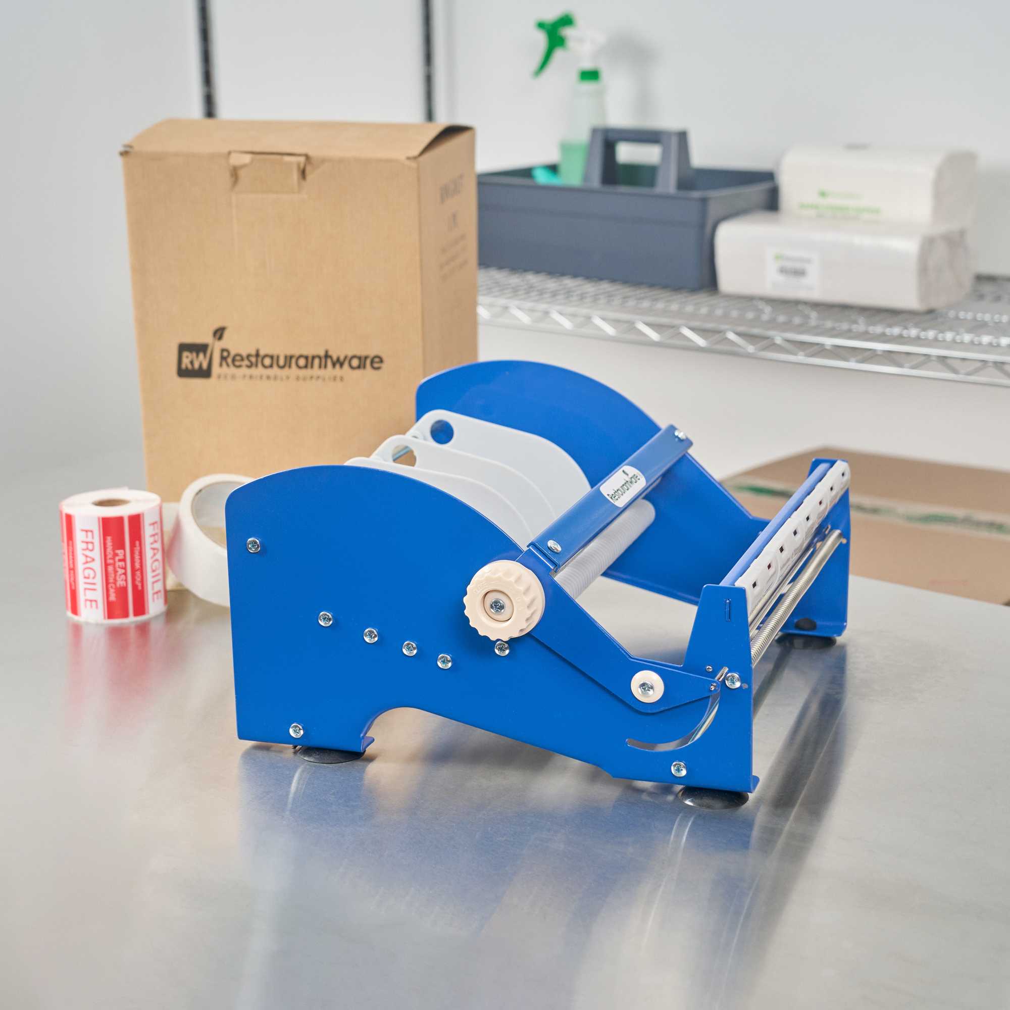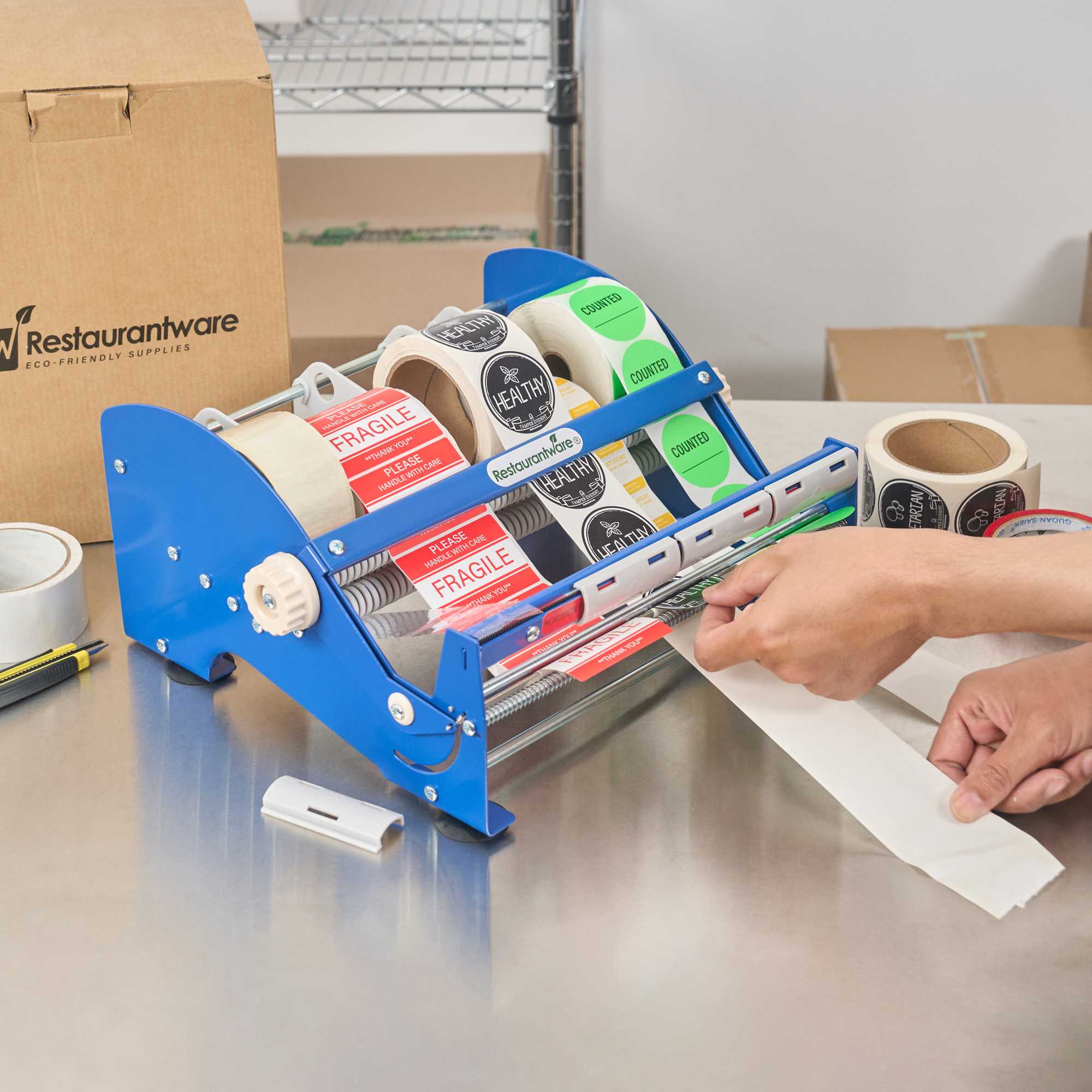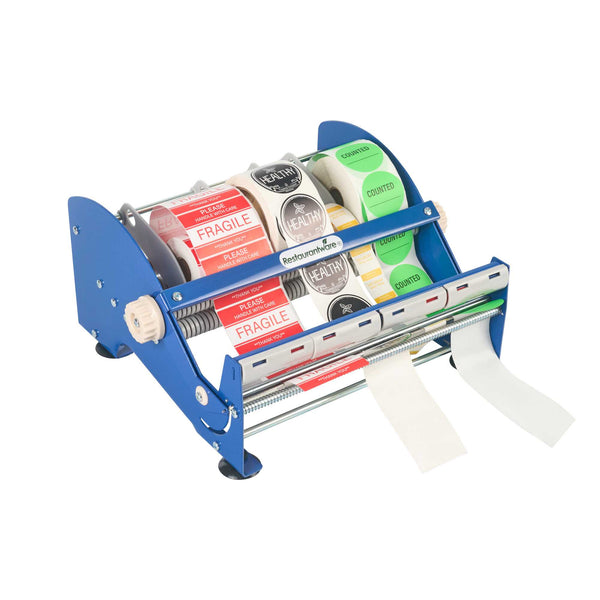 Enhance your labeling efficiency with a stable and versatile solution. The Handy Tek Non-Skid Desktop Label Dispenser offers a non-skid base that ensures stability during label application. This desktop label dispenser, measuring 14.6 inches in length, is crafted from durable steel, providing a robust and long-lasting solution for any foodservice or office setting. With adjustable core capabilities, it fits varied roll sizes, offering flexibility and accommodating rolls up to 6 inches in diameter, making it an ideal choice as a label tape dispenser. Its ability to handle a 12-inch roll width allows for efficient management of extensive labeling tasks, perfect for streamlining food packaging operations. The serrated blade ensures clean cuts every time, increasing reliability and precision in your labeling processes. Trust this food packaging label dispenser to keep your workspace organized and efficient. Each order includes 3 Handy Tek Non-Skid Desktop Label Dispensers.