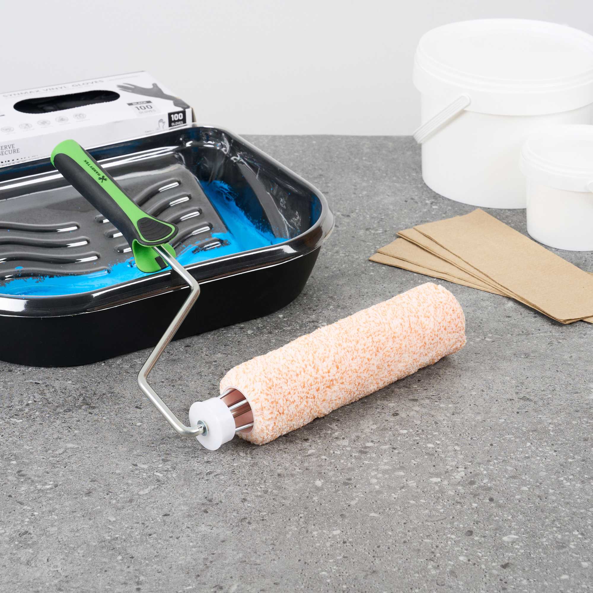 - Absorbent microfiber fabric holds more paint for quicker and smoother coverage