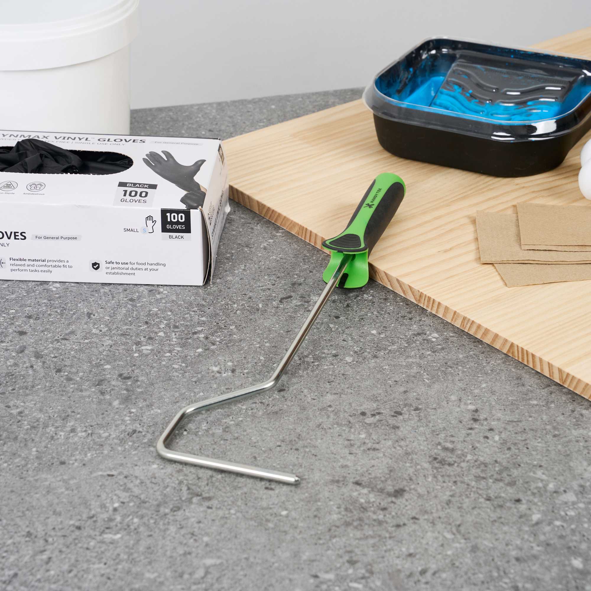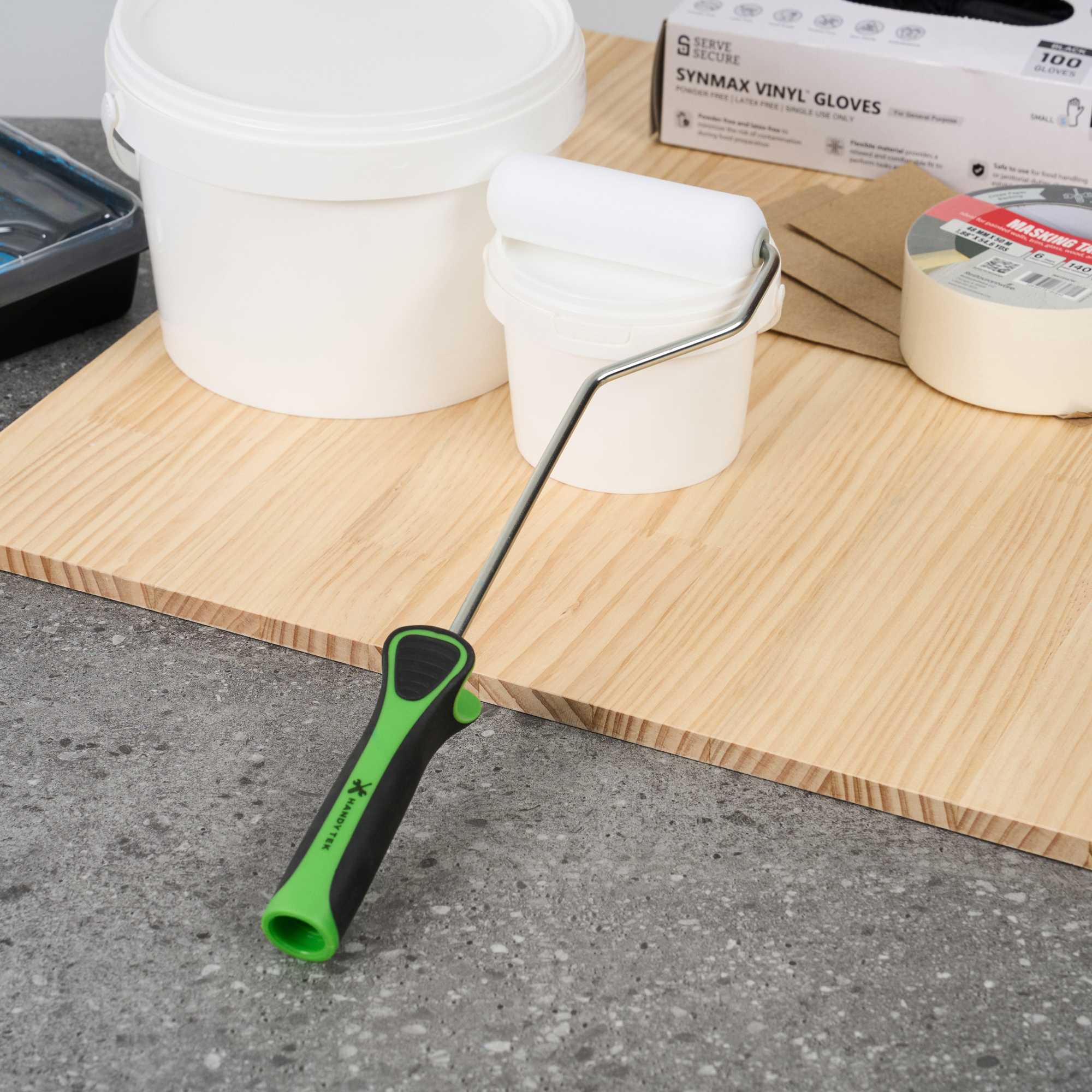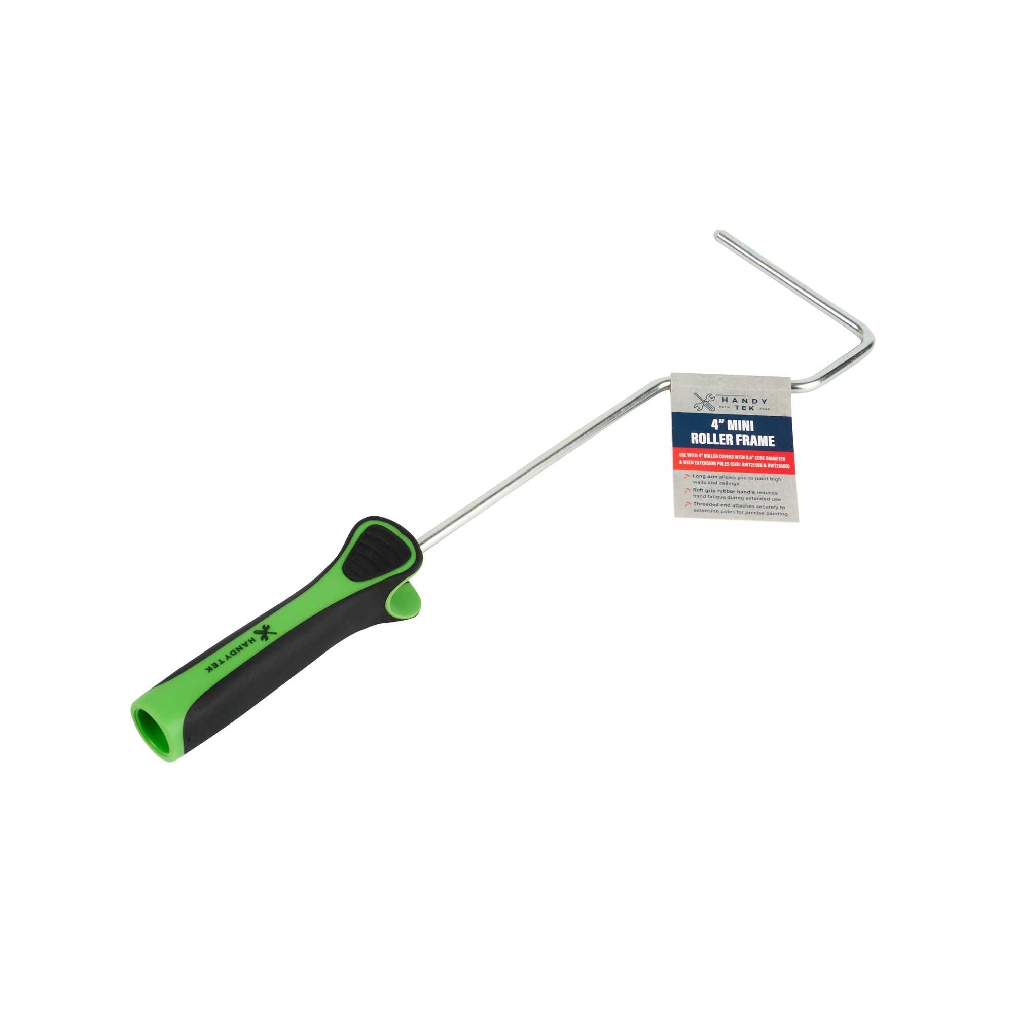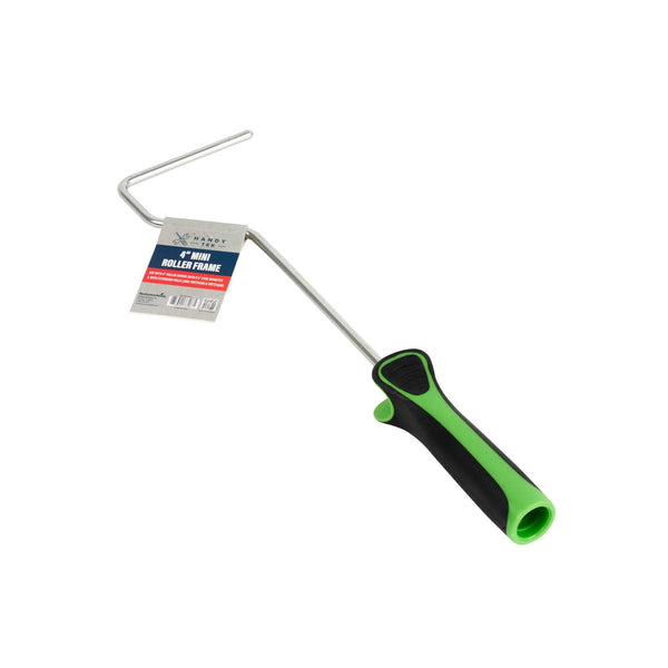 Our Handy Tek Mini Roller Frame is the ideal tool for achieving a flawless finish on any painting project. Built with a sturdy metal frame, this paint handle frame ensures smooth rolling and long-lasting performance, suitable for both experienced painters and DIY enthusiasts. Pair this mini paint roller frame with 4-inch roller covers featuring 0.5-inch core diameter and a compatible extension pole for effortless painting across walls, ceilings, and hard-to-reach areas in your restaurant or café. Featuring an extended handle, this painting roller frame provides improved control and allows easy access to higher surfaces without extra strain. Designed with a soft, rubberized grip, this coating tool frame enhances comfort and offers better control during extended painting sessions, making it perfect for busy foodservice settings. Measuring 14.57 inches in length by 3.74 inches in width by 1.18 inches in height, this roller frame is compact yet effective. Sold in a 24 count box.